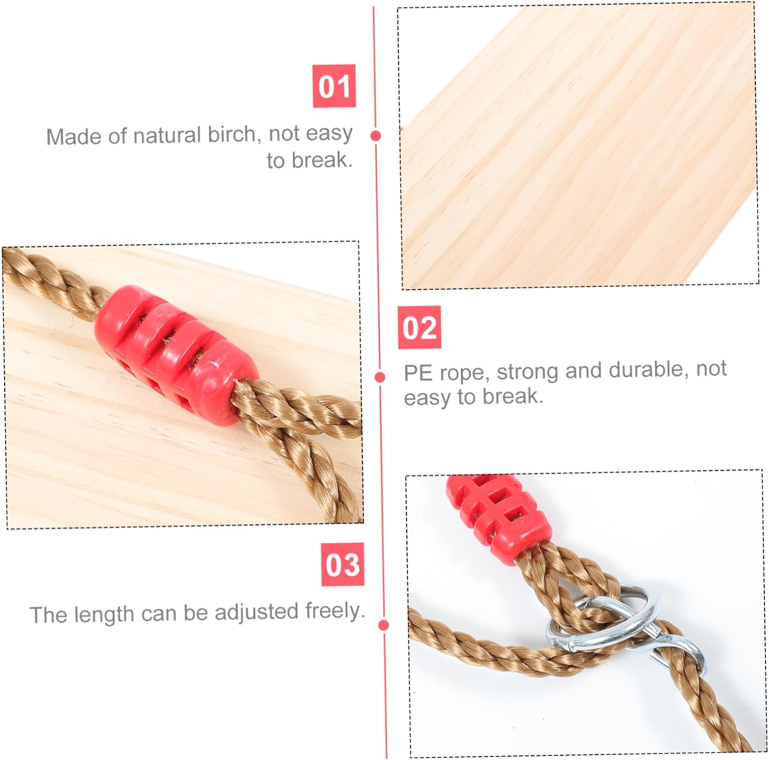 da ed esterno: utilizza una corda in polietilene resistente e regolabile può a condizioni atmosferiche, non si si allenta e non danneggia , e adulti corda regolabile: può essere installata senza , i tuoi bambini divertirsi quasi subito dopo l'arrivo, senza bisogno . e adulti. e adulti: realizzata in legno naturale non si e, con la dovuta cura, non danneggia la corda. state certi i vostri bambini saranno al sicuro su sospesa. sospesa: sicura per ed esterno, e adulti