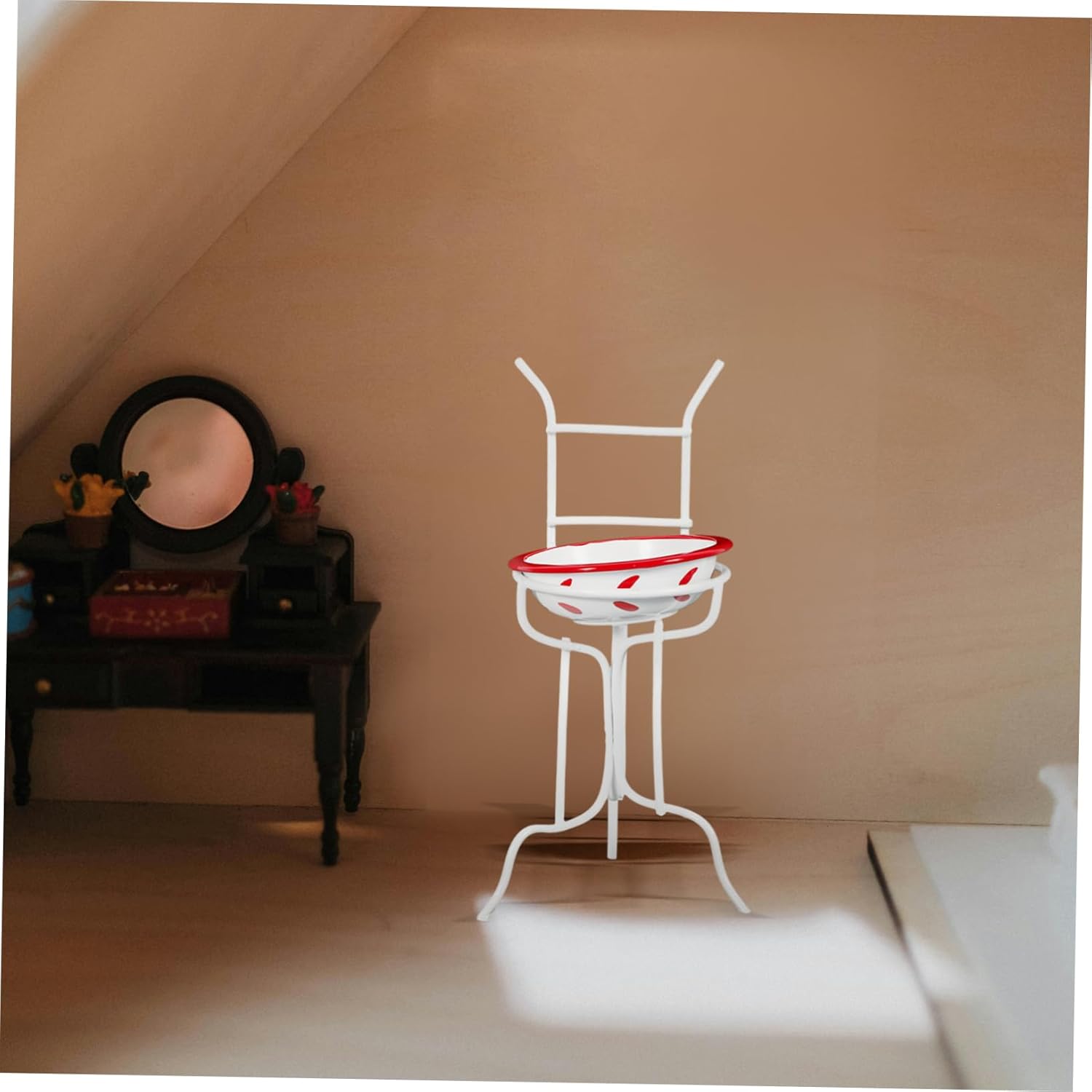 Oggetto di scena per il bagno: la decorazione del mini lavabo può essere utilizzata come oggetto di layout, oggetto fotografico, mini accessorio per la decorazione della casa, fornitura per la casa delle bambole Lavabo da bagno in miniatura: per decorare la tua casa e darti una nuova sensazione, realizzato in materiale metallico con lavorazione delicata, layout della scena del bagno della casa delle bambole Lavabo da bagno in miniatura: posiziona il lavabo in miniatura con modello di supporto nella tua mini casa o stanza per dettagli paesaggistici più realistici, decorazione del lavabo in miniatura Ornamento per mobili in miniatura: progettato appositamente per una mini casa, creando una circostanza romantica e realistica, arredamento della casa delle bambole Modello di lavabo da bagno in miniatura: decorativo e chic, può essere una scelta unica per i tuoi amici a cui piacciono i mini modellini artigianali, il lavabo da bagno in miniatura