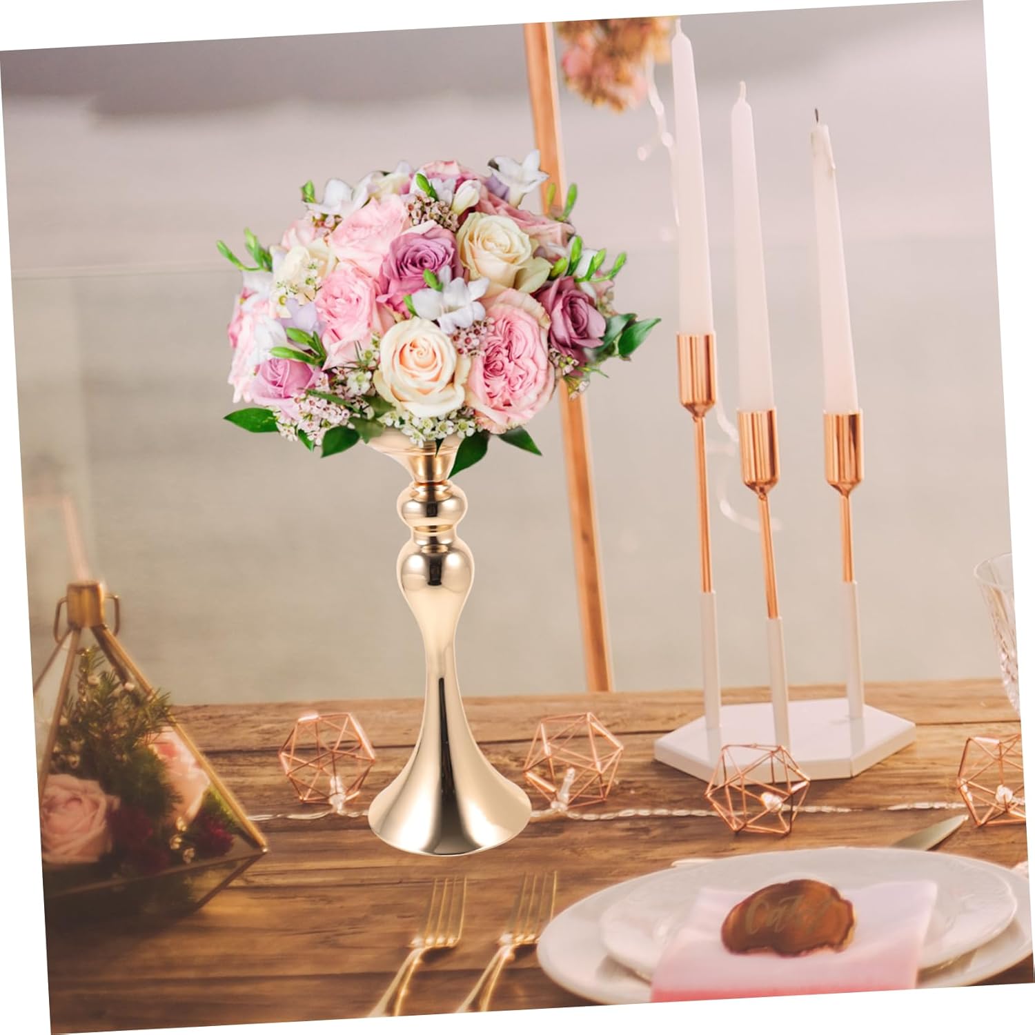 Centrotavola per tavola nuziale: posiziona fiori e piante per rendere più fresco il tuo spazio. personalità fai te, progetta secondo le tue esigenze. Centrotavola per tavoli: elegante vaso fiori con base stabile, adatto per il posizionamento familiare, composizioni floreali e altri usi. Vasi in metallo per centrotavola: il vaso piccolo è realizzato in materiale di ferro, con bocca di bottiglia liscia, fondo di bottiglia solido e spesso, resistente, non facile rompere. Centrotavola vaso tavolo: il vaso è attraente elegante, adatto per la decorazione domestica, come soggiorno, camera letto, cucina, ufficio e così via. Vasi in metallo per fiori: il vaso in metallo è adatto per feste, matrimoni, eventi speciali o decorazioni quotidiane, aggiungendo e romanticismo.