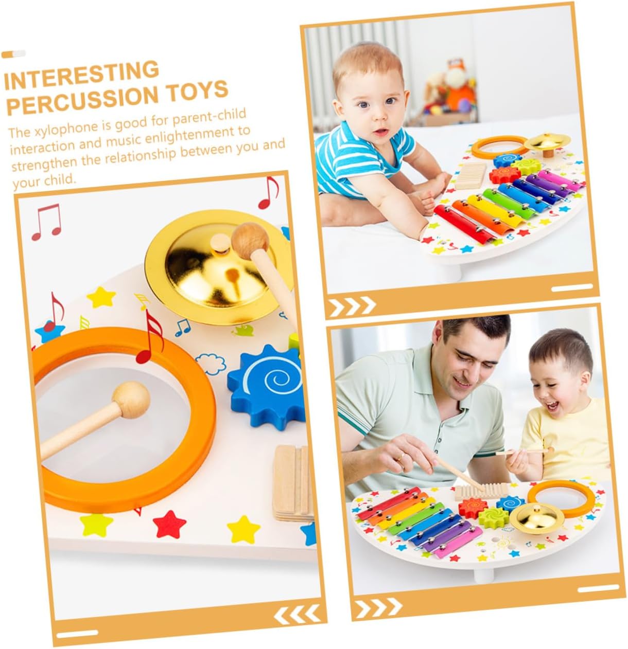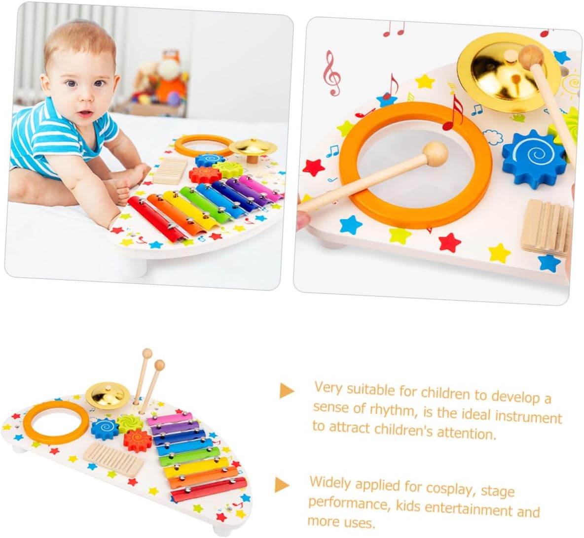 Stimola la creatività musicale con xylophone toy, uno strumento didattico in legno pensato per , perfetto per sviluppare sensibilità musicale attraverso il gioco e scoperta sonora in attività educative e ricreative Dimensioni compatte e peso leggero rendono questo strumento adatto a mani piccole, facilitando la presa e trasporto, ideale per'uso domestico o attività Montessori e momenti di gioco all'aperto o classe Realizzato in legno resistente, con finiture curate senza spigoli vivi, garantisce sicurezza e durata, offrendo un'esperienza tattile gradevole e affidabile per durante le sessioni di apprendimento musicale Indicato per in fase di sviluppo, il xylophone si adatta a diversi contesti come feste, momenti di gioco condiviso o attività educative, supportando l'apprendimento e socializzazione con altri coetanei Porta gioia e coinvolgimento nelle stanze di gioco dei più piccoli, stimolando l'espressione artistica e coordinamento motorio fine, perfetto per occasioni come compleanni o incontri familiari con tocco musicale