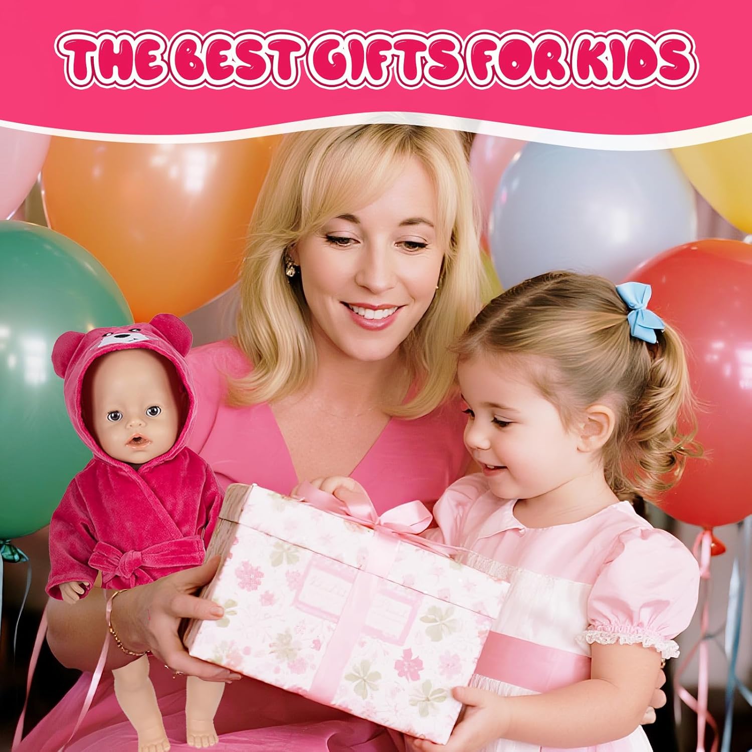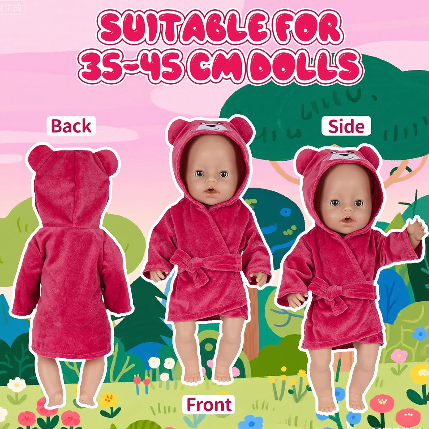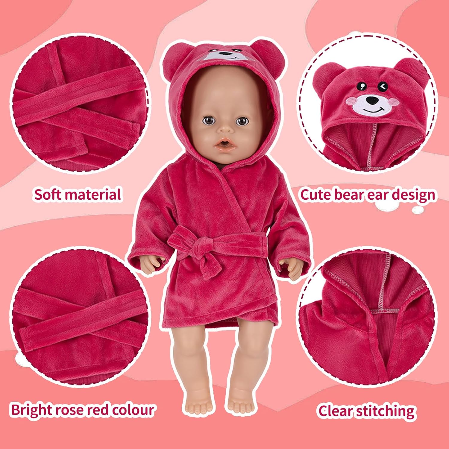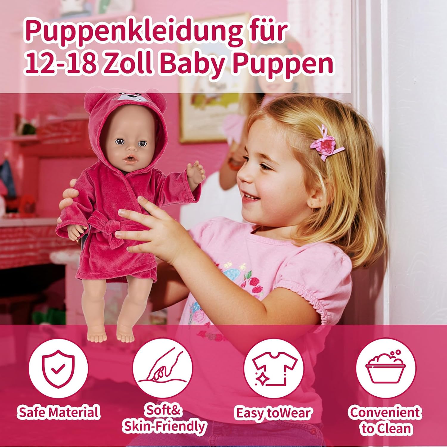 Contenuto della confezione: riceverete 1 accappatoio con orso rosa, 1 paio di mutande rosa e 1 paio di graziose pantofole a forma di coniglio. Questo morbido e carino accappatoio è particolarmente adatto per i bambini per ricreare la situazione "bambola dopo il bagno in accappatoio". Quando si indossa e si toglie la bambola, i bambini possono allenare segretamente la coordinazione occhio-mano, rendendo il gioco ancora più significativo. Grazioso pigiama per neonati: questo abbigliamento per bambole è qualcosa di speciale. Carreuty ha lanciato un nuovo pigiama per bambole. L'orso rosa è carino e i colori vivaci catturano immediatamente l'attenzione. Il pigiama è dotato di un pratico laccetto e si adatta perfettamente alle mutande rosa e alle pantofole rosa della stessa serie. L'intero outfit sembra molto armonioso e dona alla tua bambola un look unico e sofisticato che la rende immediatamente più carina! Adatto per bambole da 35 a 43 cm: questo vestito per bambini è adatto per bambole da 35 a 43 cm. Completa il guardaroba della tua bambola con un nuovissimo e unico abito per bambola! Il nuovo vestito per bambole da 43 cm è caratterizzato da colori vivaci, motivi accattivanti e una varietà di accessori, per un look carino e giocoso. Materiali di alta qualità: i vestiti per bambini da 43 cm sono realizzati con materiali sicuri di alta qualità, cuciti saldamente, con cuciture trasparenti, morbidi, comodi ed elastici, in modo da poter essere facilmente indossati e rimossi dalle mani piccole. Il prodotto è certificato di sicurezza, robusto e durevole, in modo che i bambini possano giocare senza preoccupazioni. Questo simpatico e raffinato abbigliamento per bambole aggiungerà immediatamente più carineria e vivacità al look generale della tua bambola. Il regalo perfetto: cambiando i vestiti delle bambole di 43 cm, i bambini possono divertirsi a combinare diversi abiti per diverse occasioni e quindi stimolare la loro immaginazione, creatività e altre abilità. Con il suo design unico e gli elementi carini, è il regalo ideale per i bambini per feste, Halloween, Natale, feste, compleanni e altre occasioni e farà tante sorprese.