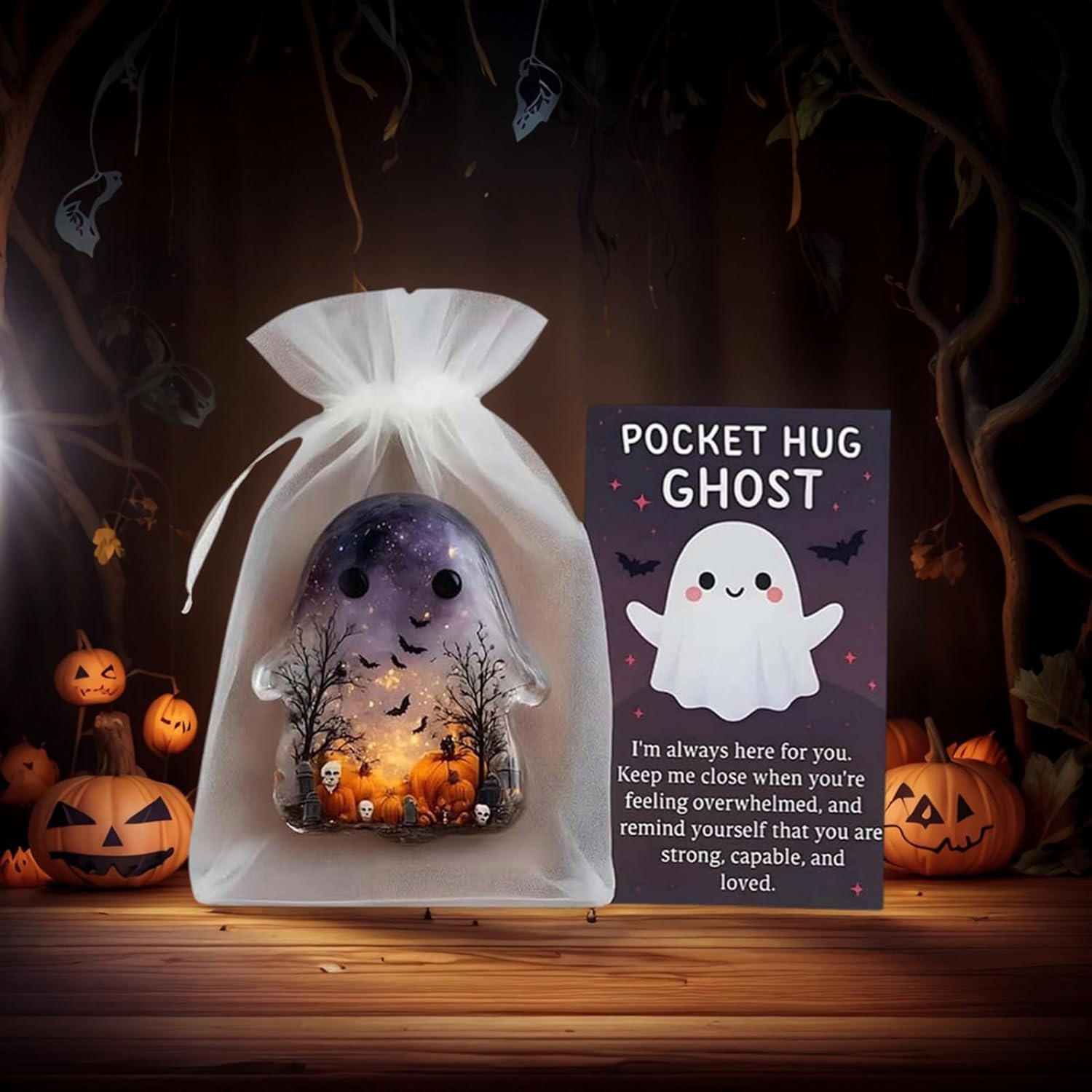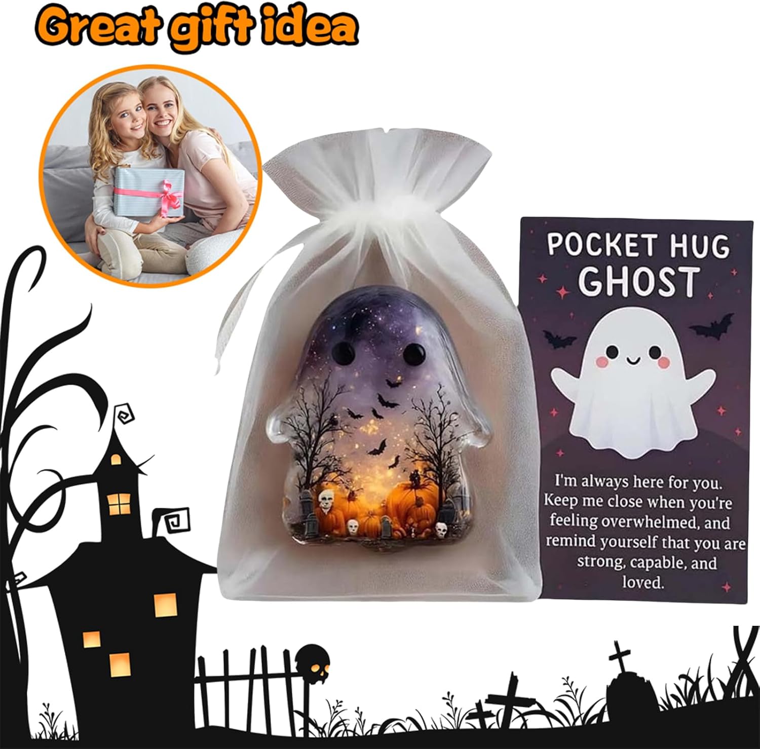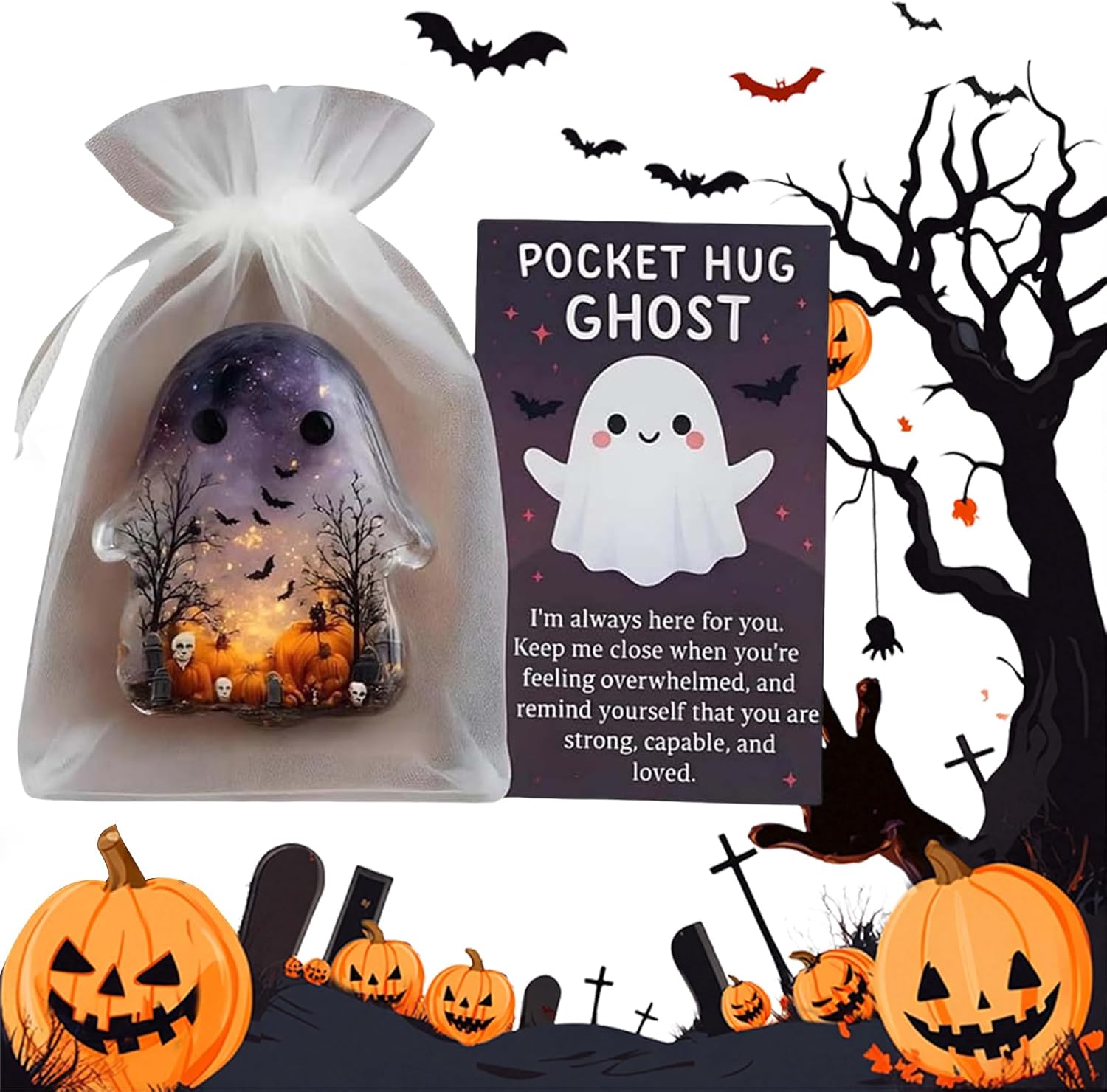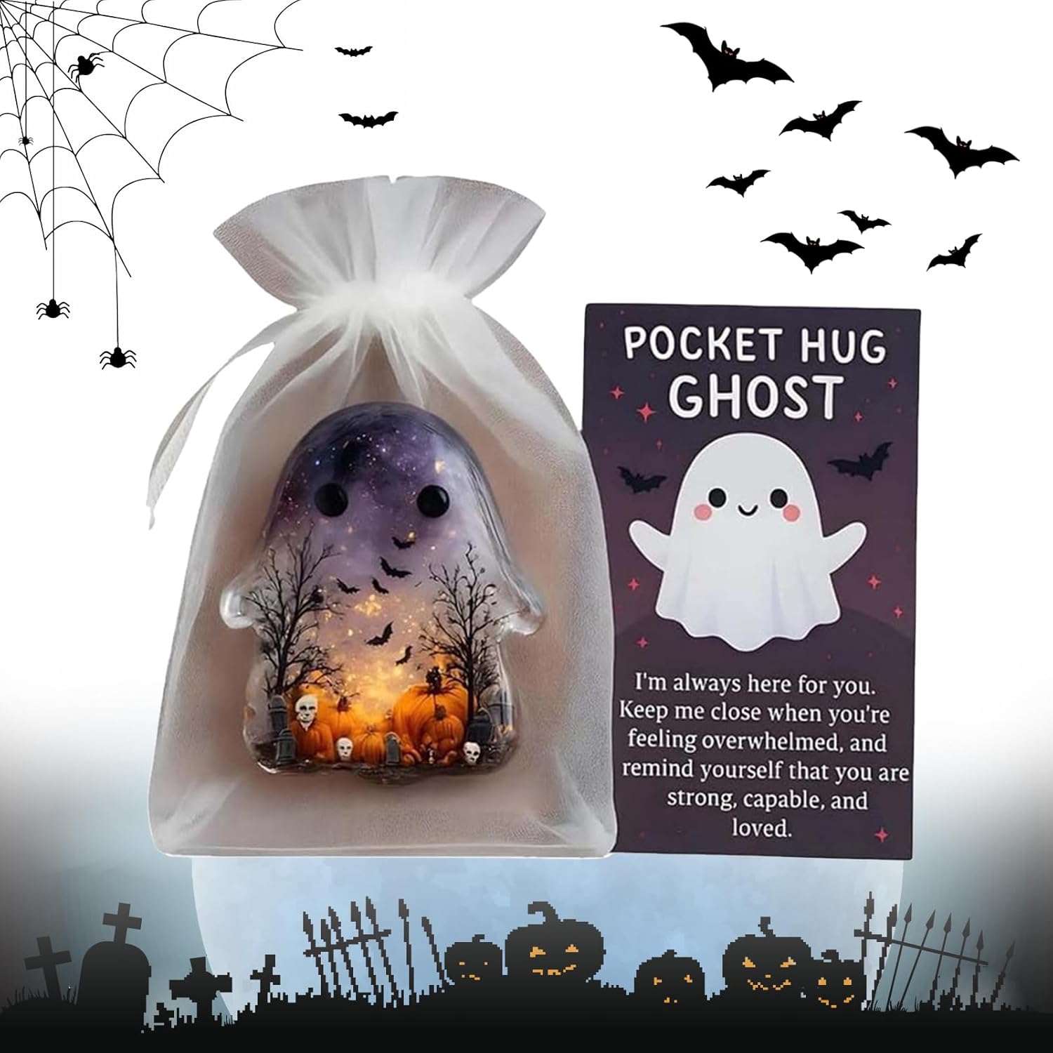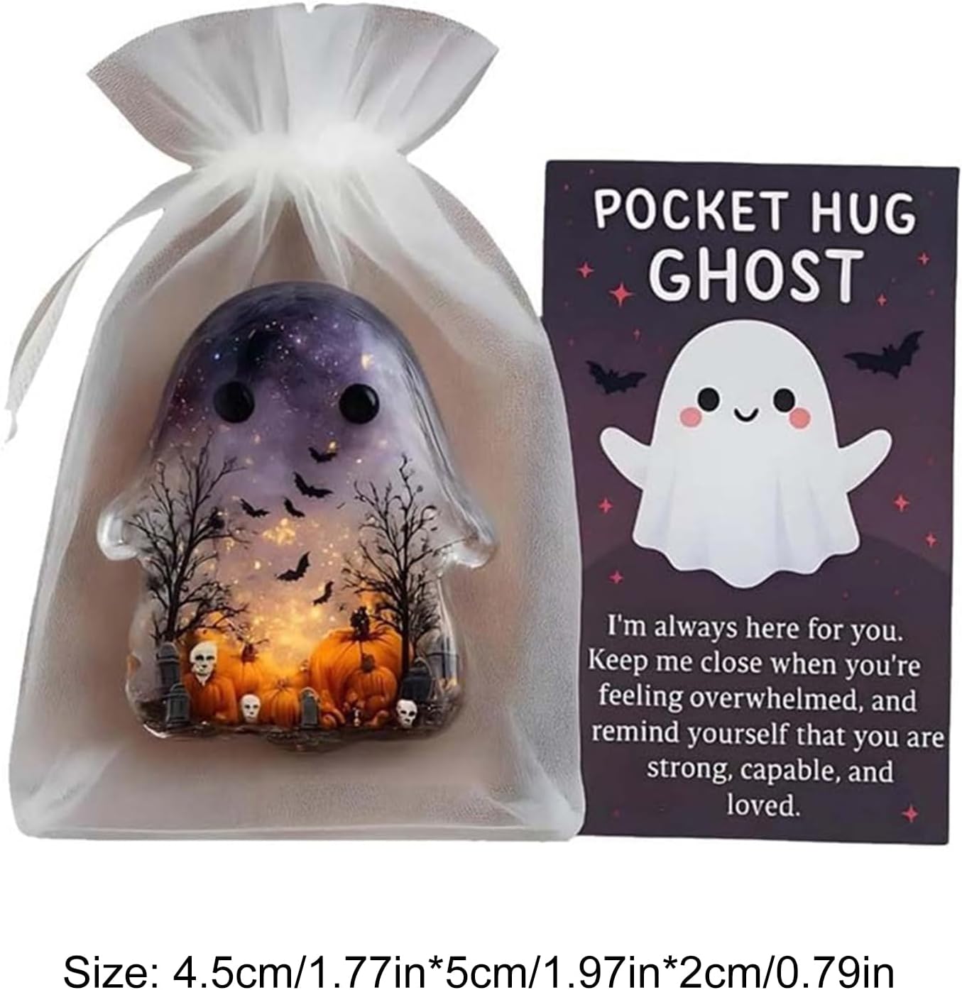 【Adorabile design ricordo】 Questo fantasma abbracciabile in tasca presenta un design carino che può essere facilmente tenuto nel palmo della mano o in tasca, diffondendo amore e conforto ovunque tu vada. 【Carta con messaggio incoraggiante】 Include una carta che dice "Sono sempre qui al tuo fianco" per motivare e sollevare lo spirito nei momenti difficili con una figura in miniatura premurosa. Facile da trasportare: progettato per adattarsi perfettamente a qualsiasi tasca, borsa o cassetto per assicurarti di avere sempre un mini ciondolo per il comfort emotivo. 【Idea regalo premurosa】 Confezionato con un sacchetto di garza simile, ideale da regalare a chiunque possa beneficiare di un ricordo speciale e di una spinta emotiva. ADATTO A QUALSIASI OCCASIONE: Ideale per compleanni, regali di incoraggiamento, relazioni a distanza o semplicemente per far sapere a qualcuno che è amato e apprezzato con questa versatile statuetta in miniatura.