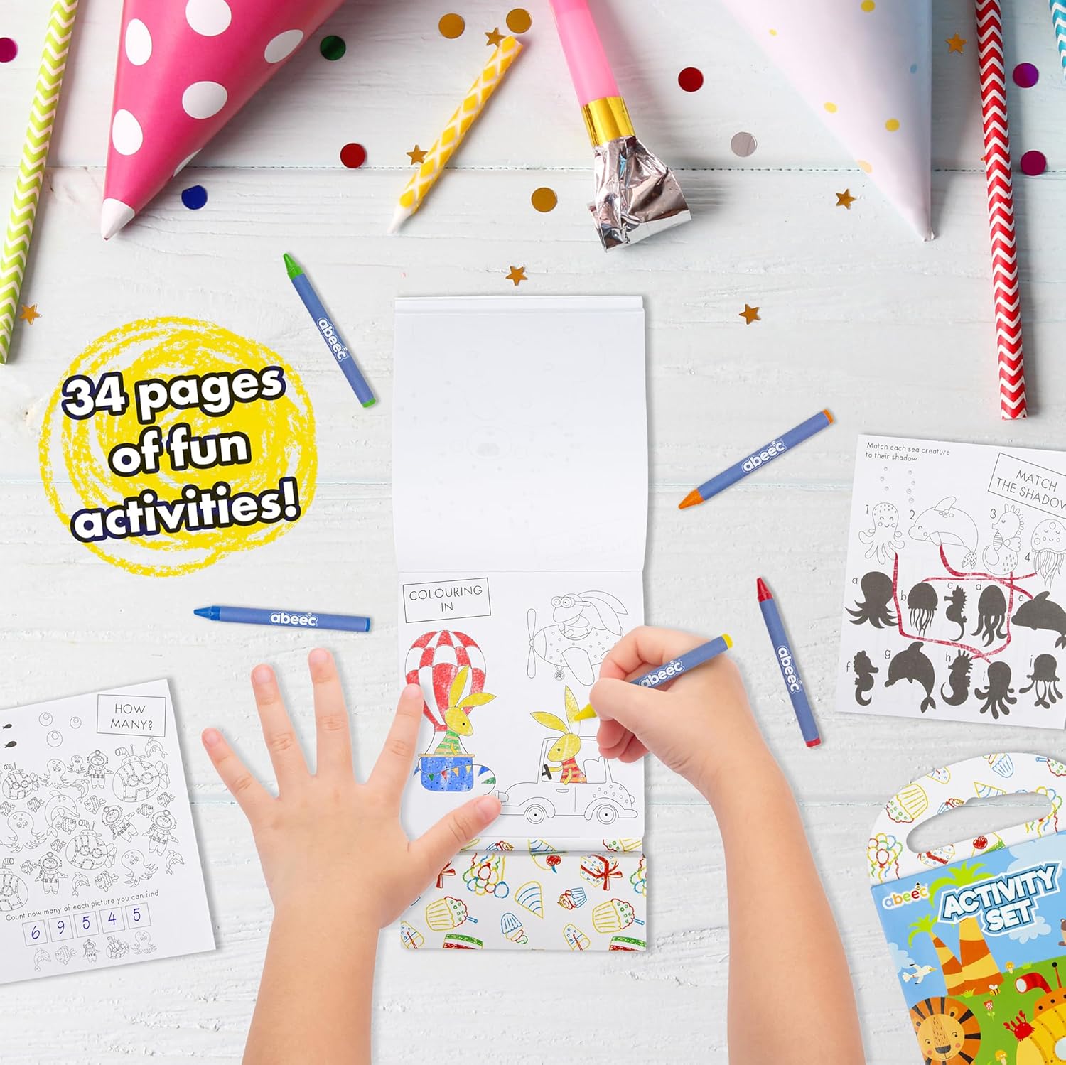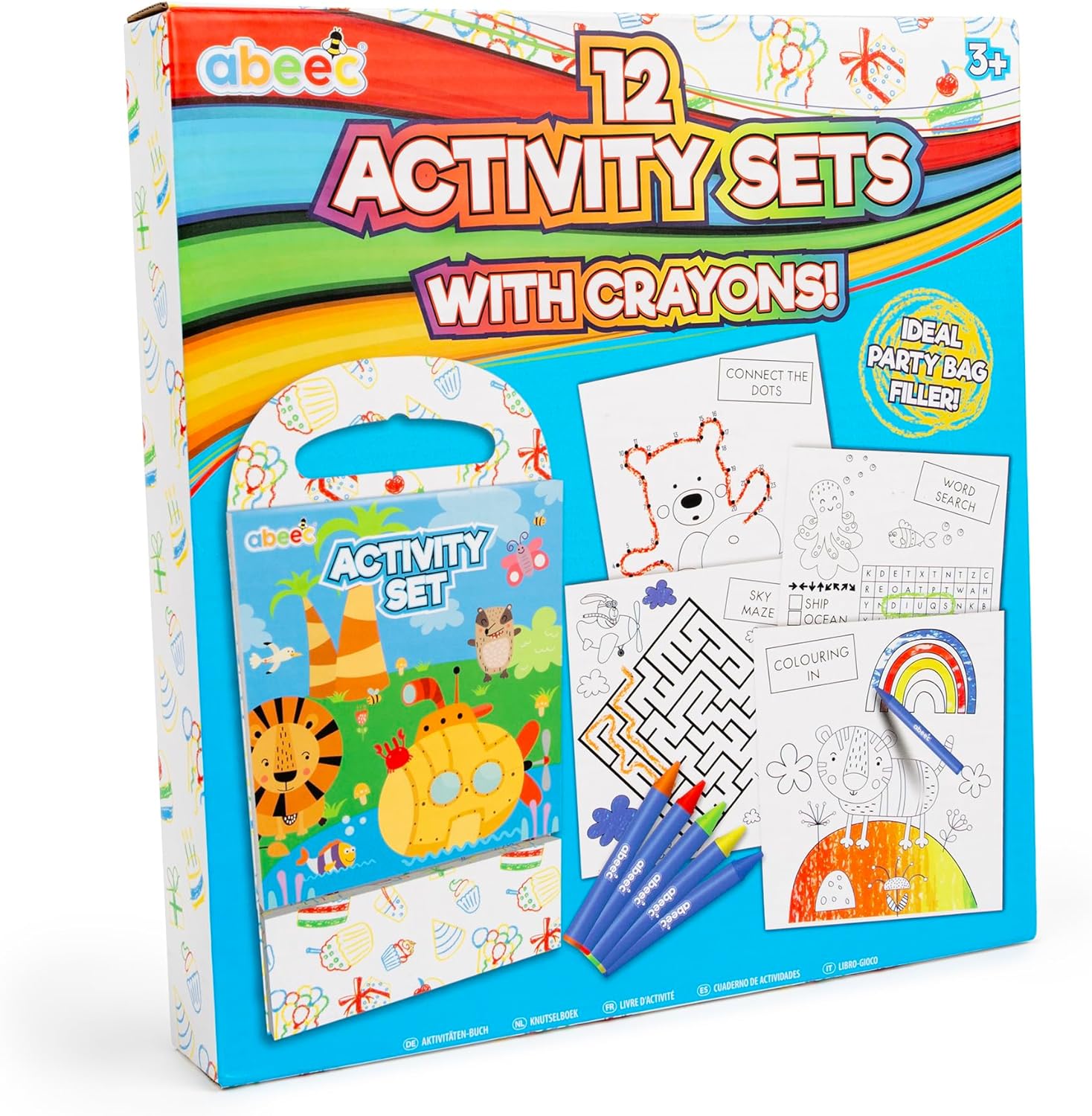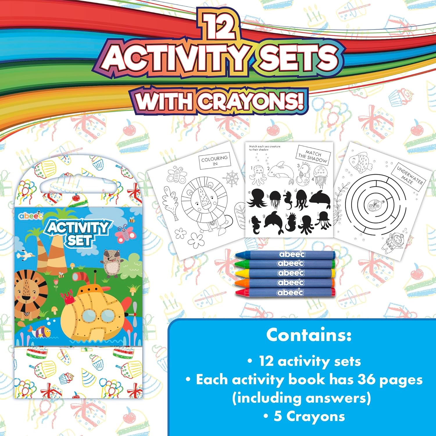 Libro da colorare per feste, pastelli e libri di attività, riempitivi per sacchetti per feste per i più piccoli, 12 libri di attività per bambini, ciascuno abbinato a un set di mini pastelli colorati di alta qualità per bambini. Perfetto per intrattenere i bambini per ore Riempitivi per sacchetti per feste: questi set di libri di attività sono perfetti per le feste dei bambini, si adattano facilmente ai sacchetti per feste per bambini. Sono ideali anche come bomboniere per intrattenere i bambini durante gli eventi familiari Libro da colorare per bambini: ogni libro di puzzle è progettato per sfidare e stimolare le giovani menti, rendendoli perfetti per attività in aereo per bambini o come attività di viaggio per le vacanze scolastiche Riempitivi per sacchetti per feste per bambini: la confezione multipla di set da colorare per bambini è ideale per riempire sacchetti per feste, assicurando che ogni bambino alla tua festa riceva un regalo divertente e interattivo. I mini pastelli colorati sono perfetti per le mani piccole Pacchetto attività per matrimoni per bambini: un'aggiunta ideale a ciascuno dei tavoli degli ospiti del matrimonio, questi pastelli per bambini e libri da colorare per bambini sono la piccola attività perfetta per mantenere felici i bambini