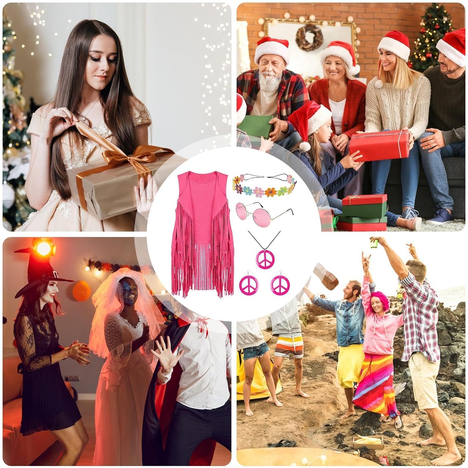 Descrizione prodotto Sperimenta la libertà degli anni '70 con il nostro set di costumi hippie da donna di Carnevale di Halloween. La maglietta interna con frange alla moda, la fascia boho e la taglia S-XXXL si adattano a familiari, amici e colleghi. Specifiche: Nome: Set di costumi hippie da donna di carnevale di Halloween Materiale: tessuto + ABS Taglia: S-XXXL Peso: circa 330 g Contenuto della confezione: 1 cardigan senza maniche con frange. 1 paio di orecchini con segno di 1 collana con segno di . 1 x fascia boho e 1 paio di occhiali da sole vintage Nota: Il colore originale dell'articolo potrebbe differire leggermente da quello riportato nell'immagine a causa della diversa illuminazione e delle impostazioni dello schermo. A causa della diversa misurazione manuale, si prega di consentire una differenza di 1-2 cm. Avviso di sicurezza Non applicabile