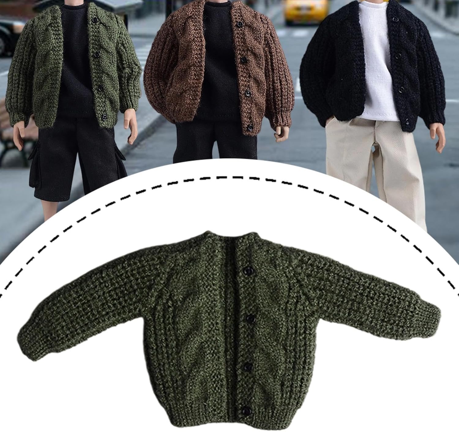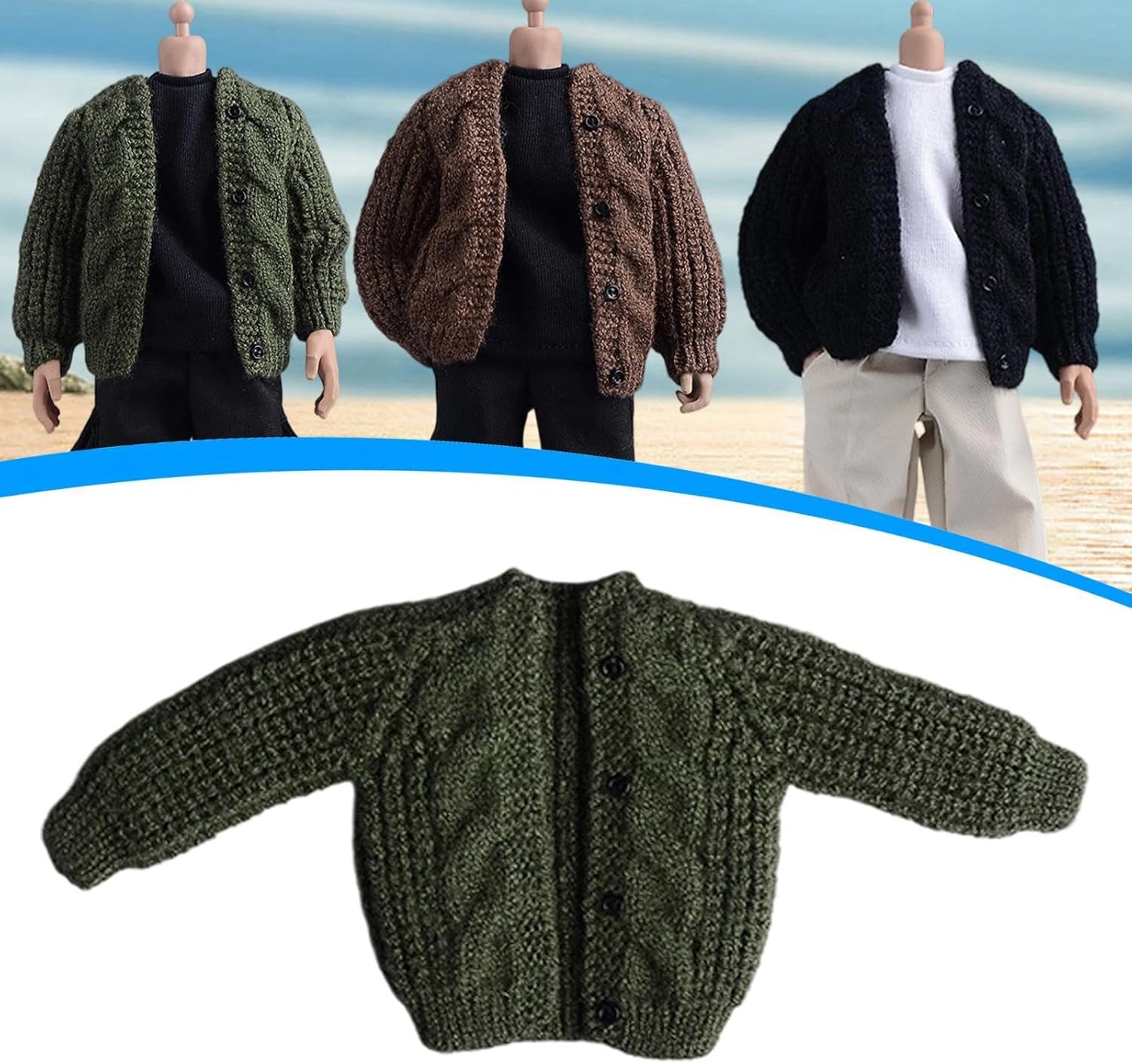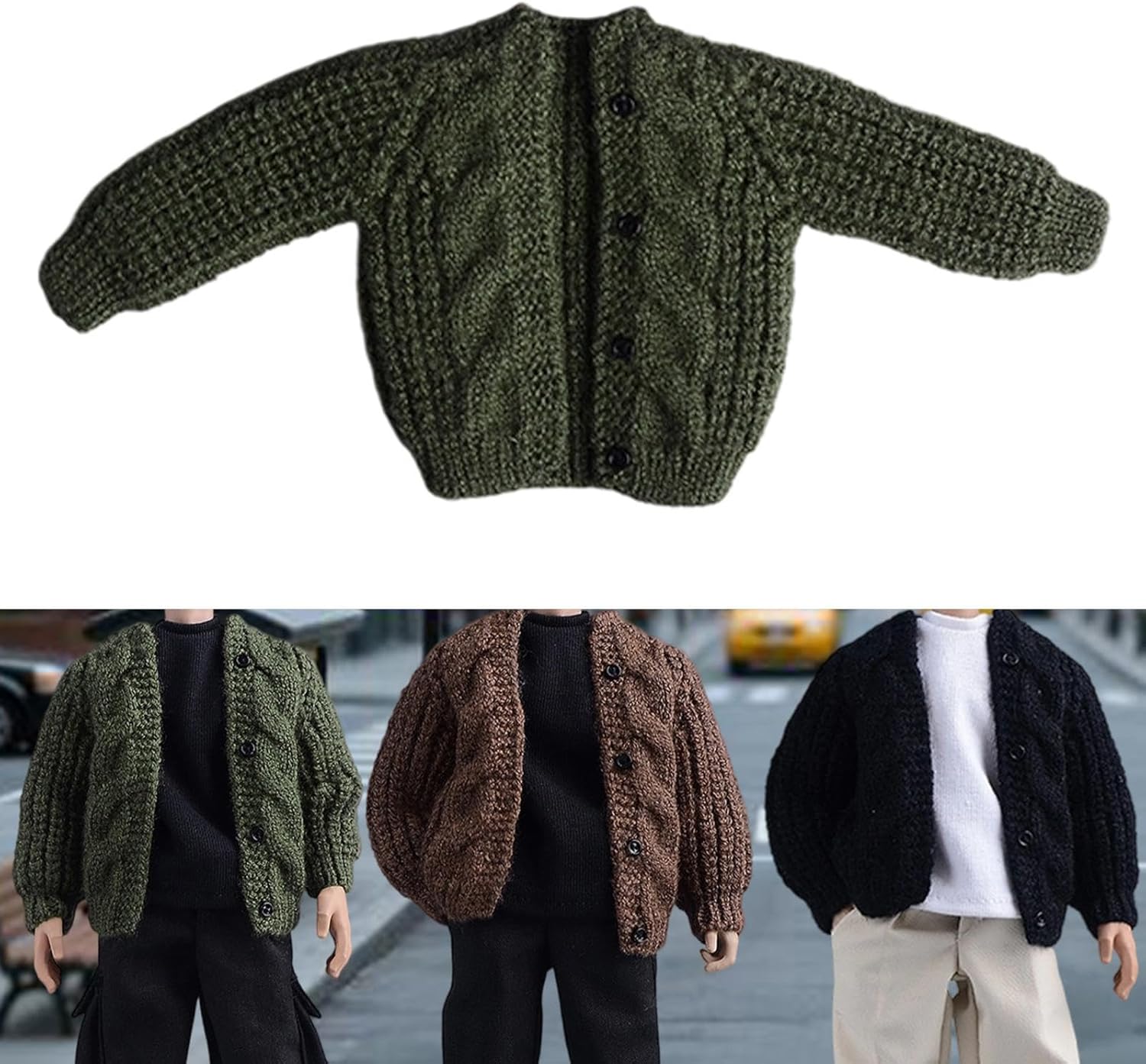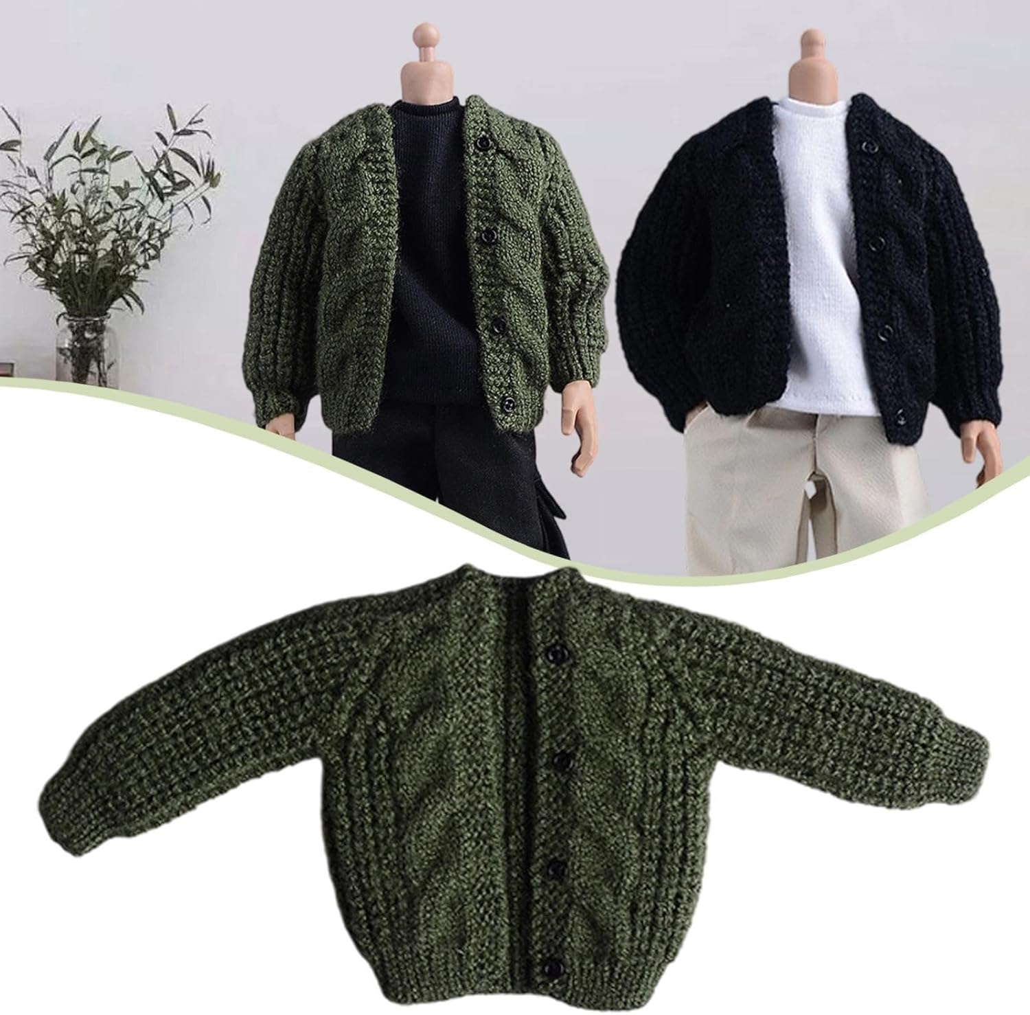 Abiti per Figure in 1/12, Accessori per Bambole, Cardigan, Fatti a Mano, Maglione, Vestiti in Miniatura per Action Figure da 6'', Verde