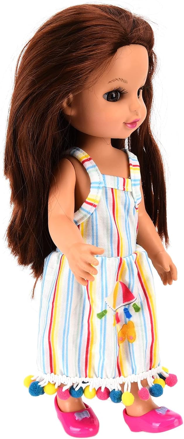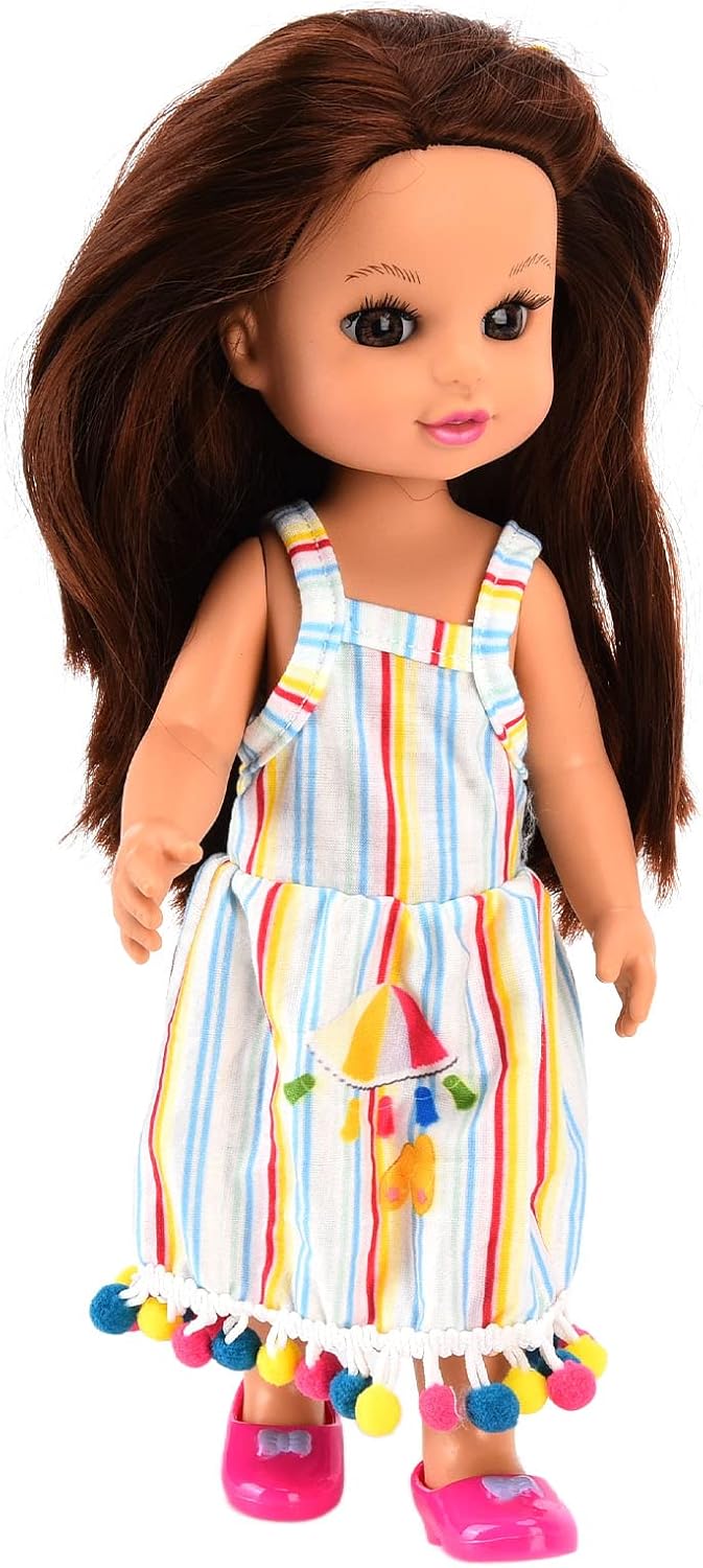 [Capelli lunghi in nylon] Questa bambola presenta capelli castani setosi che sono divertenti da stile, aggiungendo un ulteriore elemento di gioco. [Aspetto adorabile] Con occhi verdi brillanti, ciglia lunghe ed espressioni facciali carine, questa bambola è affascinante e adorabile. [] Ideale per compleanni, vacanze e occasioni speciali, questa bambola è un amato per i bambini. [Abiti indossabili] L'abito a strisce di colore è facile da indossare e decollare, rendendo il vestirsi divertente e semplice. [Materiali di alta qualità] realizzati in modo sicuro e resistente, questa bambola è duratura e rispettosa dell'ambiente.