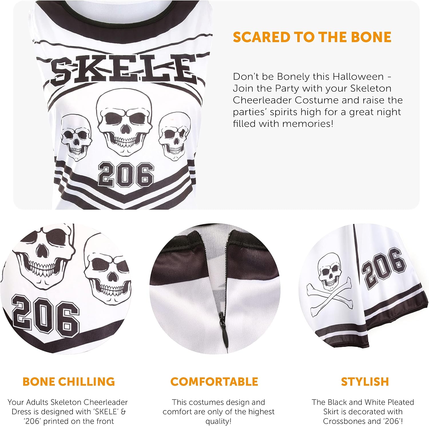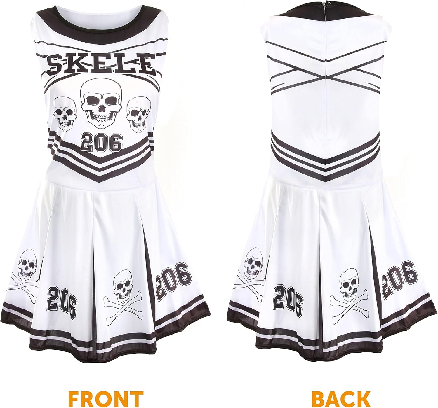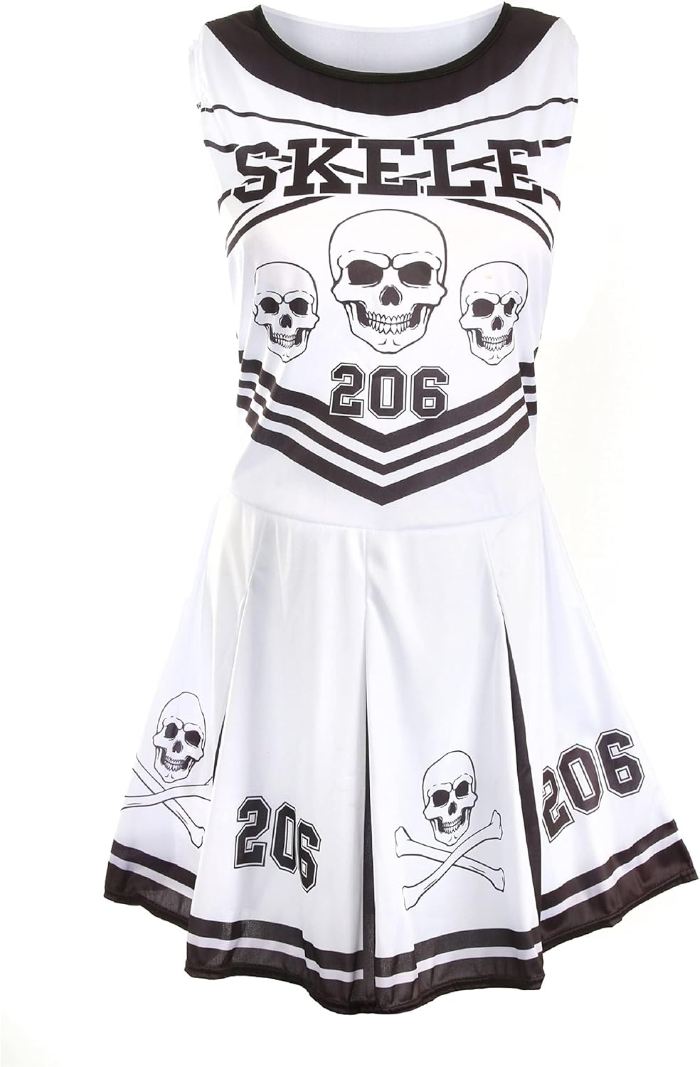 Abito da cheerleader da donna per Halloween, con pompon rossi, collant sanguinanti, sangue finto e pittura facciale, colore: bianco e nero