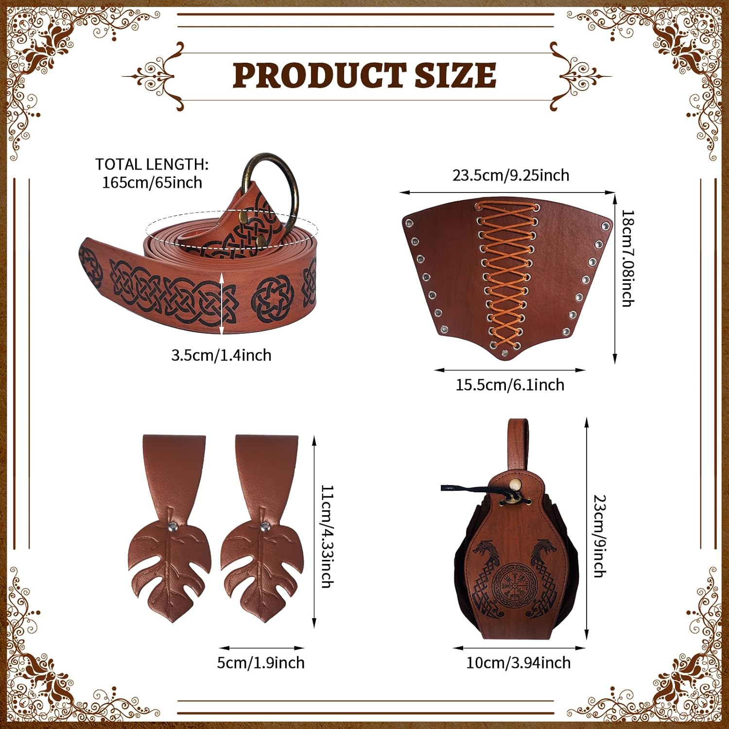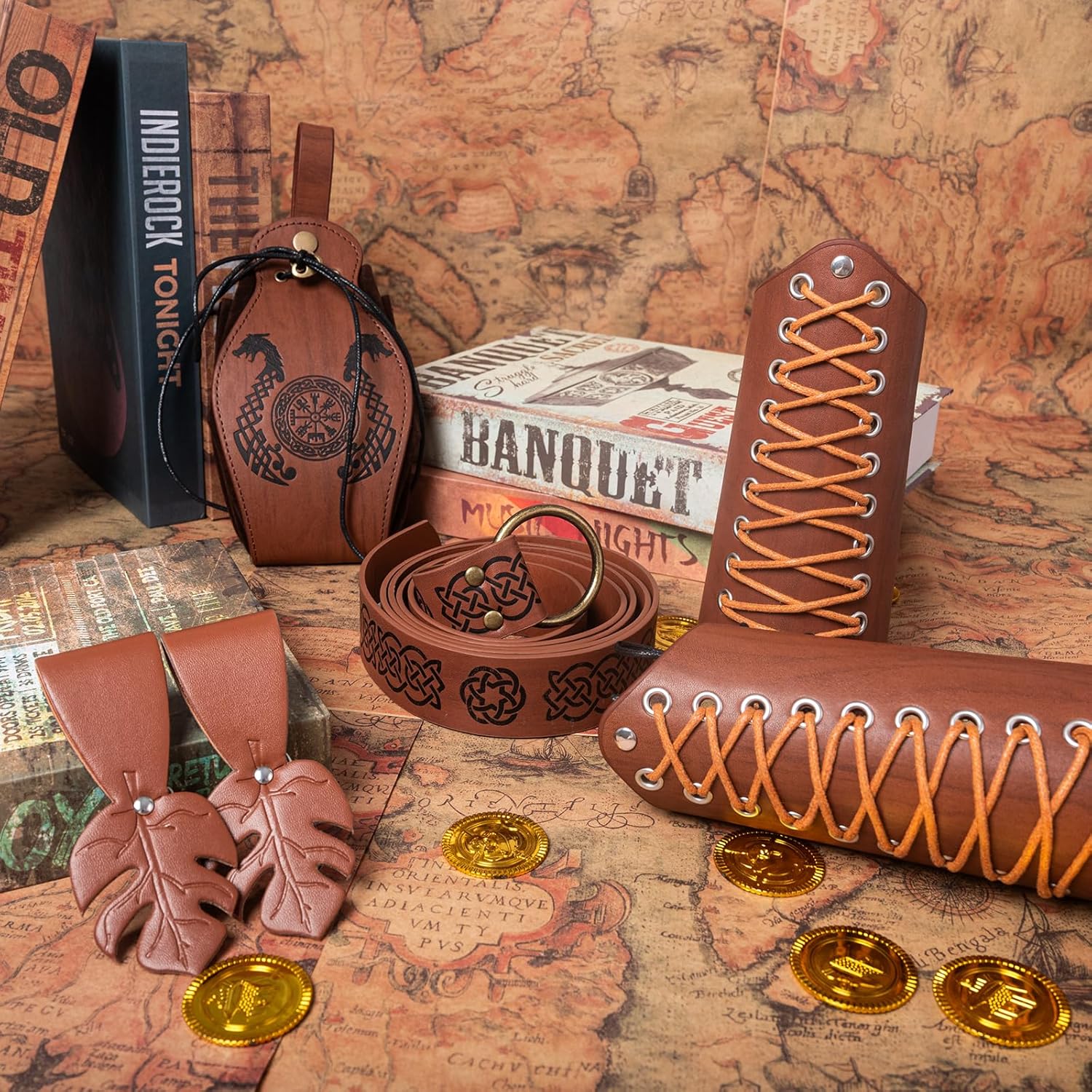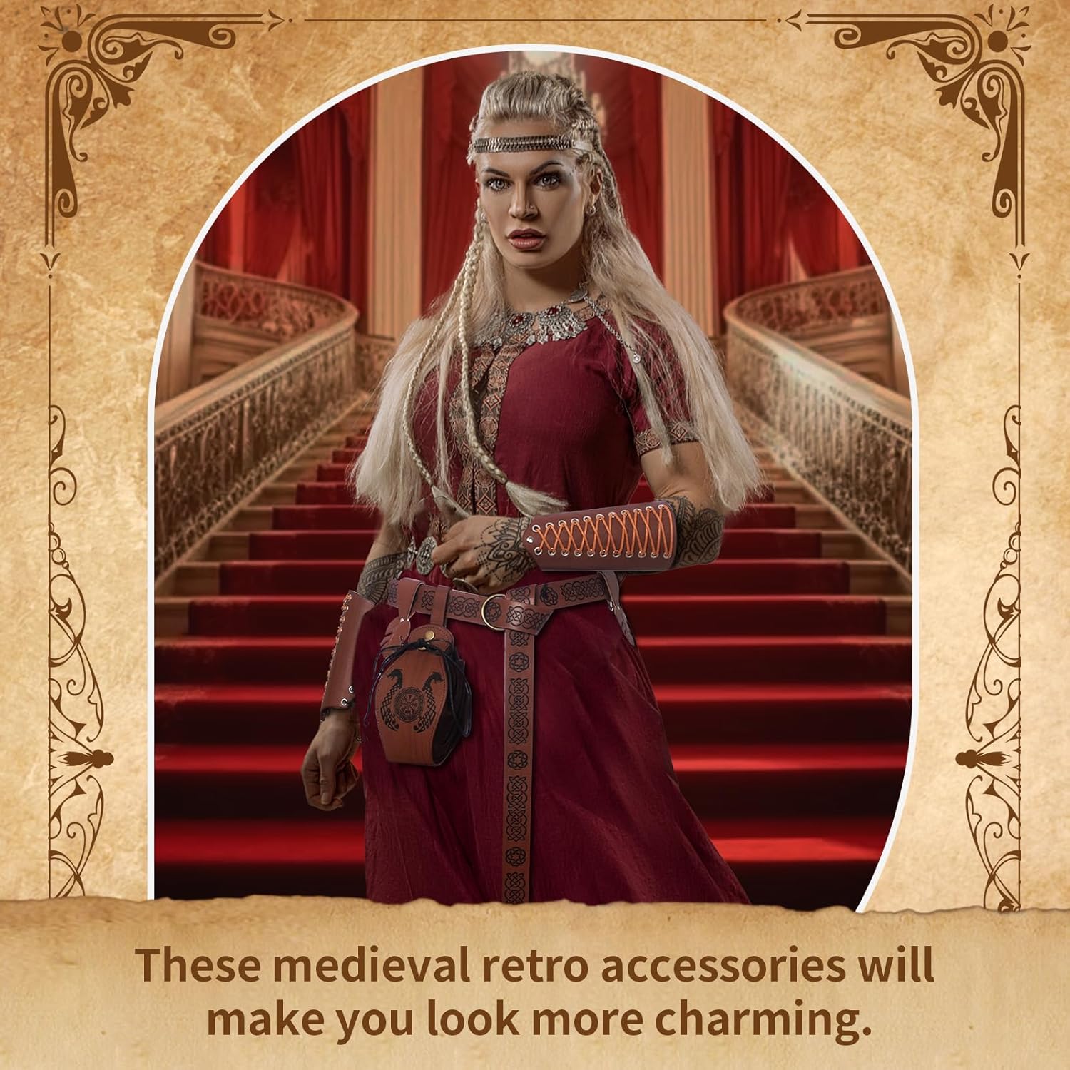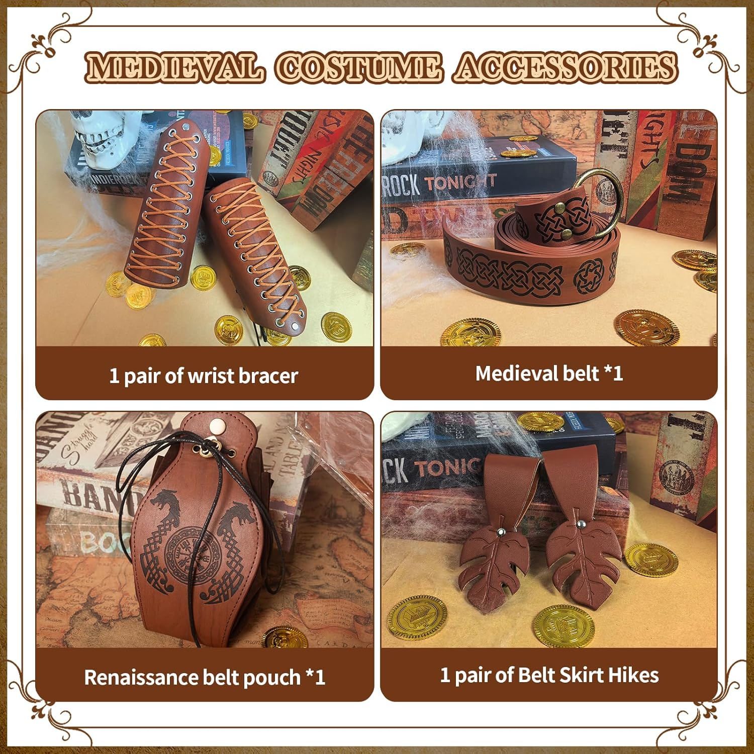 Abito da Negromante di Halloween Set di Accessori Medievali, Bracciali Medievali Cintura Medievale Borsa da Cintura Vintage Passante per Cintura per Cosplay, Costume da Cavaliere Strega Pirata Rinascimentale