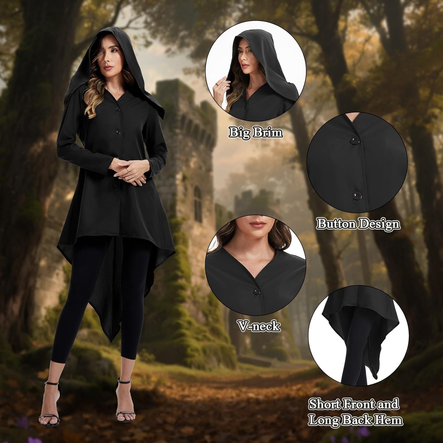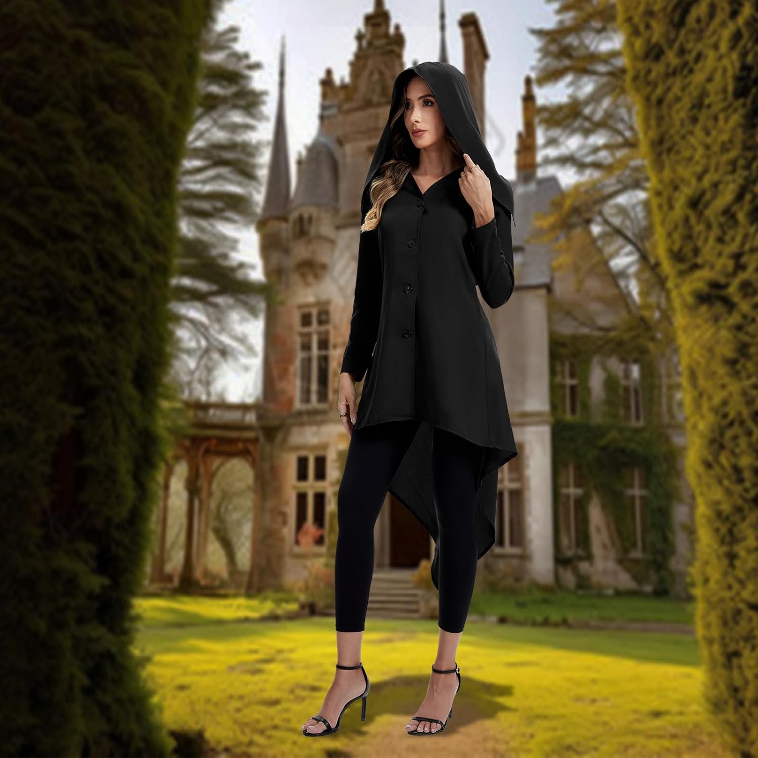 Descrizione prodotto Vestito gotico con cappuccio per donna, abbigliamento medievale, costume cosplay per Halloween e Carnevale Avviso di sicurezza no