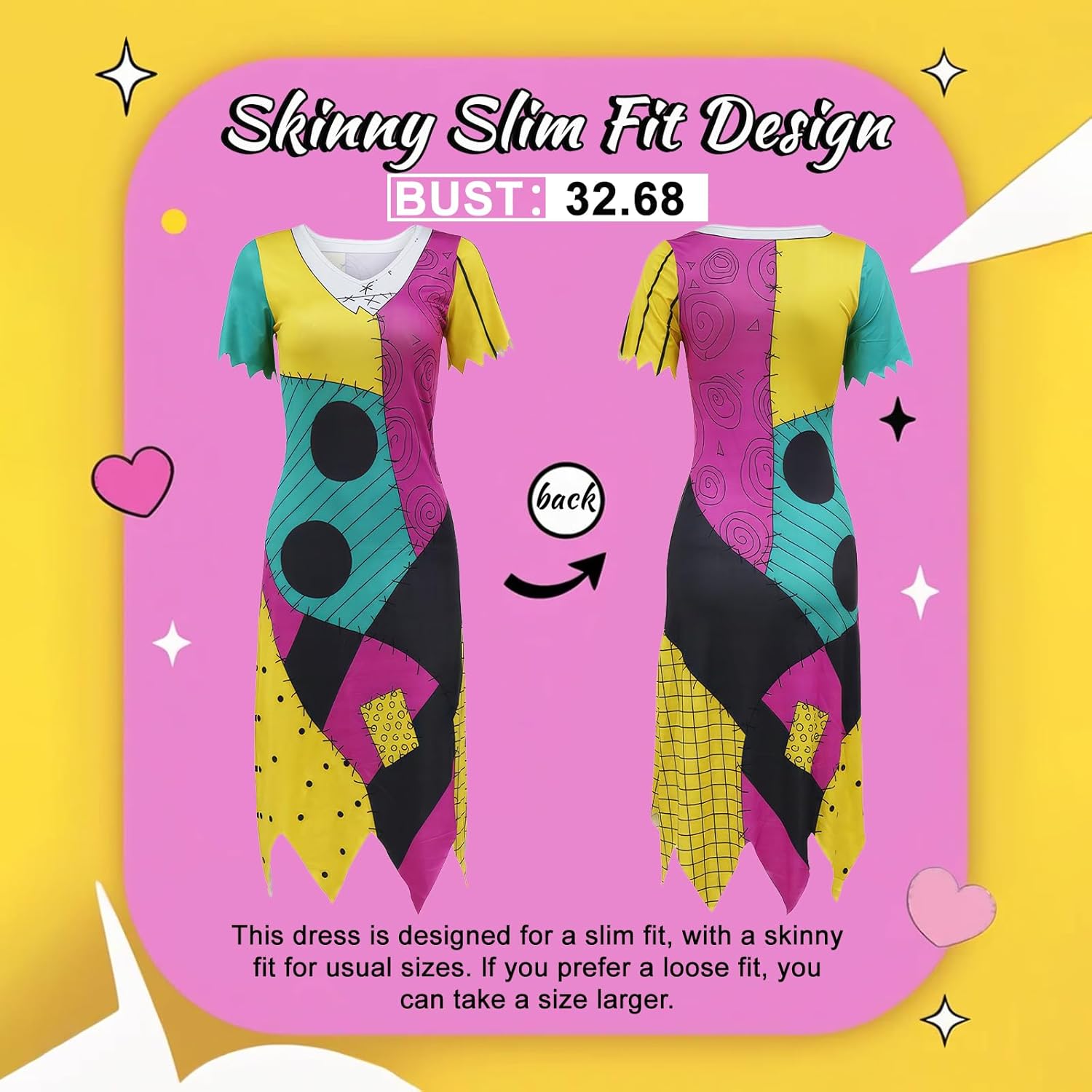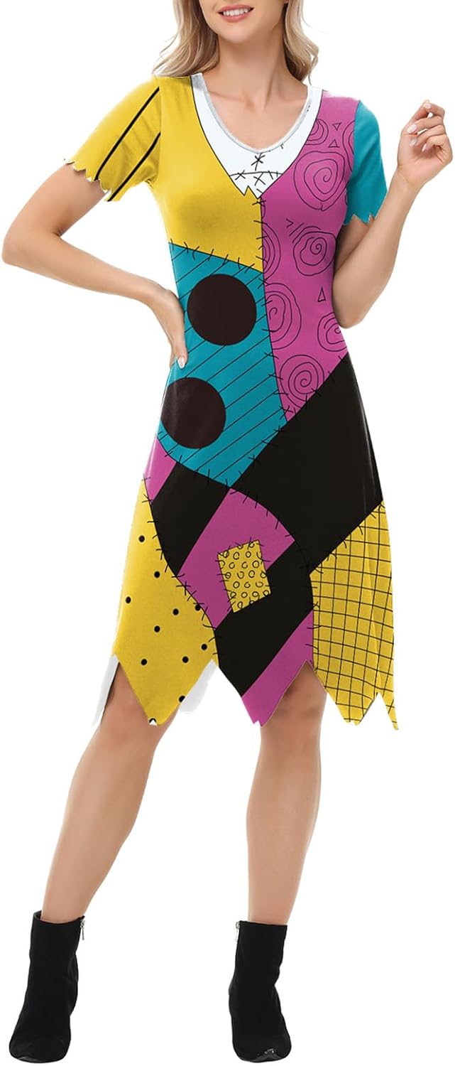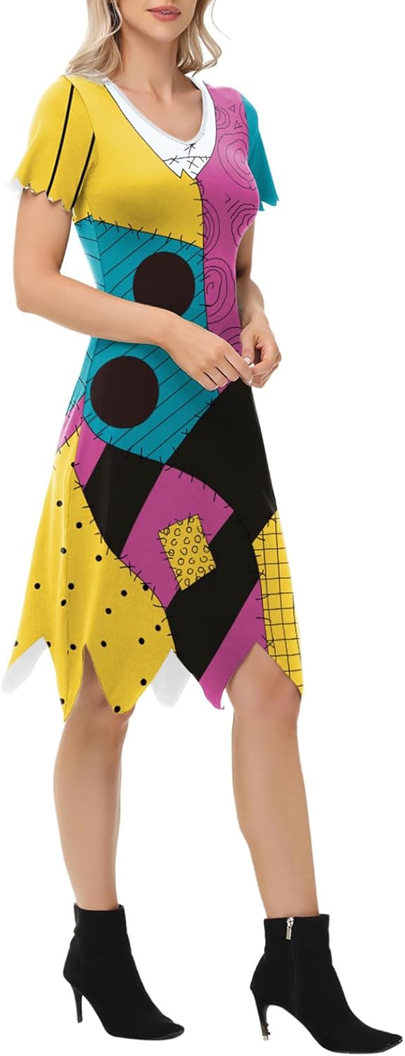 Realizzato in una miscela premium di 88% poliestere e 12% spandex, questo vestito è tanto comodo quanto elegante. Il tessuto morbido e traspirante abbraccia le tue curve senza limitare i movimenti, rendendolo perfetto per ballare, posare o semplicemente godersi la festa tutta la notte. La leggera elasticità assicura una vestibilità lusinghiera per una varietà di tipi di corporatura, mentre il materiale leggero ti mantiene fresco e sicuro. Ciò che distingue davvero questo vestito è il suo design audace e dinamico. Caratterizzato da un giocoso mix di colori e fantasie, è progettato per attirare l'attenzione e stimolare la conversazione. Le maniche asimmetriche aggiungono un tocco unico: un lato è una classica manica corta, mentre l'altro presenta un taglio alla moda con spalle scoperte. Questo dettaglio unico nel suo genere aggiunge un tocco di fascino audace e rende l'abito un vero pezzo di tendenza. Perché ti piacerà: morbido, elastico e traspirante per un comfort che dura tutto il giorno. Design audace e colorato che risalta nelle foto e dal vivo. Dettagli unici sulle maniche asimmetriche per un look alla moda. Perfetto per Halloween, Natale, cosplay, carnevali e altro ancora. Facile da abbinare con gli accessori per un outfit completo e festoso