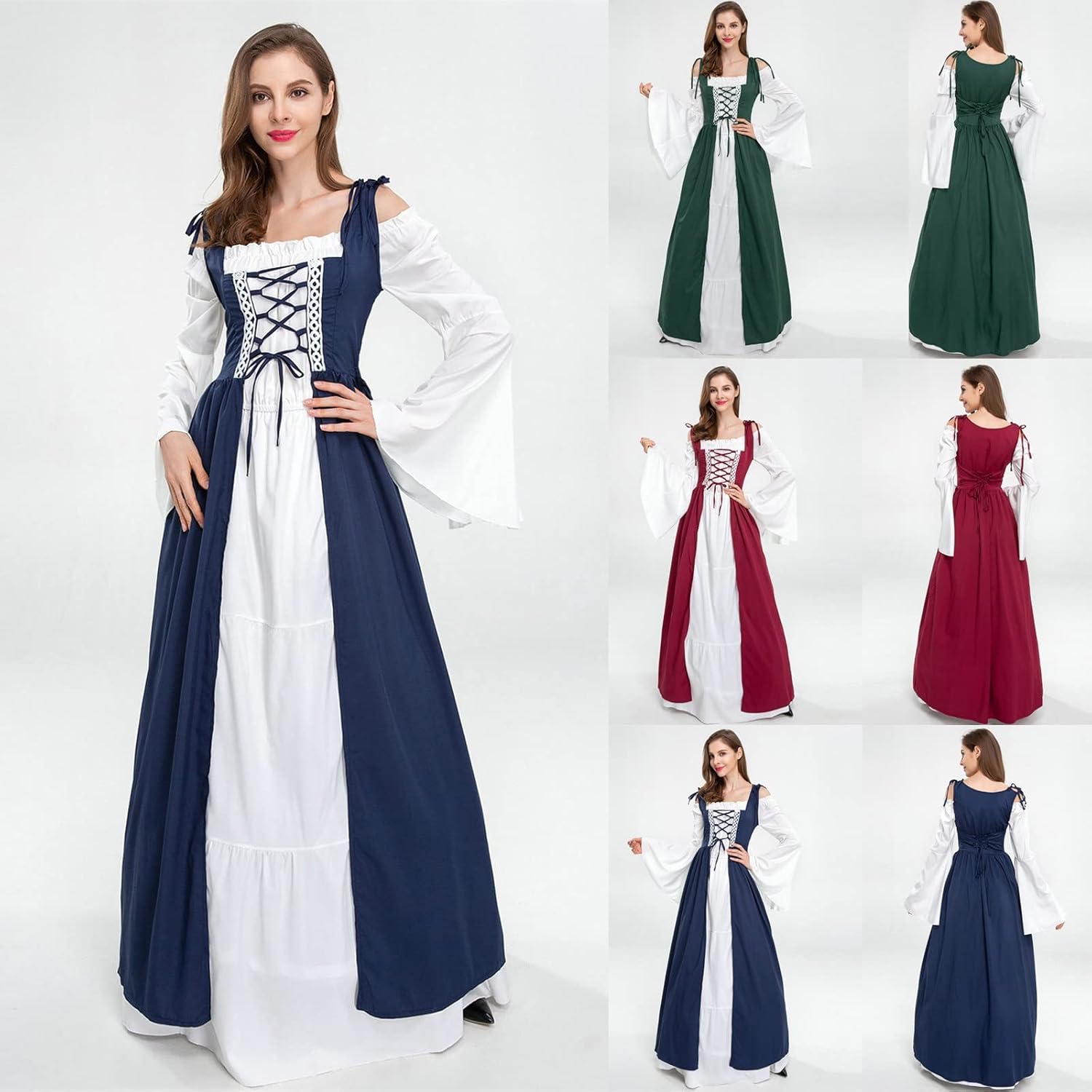 Abito tradizionale rinascimentale irlandese, costume rinascimentale medievale, maxi abiti, vintage, per feste, Halloween, gotico, cosplay, donne, carnevale vittoriano, 2 pezzi