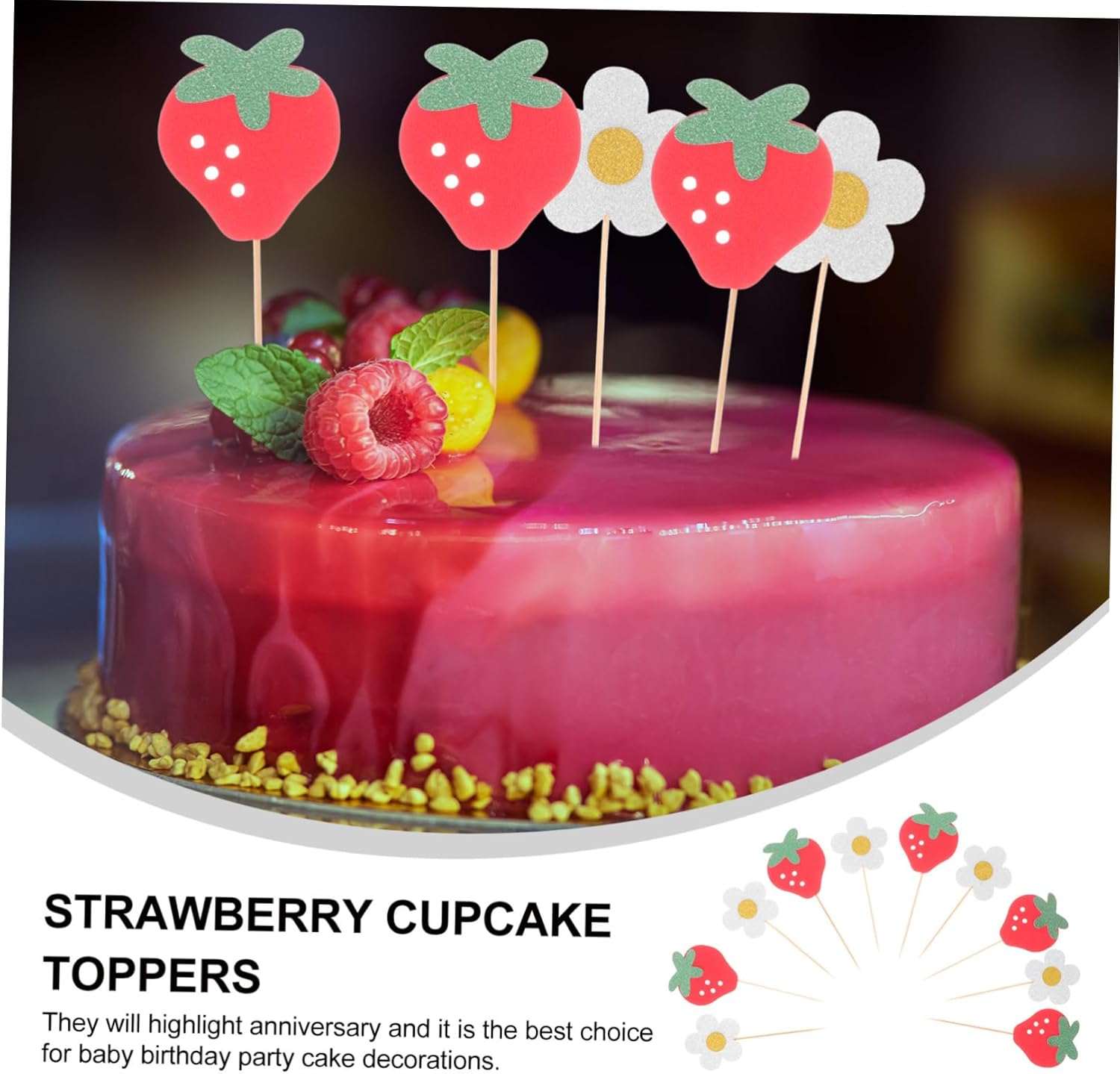 Forniture per feste a tema frutta: possono essere abbinate liberamente ad altri inserti sulla torta, basta inserirle direttamente nella torta, facili da usare, decorazione da tavolo per feste a tema fragola Decorazioni a forma di fiore per cupcake: decora perfettamente la torta della tua festa di compleanno e del shower e lascia bellissimi ricordi, striscioni per feste di fragole Toppers per cupcake a forma di pancake: con motivi unici di fiori e fragole e design compatto, sono decorazioni per torte e cupcake molto Decorazioni per cupcake tropicali: con un design adorabile, questi stecchini per torte sono perfetti per feste di compleanno, decorazioni per cupcake stagionali o festive, bomboniere a forma di fragola Decorazioni per compleanno a forma di fragola: sicure per gli alimenti e robuste, non facili da deformare o rompere, leggere e portatili, il colore non sbiadisce facilmente, decorazioni per cupcake alla frutta