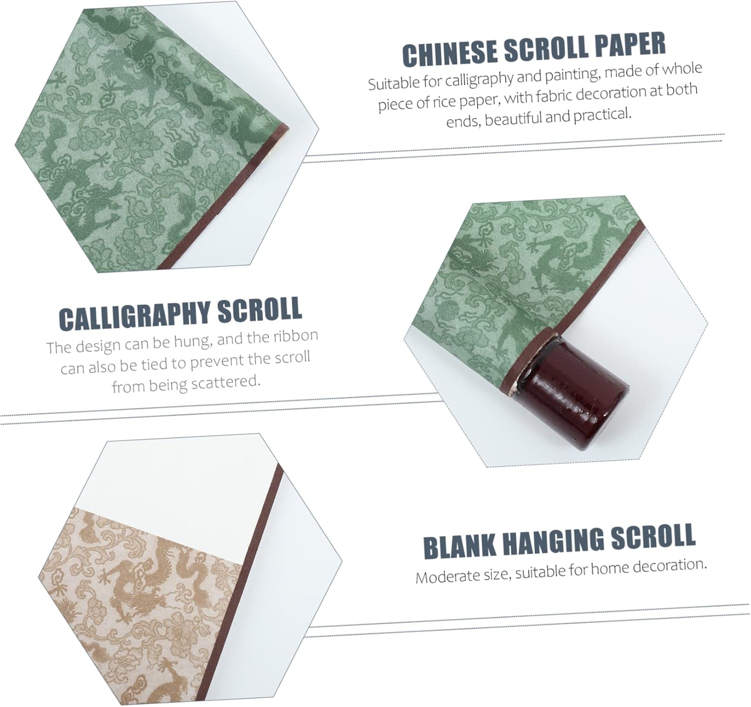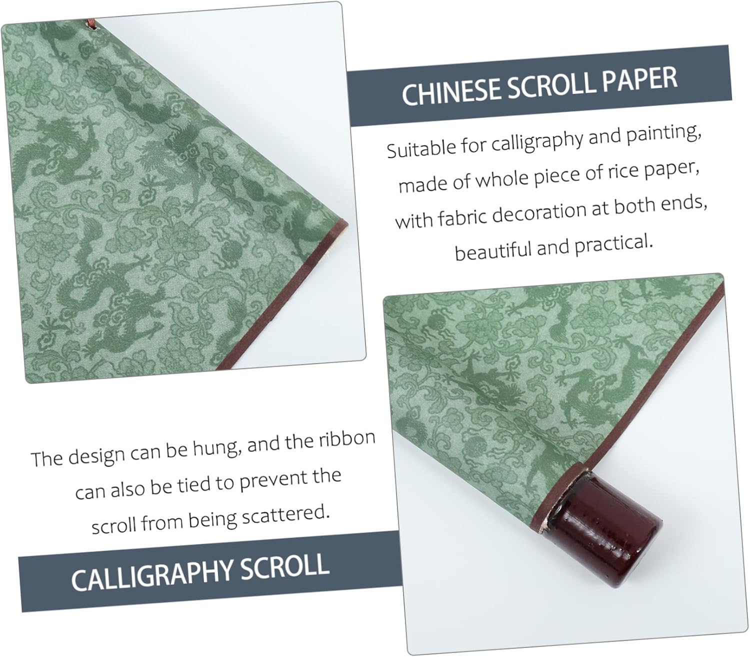 Pergamena vuota appesa: puoi dipingere o scrivere direttamente sulla semplice area di carta di riso al centro. Scorrimento vuoto per calligrafia: è ottimo anche per la pittura cinese o per le opere d'arte ad acquerello, un simpatico aiuto. Decorazione da parete con pergamena sospesa-- ✅✅non facilmente penetrabile durante la pittura. può essere conservato ordinatamente sulla carta. tutti i vuoti con una cravatta appesa in alto. anche la carta pergamena cinese è appesa al muro dopo aver finito. Scorrimento per esercitarsi con la calligrafia: dopo averlo finito, appeso al muro, ottimo per la decorazione della casa e dell'ufficio. Carta per calligrafia con scorrimento della carta: il rotolo di carta assorbe bene l'acqua. quindi è ideale per l'acquerello o la pittura a inchiostro