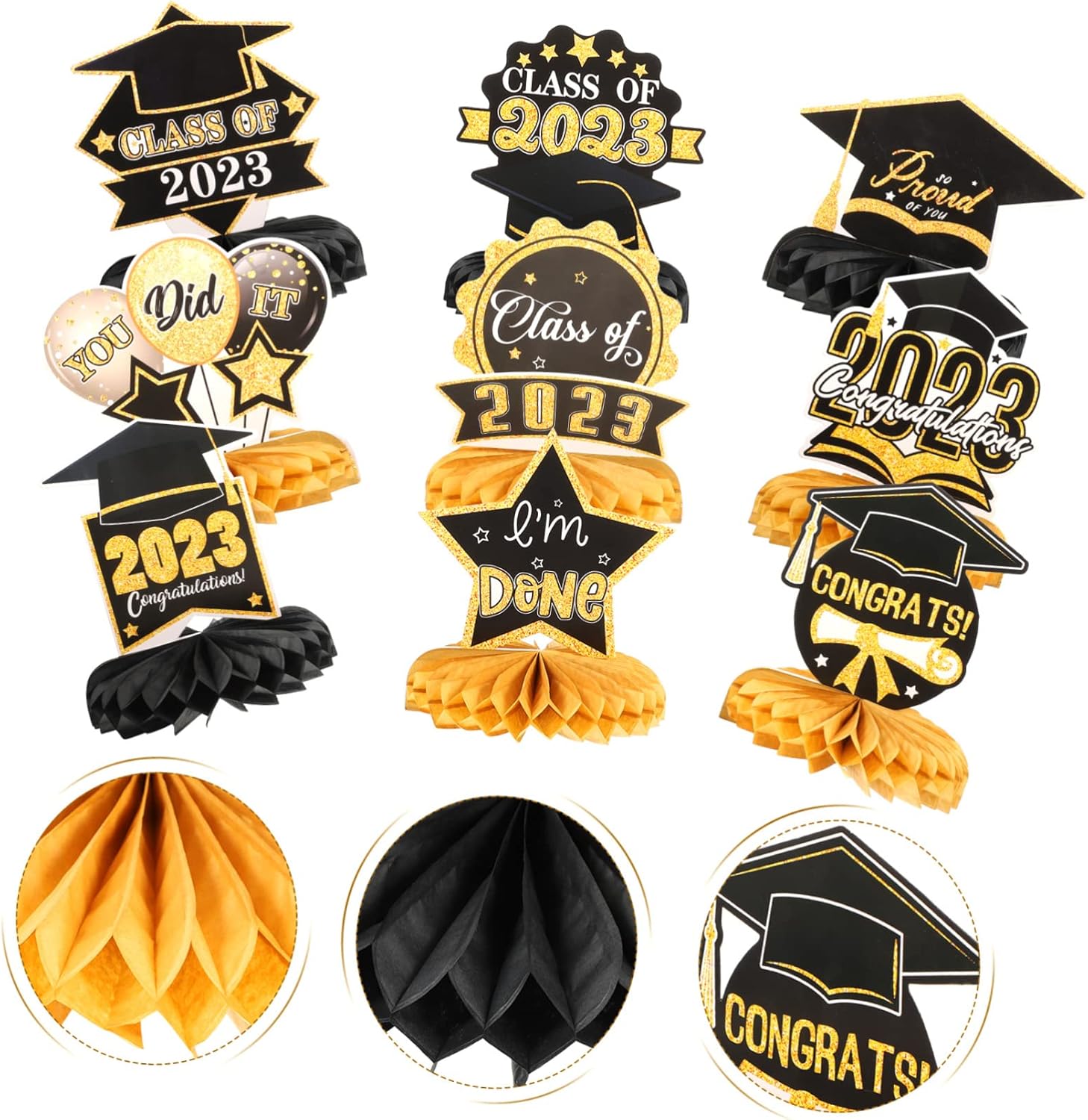 Accessorio per la festa di laurea: l'arredamento della festa è adatto per la festa di laurea e può essere una decorazione di sfondo per un'atmosfera alla festa. Classe dell'arredamento della festa del 2023: un po' di atmosfera impostando queste decorazioni a nido d'ape per la festa di laurea al centro del tavolo e queste fantastiche decorazioni di laurea sono abbastanza impressionanti essere notate. Favore della festa di laurea-- 👨🎓 [il pacchetto include] ci sono 9 pezzi di centrotavola a nido d'ape per la tavola. e nessun odore, sono una buona scelta per le decorazioni della festa di laurea. Centrotavola di laurea per tavoli: queste decorazioni a nido d'ape impressioneranno i tuoi ospiti e renderanno una festa di laurea esperienziale. Fornitura per feste: l'aspetto dell'arredamento sembra molto bello e interessante, il che può promuovere ulteriormente l'atmosfera della festa.