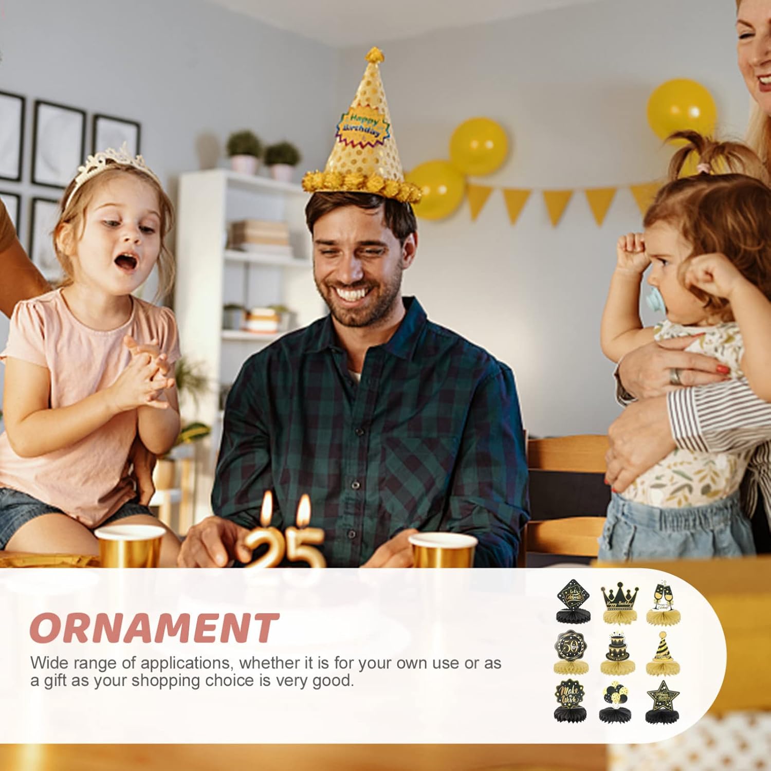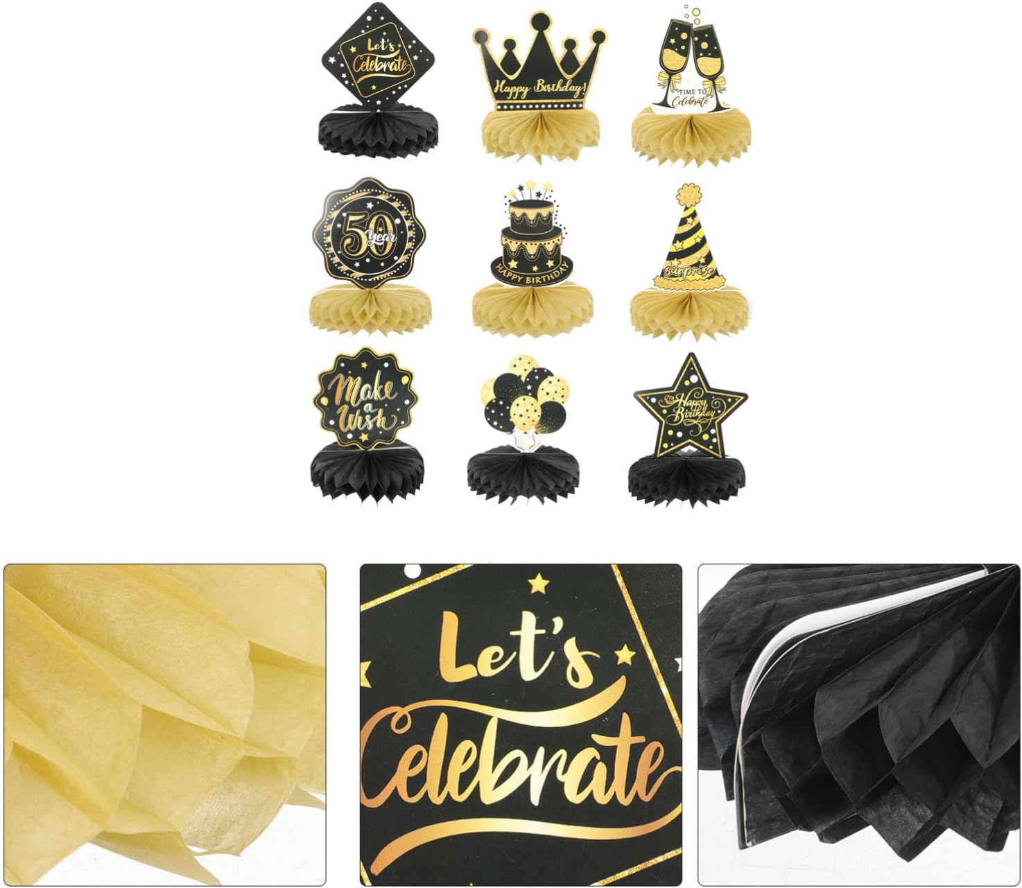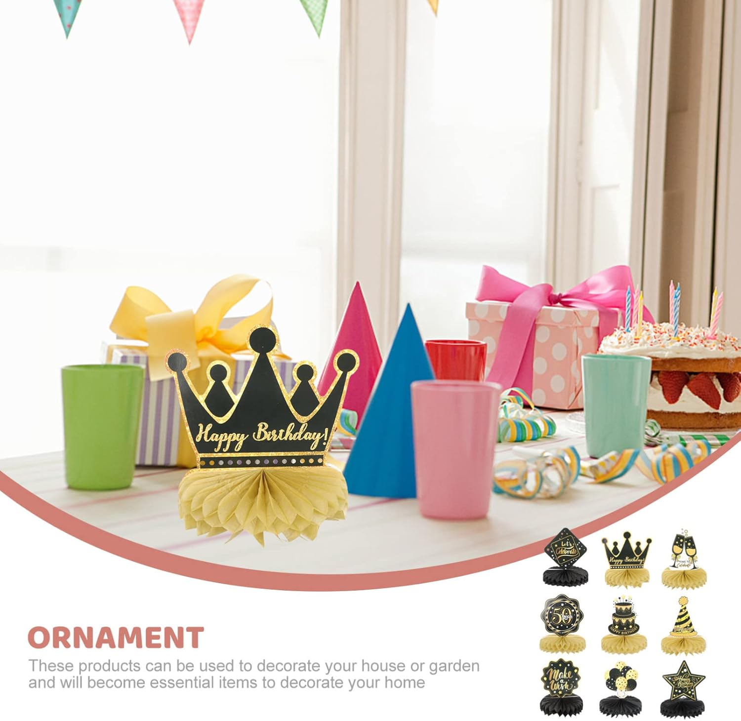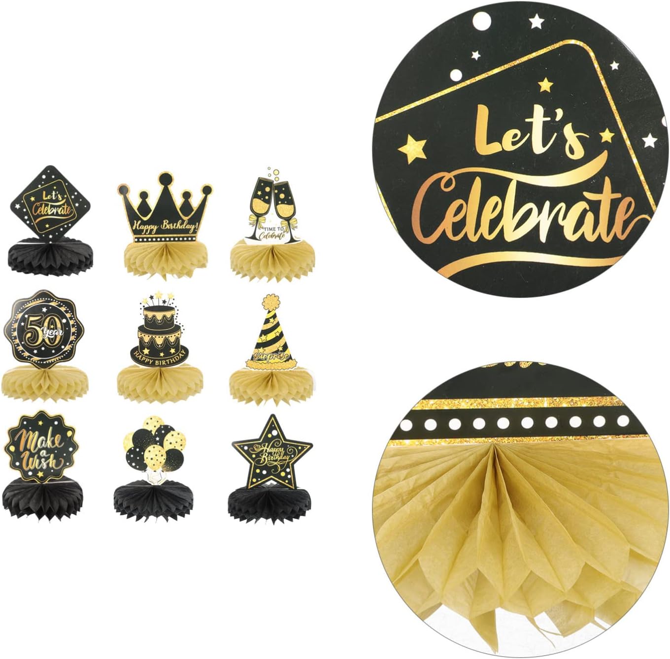 Cosa ottieni: riceverai 9 pezzi di compleanno centrotavola a nido d' compresi palloncini, torte, cappelli e così via; Il design delicato e la varietà di pezzi rendono questo kit di decorazione da tavolo un' impressionante aggiunta a qualsiasi partito a tema compleanno Cassaforte e affidabile: questi centrotavola tavolo di compleanno sono realizzati in robusto stock di carte con tecnologia di stampa laminata e delicata superficiale; Questi toppers da tavola di compleanno sono robusti, non tossici e senza odore, sono decorazioni nella festa di compleanno Informazioni sulla dimensione: la dimensione centrotavola a nido d' è di circa 17. 50x15. 00x15. 00 cm/ 6. 88x5. 89x5. 89in, alcune atmosfere mettono queste decorazioni in oro per la festa di compleanno nel mezzo tavolo e queste decorazioni di compleanno sono abbastanza impressionanti da notare Come usare: Innanzitutto, strappare l' adesivo della palla a nido d', quindi attaccare la palla a nido d' su un' area fissa sulla carta, il passo successivo è ripetere sull' altro lato della carta, finalmente metterlo in piedi sul tavolo, loro Molto facile da usare e risparmiare molto tempo nella decorazione Forniture per feste di compleanno: il centro di compleanno Centerpieces squisitamente progettato con elementi di compleanno interessanti, colori vivaci e caratteri per gli occhi, decorando la tua casa e la festa con i nostri centrotavola a nido d' sarà un successo alla tua festa