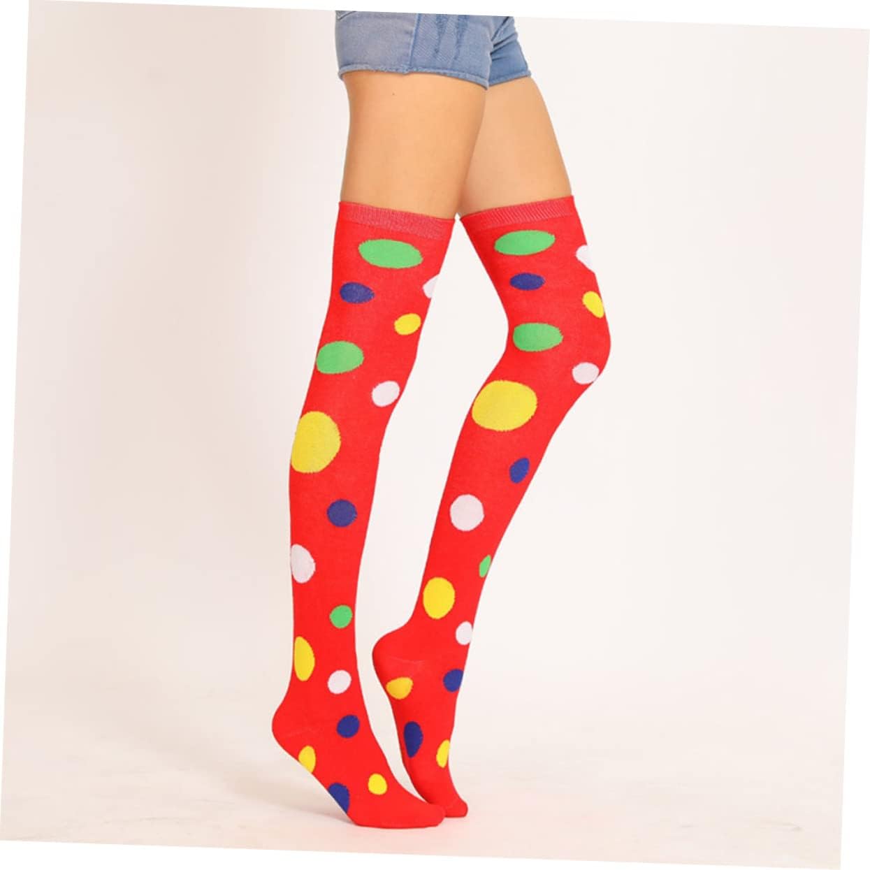 CALZINI DONNA CALZETTERIA: elementi clown, cosplay clown. questi graziosi calzini clown ti daranno un vestito carino e divertente . CALZINI ROSSI: possono applicati a varie occasioni, come feste personalizzate, travestimenti cosplay, spettacoli di danza o semplicemente per la decorazione quotidiana. CALZE DI SETA PER DONNA: CONSISTENZA CON BUONA ELASTICITÀ, ANTI-per indossare comodamente. CALZINI SOPRA IL GINOCCHIO: riceverai un paio di calzini al ginocchio a pois clown di carnevale misurano circa 53 x 6 x 0,2 cm. traspirante e confortevole, con una elastica nella superiore per garantire le calze non cadano. CALZINI BALLO PER ESIBIZIONI: elementi clown, perfetti per vestire il cosplay clown.