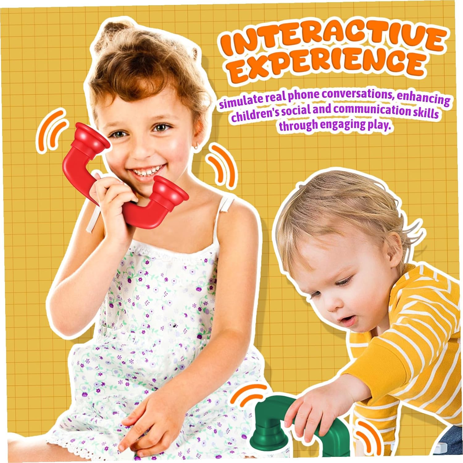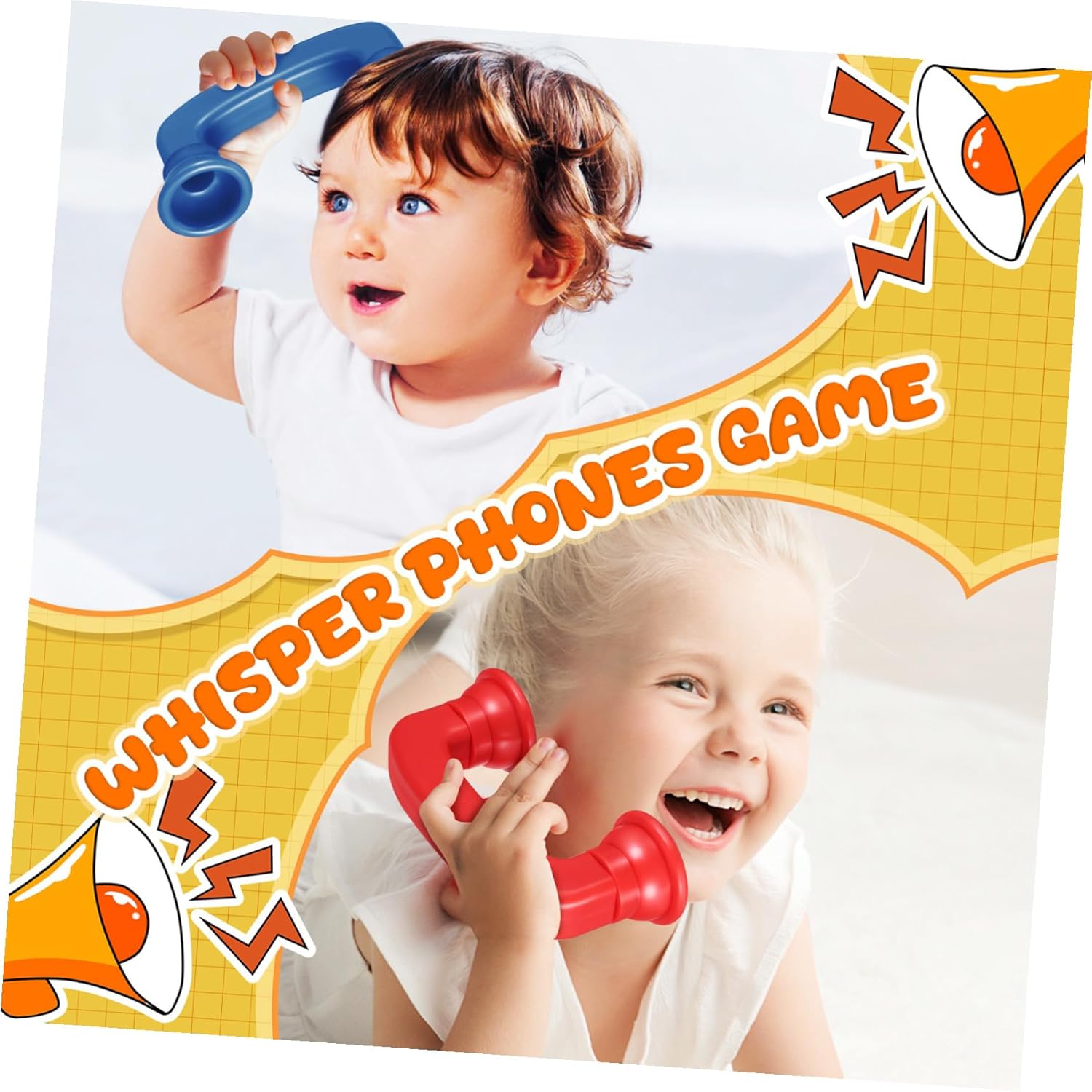 Facile da maneggiare: questi giocattoli per l'apprendimento della lettura e della scrittura sono leggeri, il che li rende facili da maneggiare e utilizzare senza troppi sforzi, telefoni sussurrati per insegnare, telefoni per bambini. Sviluppo linguistico: -I telefoni sussurrati forniscono feedback uditivo e aiutano i bambini a migliorare la pronuncia e la consapevolezza fonemica. Giocattoli telefonici, giocattoli logopedici per la pratica della fonetica: -I telefoni sussurrati sono progettati per migliorare la pratica della fonetica. Permettono ai bambini di sentire più chiaramente la propria voce quando pronunciano le parole. Telefoni sussurrati per lettori principianti, dispositivi per lo sviluppo del linguaggio Costruzione robusta: questi telefoni giocattolo sono realizzati con robusti materiali ABS e possono resistere a giochi difficili e durare a lungo. Telefono sussurrato, telefoni sussurrati per lezioni Emozionante strumento di apprendimento: i telefoni sussurrati per giochi di ruolo rendono la pratica della fonetica più interattiva ed emozionante e aggiungono un elemento di divertimento e giocosità, telefono giocattolo, telefoni sussurrati