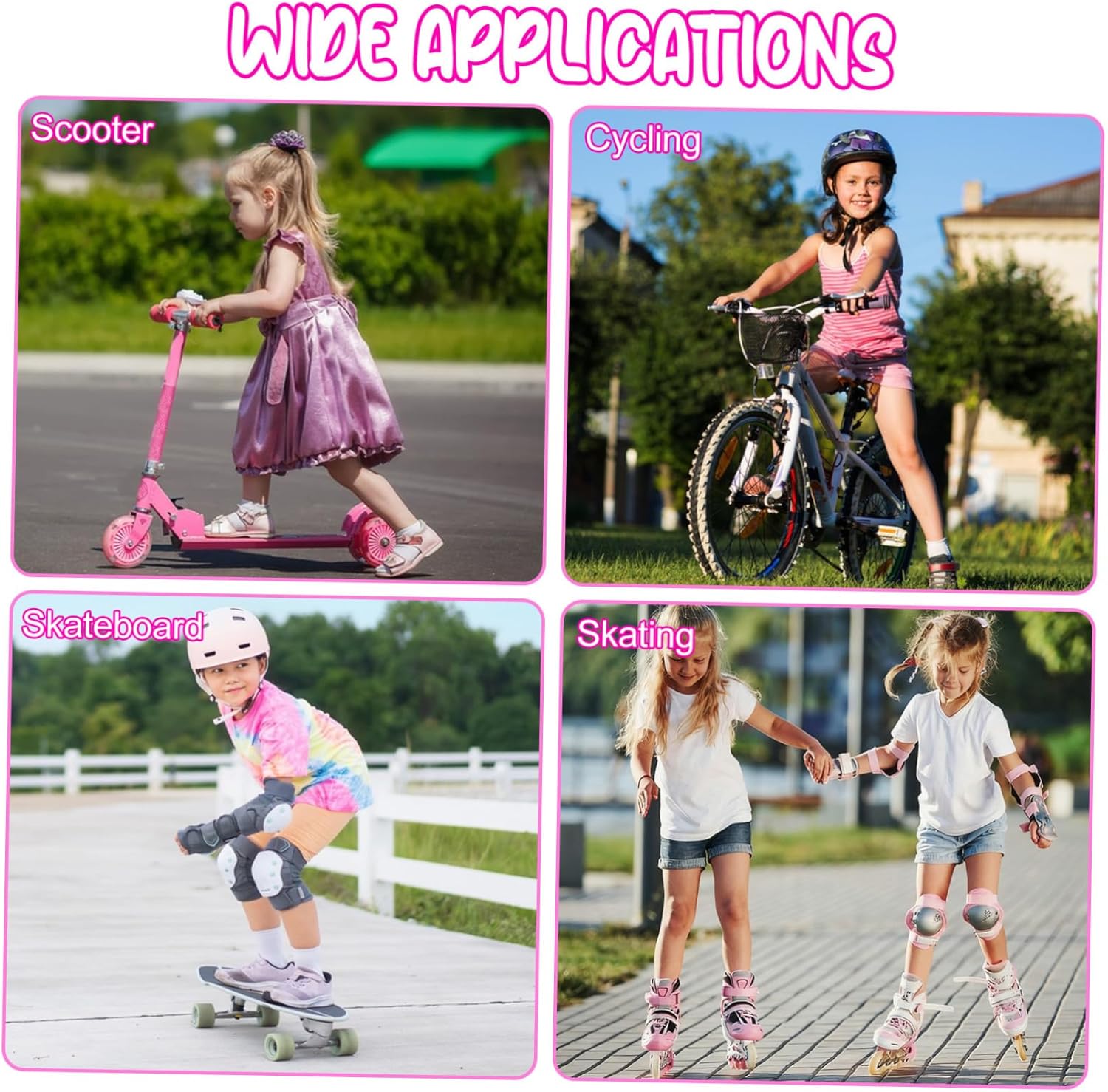 Pratico: è una buona scelta per la festa dei bambini, Natale, compleanni o altre feste, come ginocchiera per il pattinaggio o come set protettivo per la guida Comodo da indossare: cuscinetti leggeri, elastici e traspiranti, fori di ventilazione che ti mantengono fresco e comodo anche durante esercizi faticosi, equipaggiamento protettivo per pattinaggio, equipaggiamento protettivo per pattinaggio su ghiaccio Scelta ponderata: questo equipaggiamento protettivo è sicuramente una buona scelta, quindi ama i tuoi sport, ginocchiere per pattini a rotelle, equipaggiamento protettivo per pattini a rotelle per Ampie applicazioni: adatto per pattinaggio in linea, ciclismo, pattinaggio a rotelle, scooter, skateboard e altri sport all'aria aperta, equipaggiamento protettivo per pattinaggio e skateboard, accessori per pattinaggio a rotelle Materiali sicuri: utilizzando materiali affidabili, questo equipaggiamento protettivo è durevole e può resistere a un uso prolungato. dispositivi di protezione per il ciclismo, ginocchiere per il ciclismo