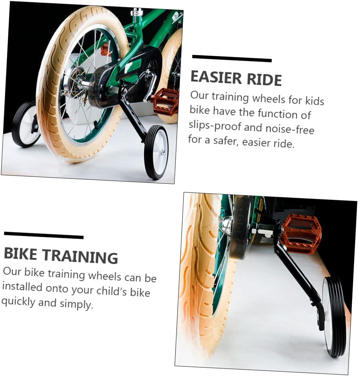 Supporto sicuro per : Gli Auxiliary wheel accessories sono progettati per offrire stabilità durante l'apprendimento della bicicletta, facilitando l'equilibrio e sicurezza su bici per ragazzi e ragazze dai 16 ai 24 pollici, per'esperienza di guida senza preoccupazioni Design regolabile e versatile: Questo set di ruote di supporto si adatta a diverse dimensioni di bici per , garantendo un montaggio semplice e utilizzo prolungato in base alla crescita del giovane ciclista, ottimizzando così'apprendimento progressivo Materiale resistente e leggero: Realizzati in lega di alluminio, questi stabilizzatori presentano ruote più spesse con supporto aggiuntivo per migliorare la stabilità, offrendo un aiuto pratico e durevole durante le prime pedalate dei Adatti a in crescita: Progettati per bici tra 16 e 24 pollici, gli Auxiliary wheels si integrano bene con diversi modelli di biciclette per ragazzi e ragazze, supportando il percorso di apprendimento in ambienti urbani o parchi all'aperto Supporto ideale per giovani ciclisti: Queste ruote di allenamento aiutano i a sviluppare il senso dell'equilibrio in modo naturale, rendendo le attività all'aperto più piacevoli durante compleanni, festività o momenti di gioco in famiglia