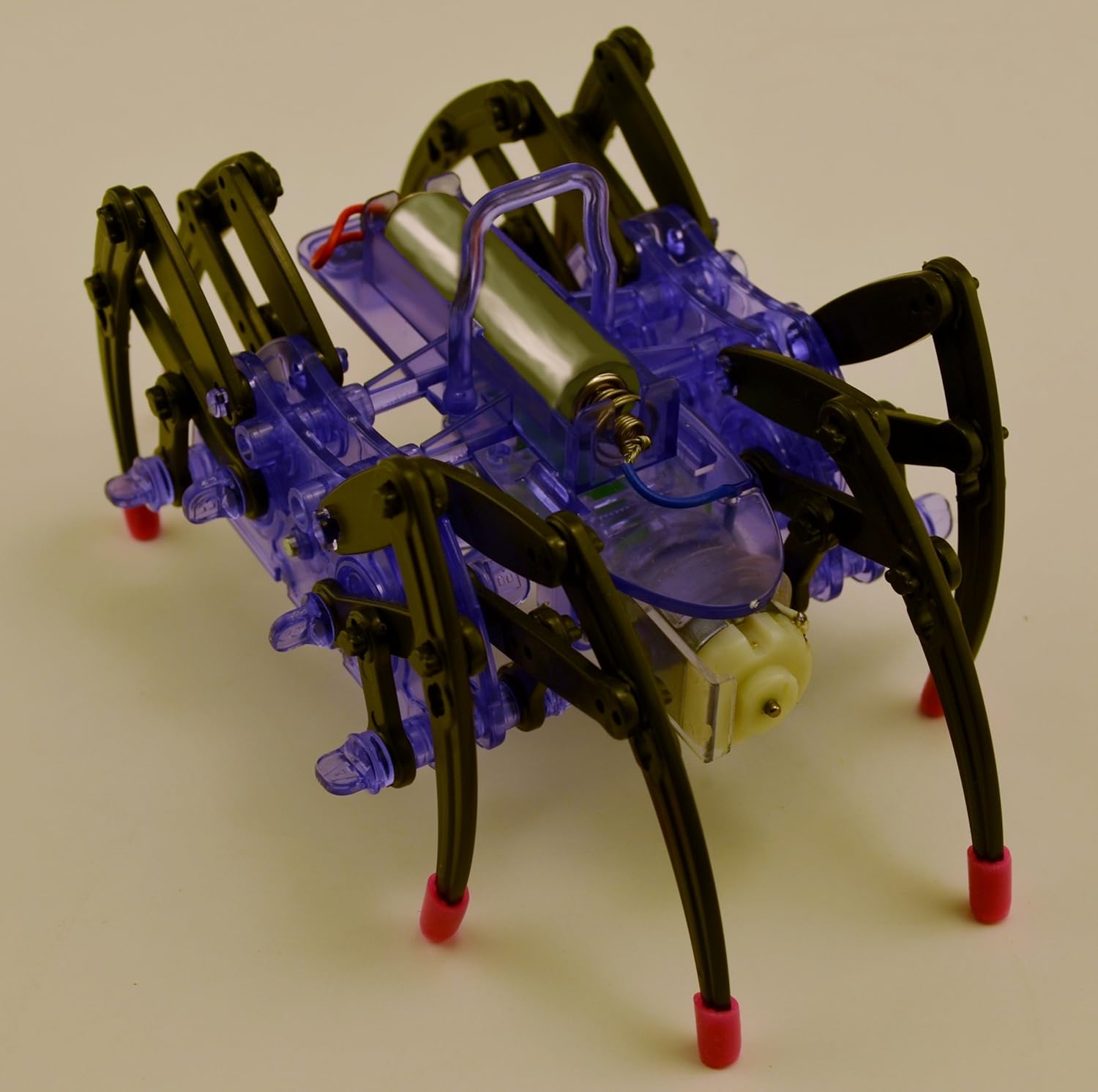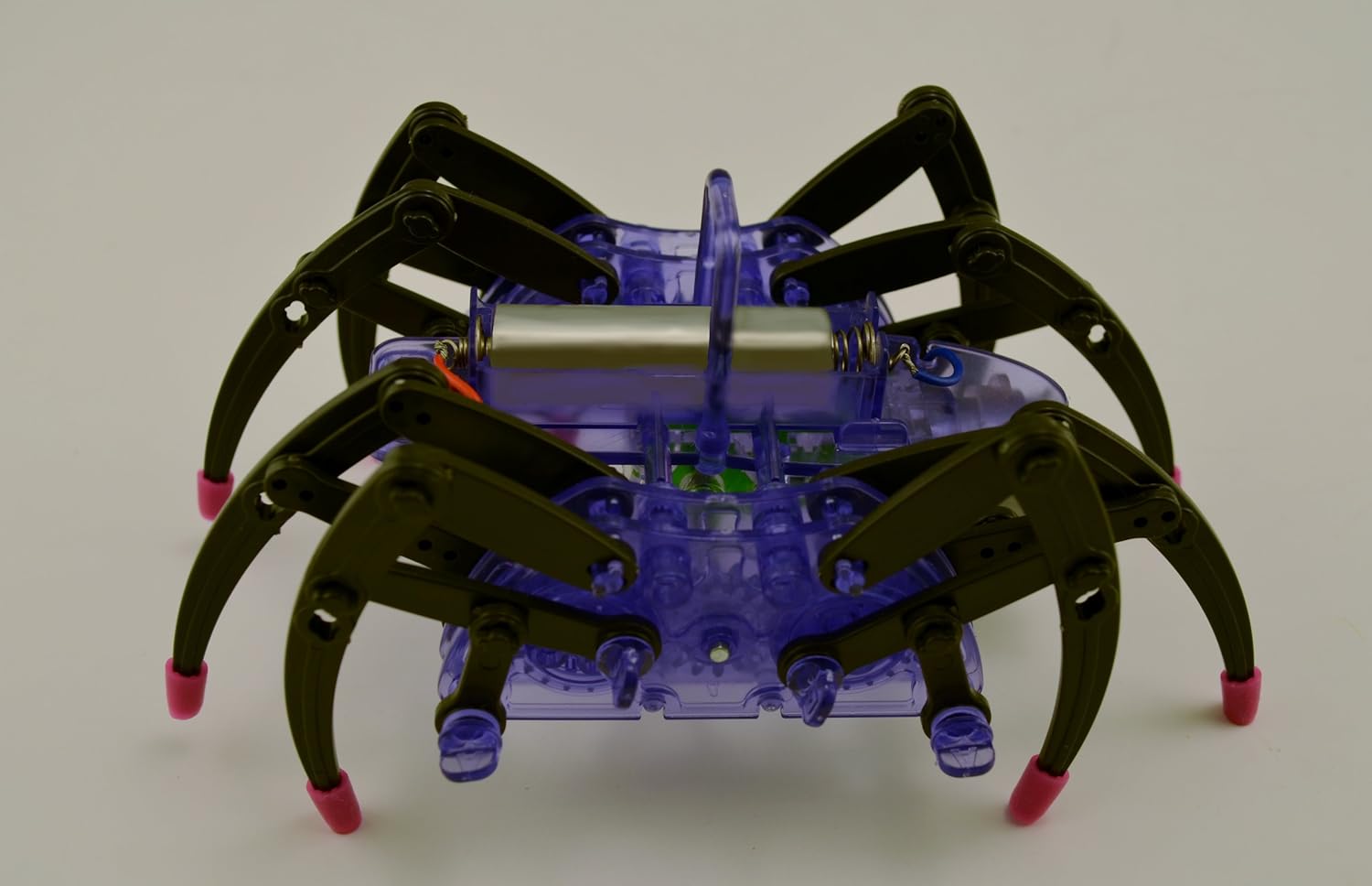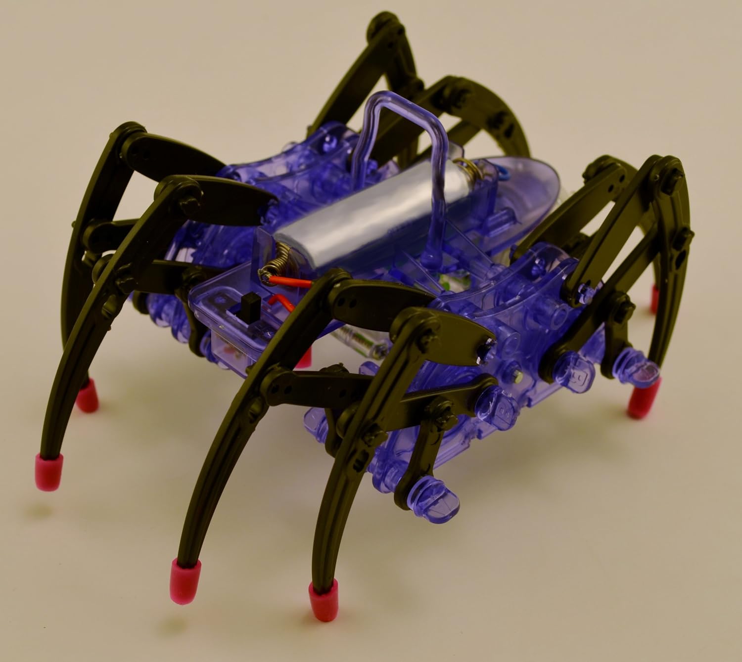 Spider Robot - Kit educativo per l'accademia Otto gambe multi-articolate duplicano accuratamente il movimento a piedi dei ragni reali. Facile da montare, colla e vernice non necessari Due scelte di montaggio per cambiare lunghezza e andatura. Richiede 1 batteria AA (non inclusa)