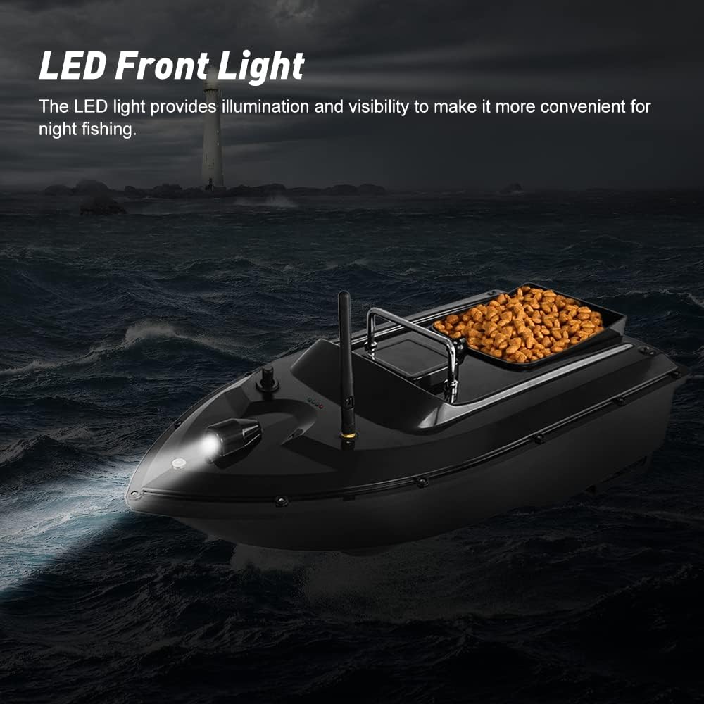 Doppi motori ed eliche conferiscono alla barca un forte slancio. Grande contenitore per esche con portata fino a 1,5 kg per più esche. Telecomando wireless con portata di 500 m per un facile utilizzo. Un pulsante per accendere la corsa a velocità fissa in modo che la barca si sposti in linea retta a velocità costante. Percorso di vela automaticamente corretto.