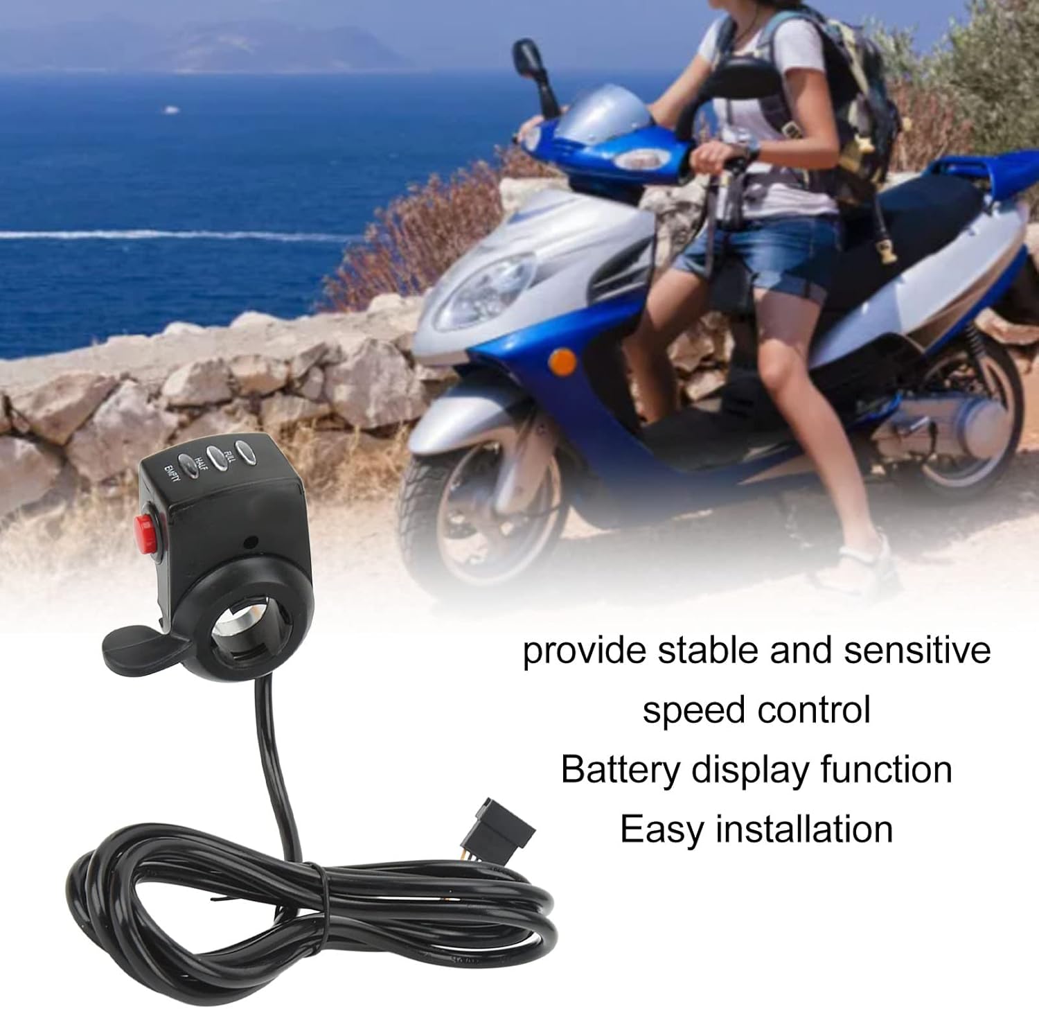 Indicatore della batteria: questa leva dell'acceleratore per e-bike supporta l'indicatore della batteria, in modo da poter controllare la capacità residua della batteria in qualsiasi momento. Controllo stabile: questo acceleratore a pollice per e-bike fornisce un controllo della velocità stabile e sensibile e funziona perfettamente sul manubrio. Materiale durevole: questa leva dell'acceleratore per e-bike è realizzata in materiale ABS di alta qualità, che garantisce una lunga durata della leva dell'acceleratore per e-bike. Design corretto: questo acceleratore a pollice per bici elettrica ha un design adeguato che non interferisce con le leve dei freni o le leve del cambio. Installazione semplice: questo acceleratore da dito per e-bike con indicatore della batteria e acceleratore a pollice per e-bike può essere facilmente installato.