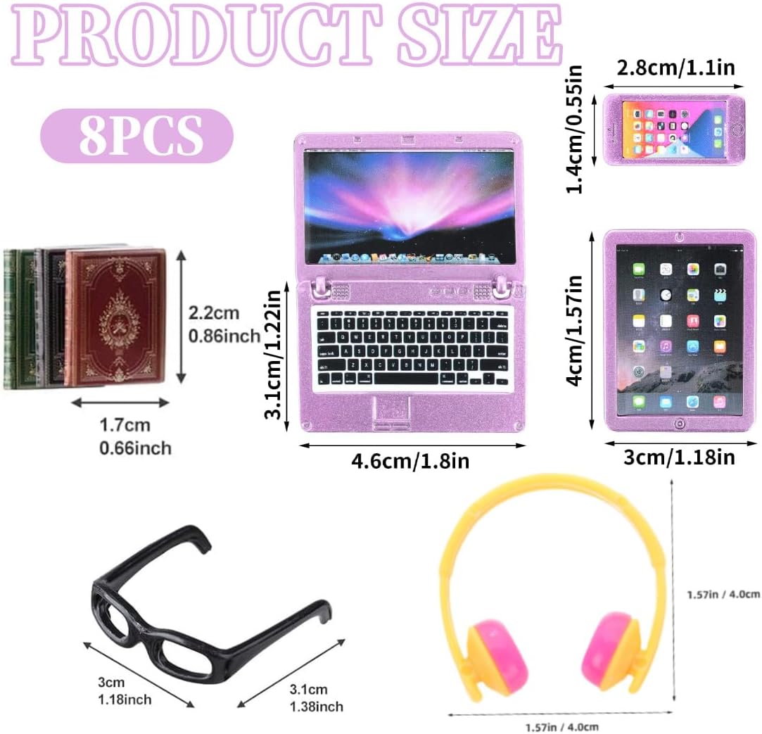 Set ricco: Il set include 1 mini laptop, 1 mini tablet, 1 mini telefono,, 2 paio di occhiali, 2 cuffia, 3 taccuini. Soddisfa tutte le tue esigenze di decorazione della casa delle bambole, offrendo molte possibilità di combinazioni creative. Materiali di alta qualità: I nostri accessori bambole sono realizzati in resina, carta e metallo di alta qualità, non tossici, inodori, leggeri e portatili, di bellissimo colore, sicuri e durevoli, difficili da rompere o sbiadire. Contiene piccole parti, i bambini sotto i 3 anni devono essere sorvegliati da un adulto. Design raffinato: Ogni accessori casa bambole ha uno stile di design unico. Dalle scene di studio a quelle di ufficio, questi casa bambole accessori possono ricreare varie situazioni della vita reale, rendendo la casa delle bambole più vivace e interessante, stimolando al contempo l'immaginazione e la creatività dei bambini. Scenari di utilizzo: Questi accessori per bambole sono realistici e perfetti per decorare case delle bambole in scala 1:12, scene di ufficio, giardini in miniatura e altro ancora. Sia che vengano usati come decorazione o come oggetti di scena per la fotografia, aggiungono realismo e dettagli alle tue scene. Regalo squisito: Questo set di accessori casa delle bambole è un'idea regalo ideale, perfetta per amici, bambini o familiari che amano i modelli in miniatura, l'artigianato o le case delle bambole. Che sia per Natale, compleanni o altre festività, questo regalo porterà molta gioia.