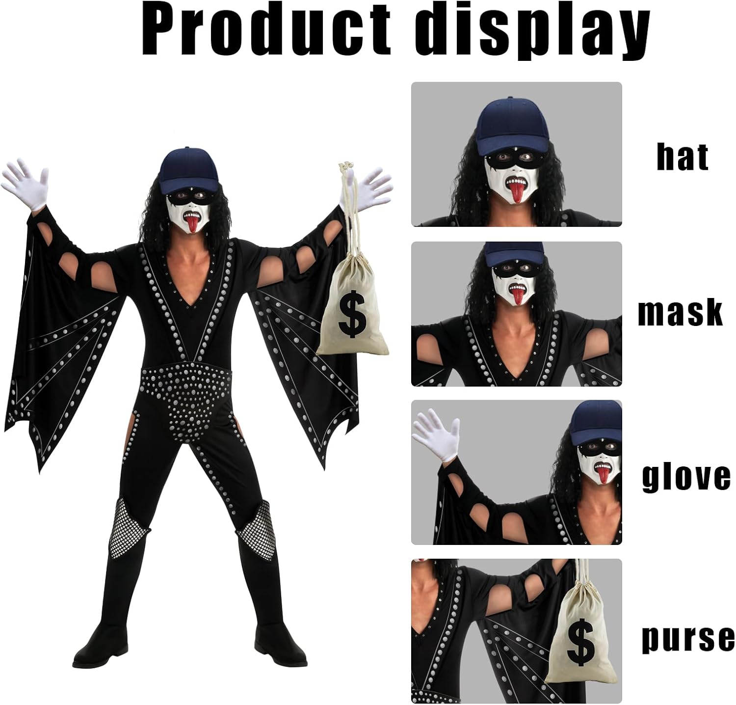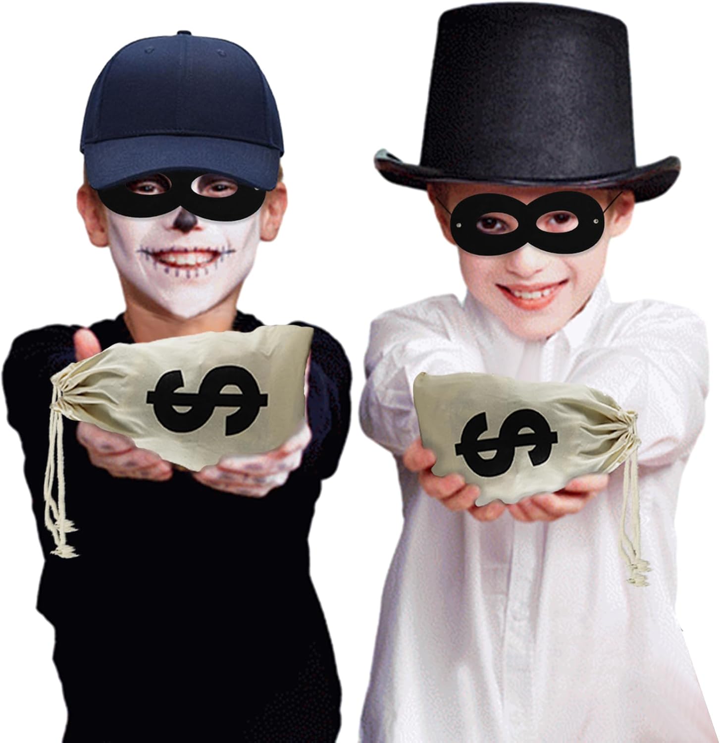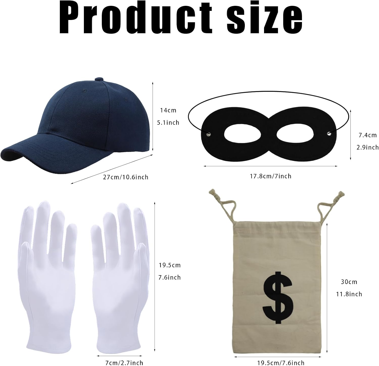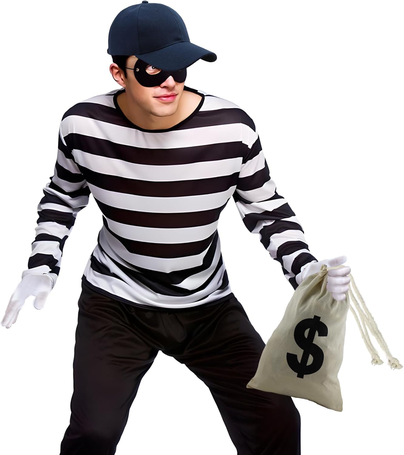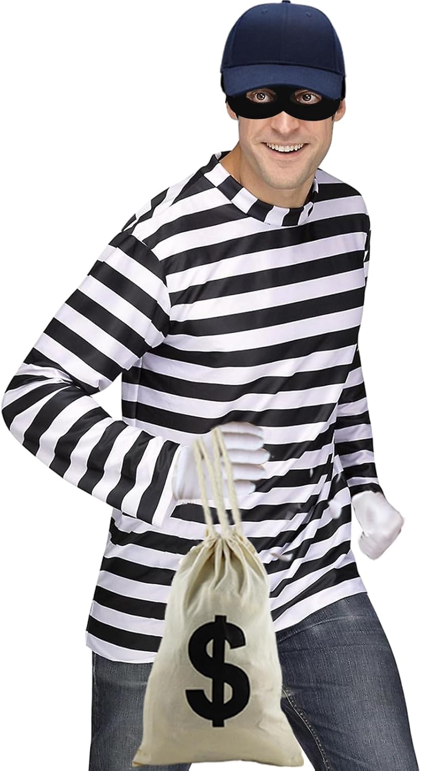 Accessori Costume per Ladri,Maschera+Cappellino+Guanti+Borse,Set di Costumi per Ladri,Cosplay Bandito Ladri,per Carnevale Festa a Tema Halloween