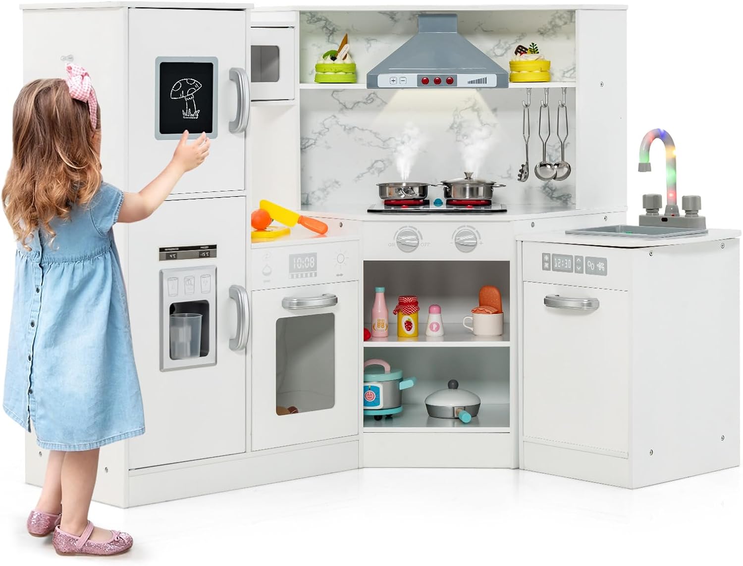 Incoraggia le abilità culinarie: sviluppa in modo giocoso tecniche di cucina di base e ispira curiosità sull'arte culinaria attraverso il gioco interattivo, promuovendo al contempo le capacità motorie e il pensiero creativo Stabilità per un gioco sicuro: dotati di acciaio inossidabile e PP per uso alimentare, questi accessori sono costruiti per resistere alle cadute, resistere all'usura quotidiana e fornire una soluzione ignifuga per il gioco creativo. Efficiente e organizzato: il design ottimizzato per lo spazio consente di riporre in modo salvaspazio, consente di riporre in modo ordinato gli accessori anche in aree abitative anguste. Abilità pratiche: incoraggia l'indipendenza e sviluppa abilità di vita, migliora la coordinazione occhio-mano e allo stesso tempo aumenta la fiducia nel completare le attività quotidiane - giocattolo ideale per lo sviluppo del bambino. Repliche pratiche: esperienza di gioco autentica con 22 utensili da cucina, comprese pentole e strumenti. Motiva i bambini a impegnarsi in giochi di ruolo fantasiosi imitando realisticamente le attività in cucina.