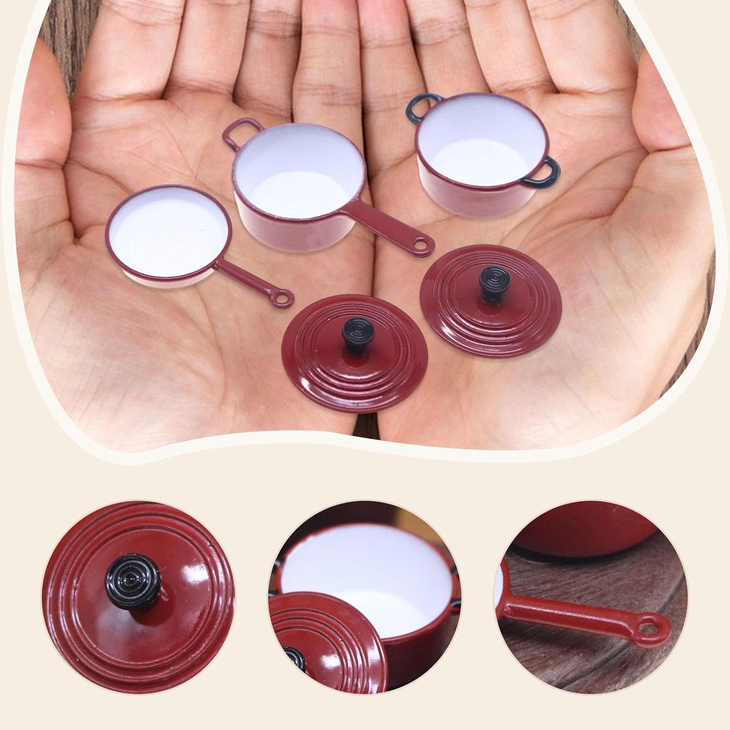 【Gioco di ruolo】: il modello Mini Pots and Pans può simulare il gioco della cucina, giocare di finzione con amici 【Design realistico】: le pentole in miniatura per casa delle bambole in scala 1:12 includono pentola per stufato, pentola per zuppa e padella 【Decorazioni per la casa delle bambole】: i giocattoli per accessori da cucina per giochi di finzione sono adatti per la casa delle bambole 1/12, migliorano le scene della tua casa delle bambole o della tua cucina in miniatura, questo mini set di utensili aggiunge un tocco realistico alla tua collezione 【Materiale】: Realizzato in lega, questo set da cucina in miniatura per casa delle bambole è progettato per durare a lungo e per un uso a lungo termine 【Detta elevati】: accessori da cucina per case delle bambole in miniatura 1/12 sono realistici e dettaati, aggiungendo un tocco realistico alla scena del tuo micro paesaggio