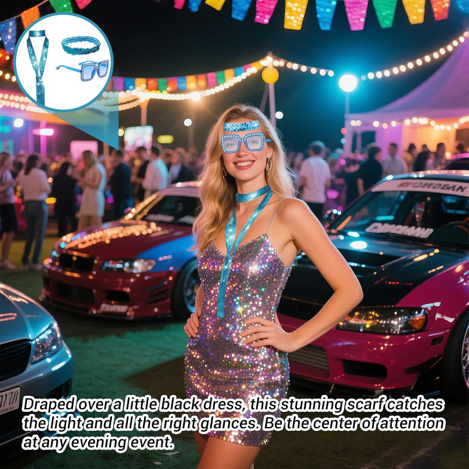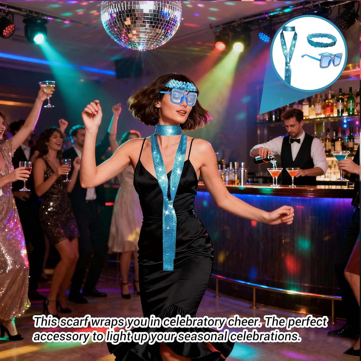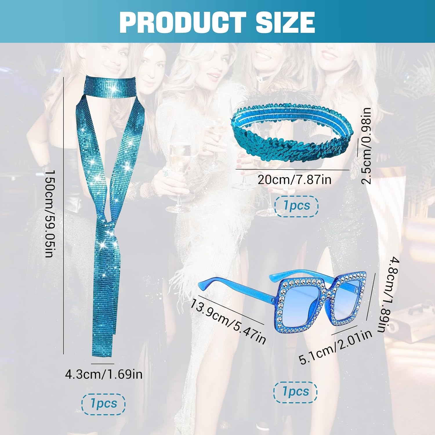 Punto vendita 1: Questo set di accessori disco anni 70 unisce stile e fascino retrò grazie a una sciarpa luminosa con 21 file di paillettes scintillanti, una fascia coordinata e un paio di occhiali da sole glamour: ideale per ricreare l’atmosfera unica delle feste anni 70, perfetto per feste a tema, carnevale, eventi in discoteca o serate speciali dove vuoi distinguerti con un look brillante e accattivante. Punto vendita 2: La sciarpa lunga 150 cm e larga 5,4 cm offre versatilità nell’uso: puoi indossarla come elegante sciarpa o come cravatta fashion, abbinandola a qualsiasi abbigliamento da festa. La fascia brillantata aggiunge un tocco chic alla pettinatura, mentre gli occhiali da sole completano il look con un tocco di mistero, rendendo il set perfetto per chi ama esprimere personalità e creatività. Punto vendita 3: Realizzata con materiali di alta qualità e paillettes resistenti, la sciarpa pesa solo 76 g garantendo leggerezza e comfort per essere indossata anche per molte ore senza fastidi: questo set di accessori disco anni 70 è studiato per assicurare resistenza e praticità, unendo stile e comodità in un unico prodotto adatto a tutte le età. Punto vendita 4: Ideale per completare qualsiasi costume a tema anni 70, feste in maschera o spettacoli, questo set di accessori disco attira subito l’attenzione grazie alla sua luminosità e ai dettagli curati. Perfetto per carnevale, Halloween o eventi in stile retrò, dona subito un tocco festoso e fotogenico, facendoti risaltare in ogni foto e ricordo della serata. Punto vendita 5: Un’idea regalo originale e divertente per amiche, sorelle o colleghe che amano la moda vintage e le feste brillanti: questo set di accessori disco anni 70 è adatto per compleanni, feste di fine anno, ricorrenze speciali o semplicemente per sorprendere qualcuno con un dettaglio luminoso e alla moda che renderà unico ogni outfit.
