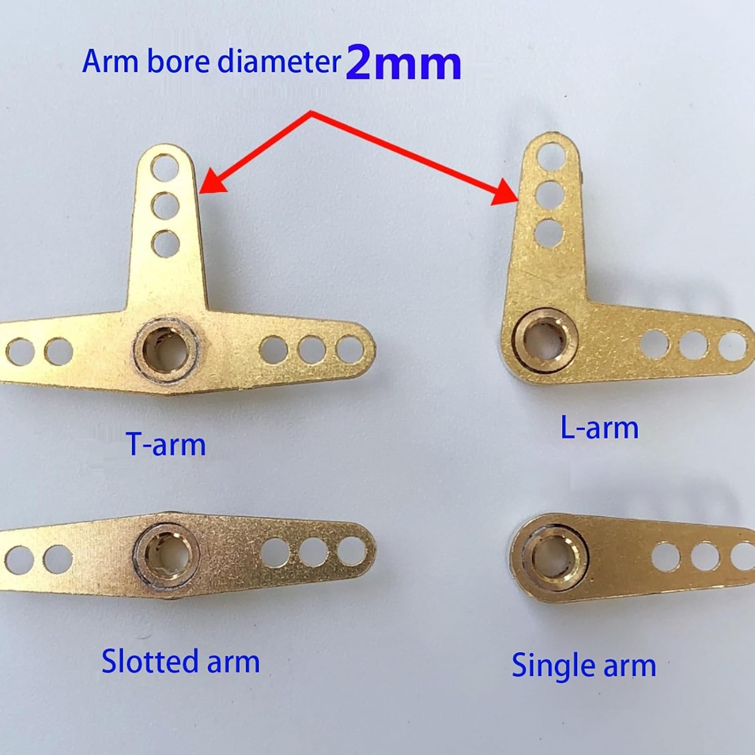 Questo servo braccio in ottone è progettato for timoni di barche modello RC, caratterizzato da un foro interno da 3 mm e un'altezza di 7 mm. Realizzato con brasatura a stagno, offre durata ed è fissato con un grano M3. Disponibili in quattro tipi: braccio corto, braccio lungo, tipo L e tipo T, for varie configurazioni di sterzo.