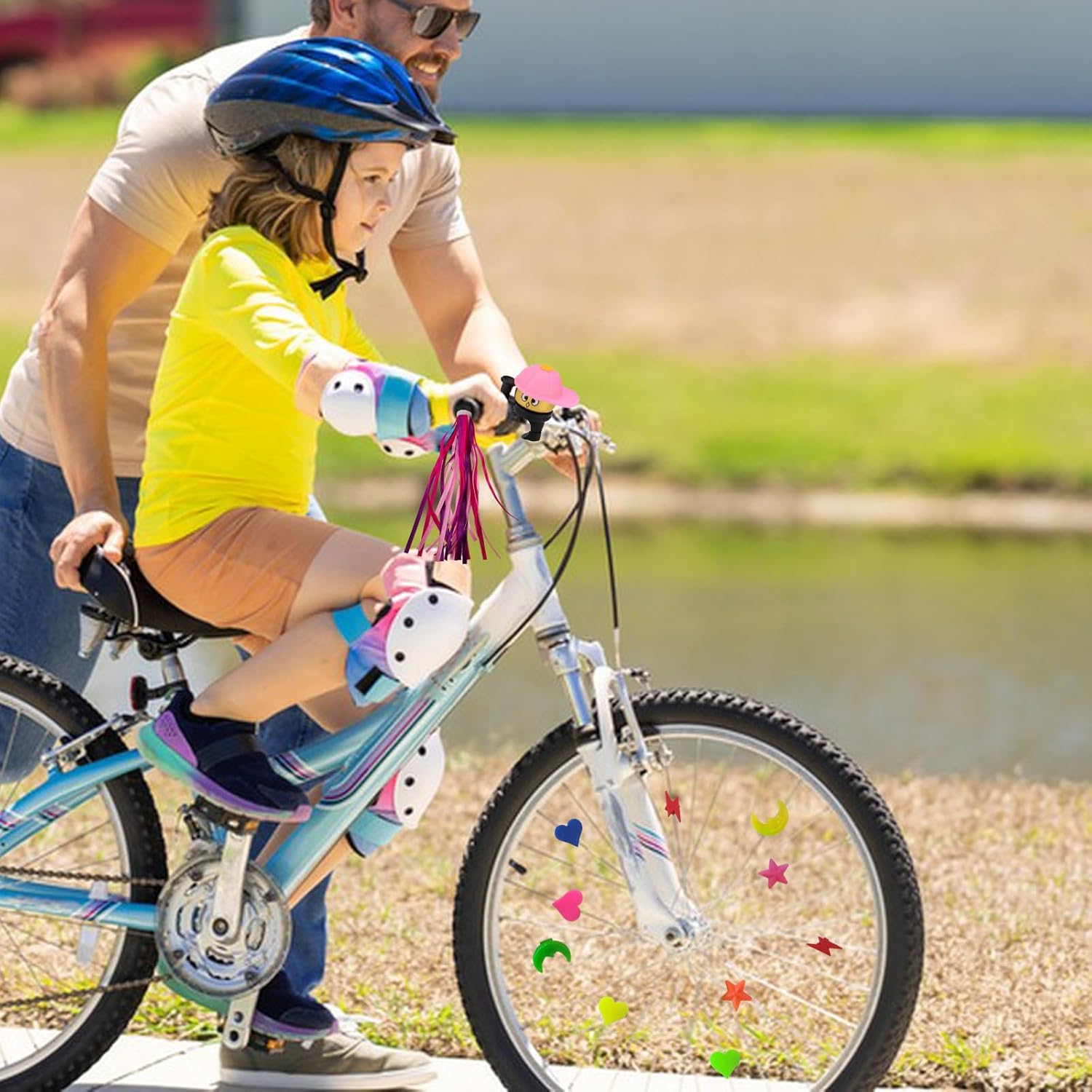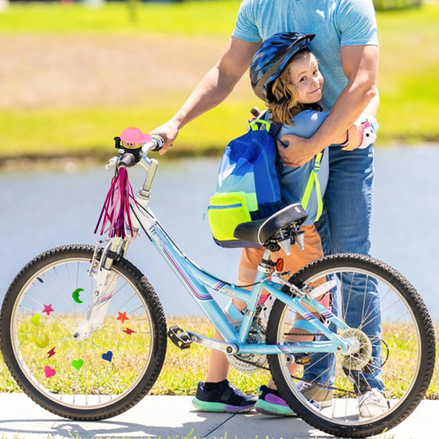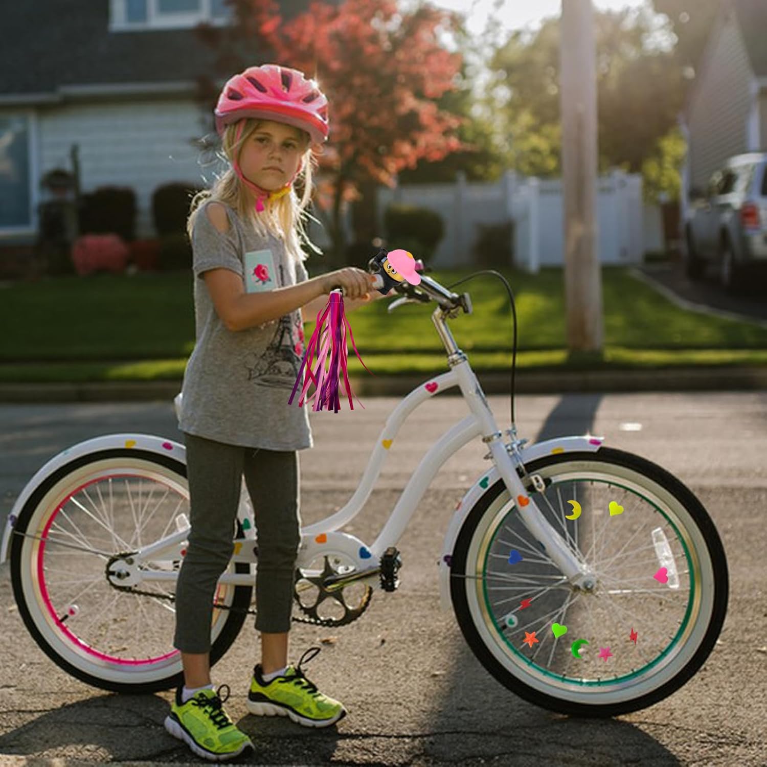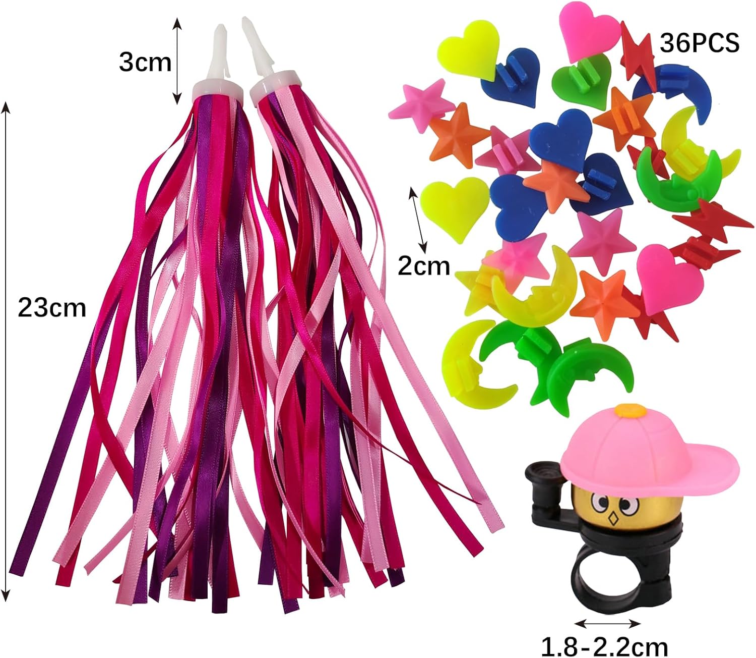 La confezione include: 1 paio di stelle filanti per bicicletta, 1 campanello per bicicletta per bambini e 36 perline colorate per raggi di ruota di bicicletta (colori casuali). Le dimensioni di nastri, campanelli e raggi sono perfette per decorare la bici e permettere ai tuoi bambini di avere bici più belle. Sicuro e innocuo: gli streamer per bici per bambini sono realizzati in plastica PP e poliestere di alta qualità, non tossici e innocui, puoi stare certo che i tuoi bambini potranno usarlo, rendendo il loro tempo di guida pieno di sicurezza e gioia. Aumenta il divertimento della guida: gli streamer per biciclette per bambini sono colorati e adorabili, il che non solo abbellisce l'aspetto della bicicletta, ma aumenta anche il divertimento della guida. Ampia applicazione: gli streamer per bici per bambini possono essere utilizzati per biciclette, scooter, tricicli e altro, le perline dei raggi delle ruote sono in colori vivaci, facili da installare e rimuovere, applicabili a vari modelli. Regalo attraente: questi accessori per biciclette possono stimolare efficacemente l'interesse di un bambino nell'imparare ad andare in bicicletta, rendendolo un regalo ideale come ricompensa. Che si tratti di una parata, di una pedalata informale o di un evento speciale, porterà gioia e piacere a qualsiasi esperienza ciclistica.