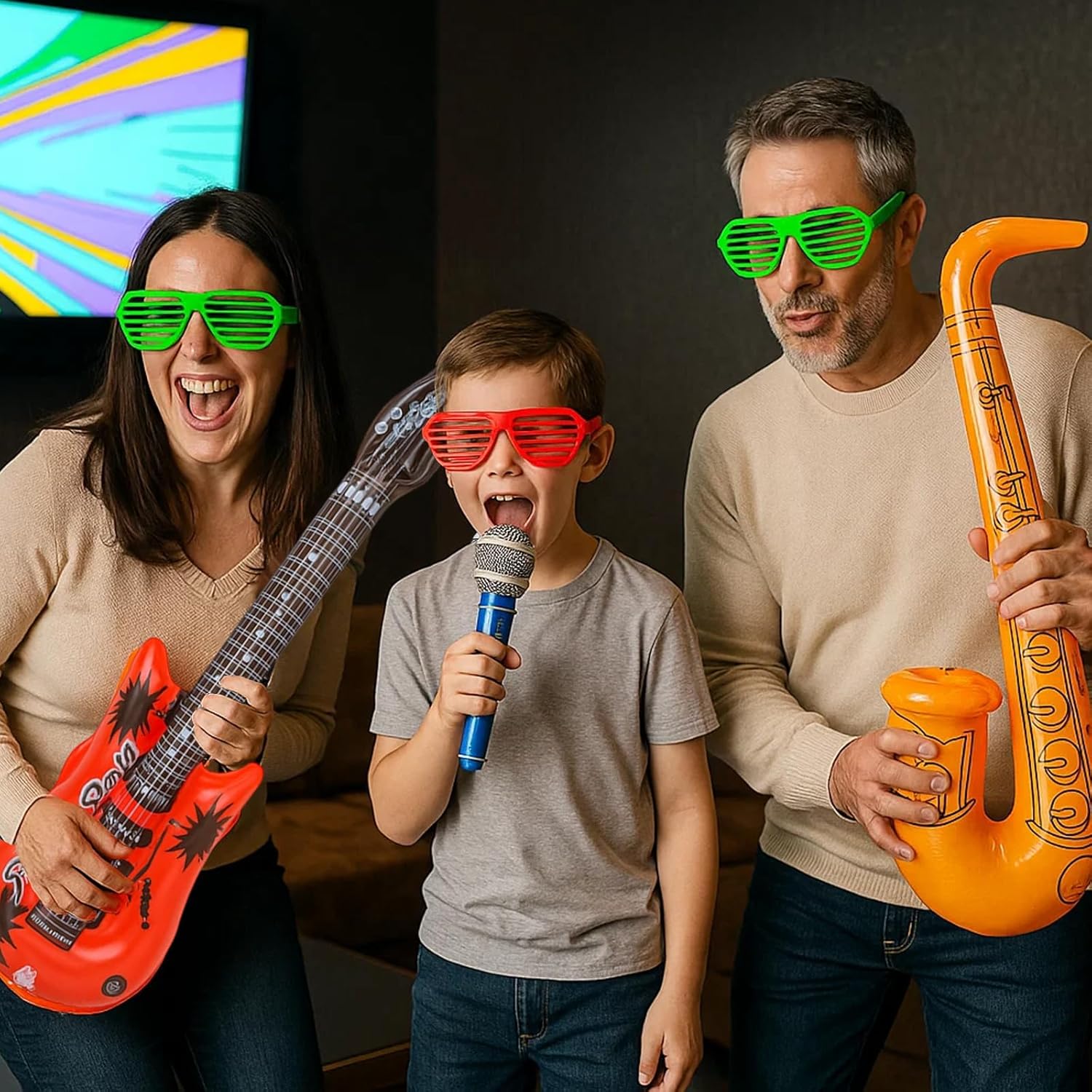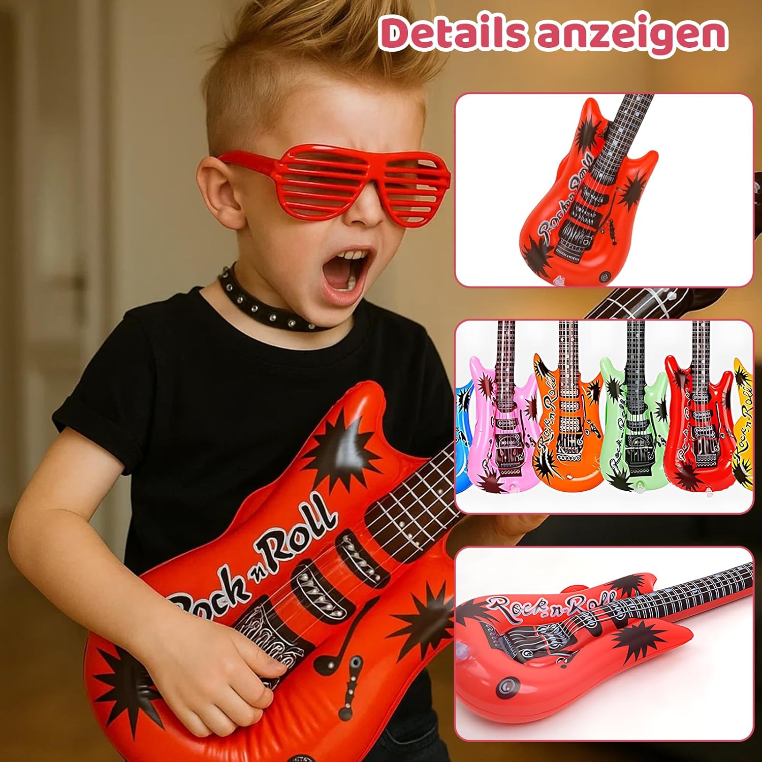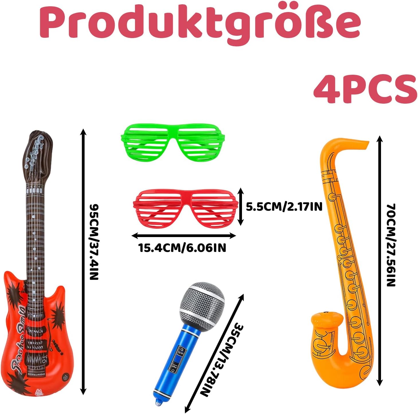 Accessori della scatola fotografica: include 5 strumenti musicali gonfiabili (1 chitarra, 1 microfono, 1 sassofono, 2 occhiali da sole); Ideale per accessori per scatole fotografiche di matrimoni e compleanni; Perfetto per feste musicali e spettacoli teatrali. Materiale di alta qualità: le chitarre gonfiabili sono realizzate in PVC resistente; Durevole e sicuro; Facile da gonfiare e trasportare; Riutilizzabili per diverse occasioni Design realistico: gli accessori della scatola fotografica sono colorati e progettati in stile retrò; Crea un'atmosfera divertente per le feste; Adatto a tutte le età; Ideale per servizi fotografici ed eventi Facile da usare: gli accessori della scatola fotografica di compleanno sono leggeri e portatili; Veloce da gonfiare e sgonfiare; Non è richiesta alcuna attrezzatura aggiuntiva; Facile da riporre e portare con te Usi versatili: la chitarra ad aria è adatta per feste musicali, accessori per scatole fotografiche, spettacoli teatrali e feste di famiglia; Crea momenti indimenticabili; Perfetto per temi retrò e carnevali