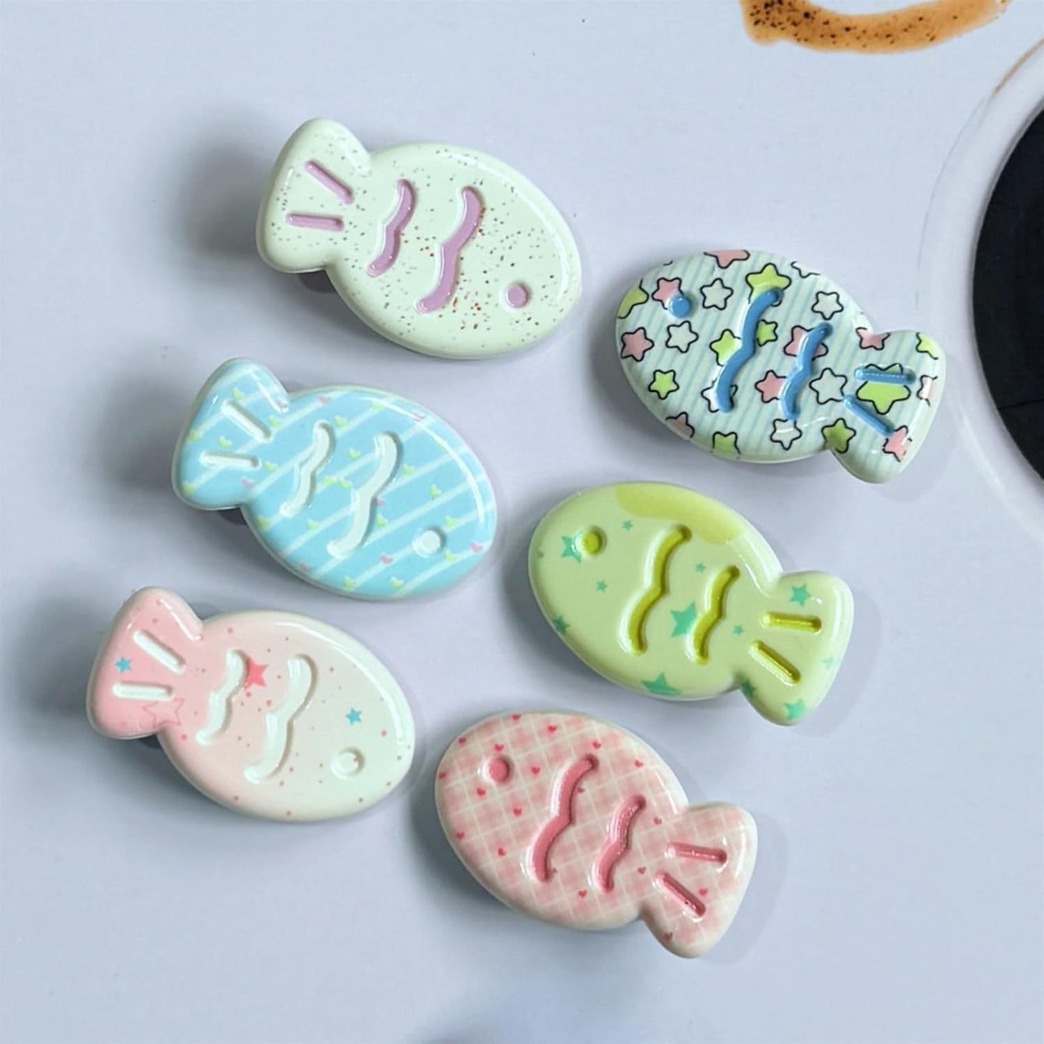 Set di 20 adorabili clip per capelli a forma di pesce con colori pastello e motivi decorativi per un look da tema oceano giocoso. Accessori mini per capelli perfetti per abbigliamento casual, uscite sulla spiaggia o aggiunta un tocco stravagante a qualsiasi acconciatura. Ogni clip viene fornito con un meccanismo di chiusura a scatto affidabile per mantenere i capelli ordinatamente in posizione durante il giorno. Piccole barrette leggere ideali per spessore sottile e medio, adatti a tutte le età. Ogni clip di pesce presenta motivi a strisce uniche e disegni rialzati in toni morbidi, blu e gialli.