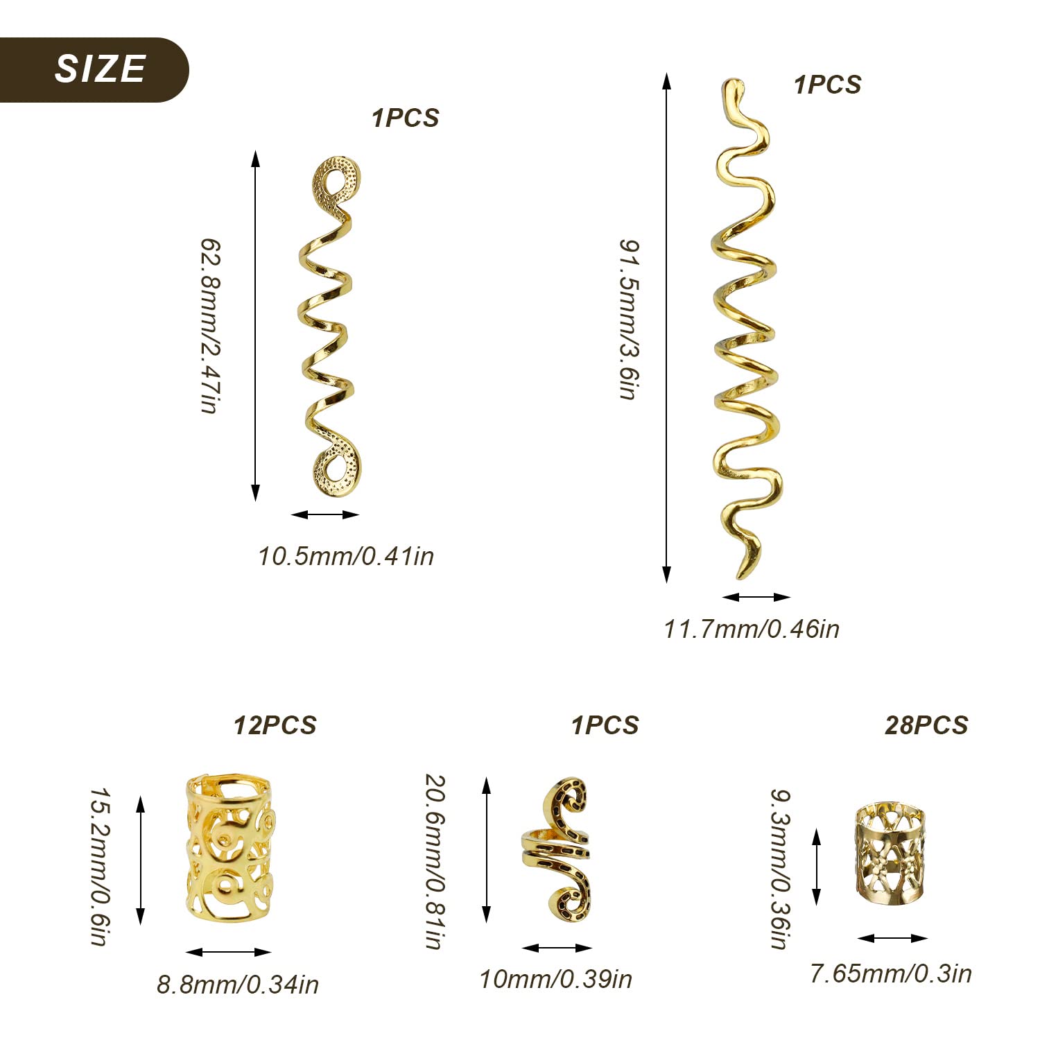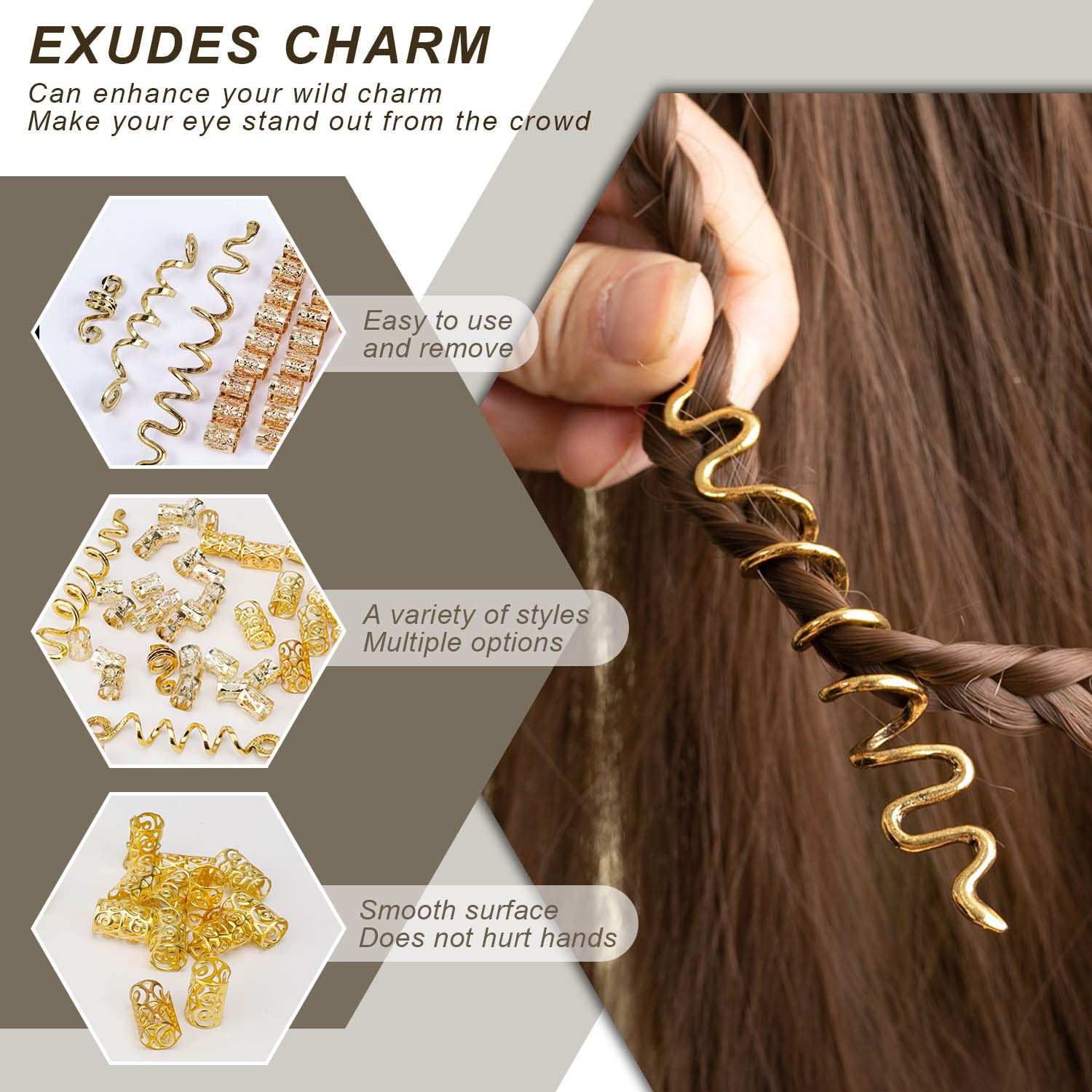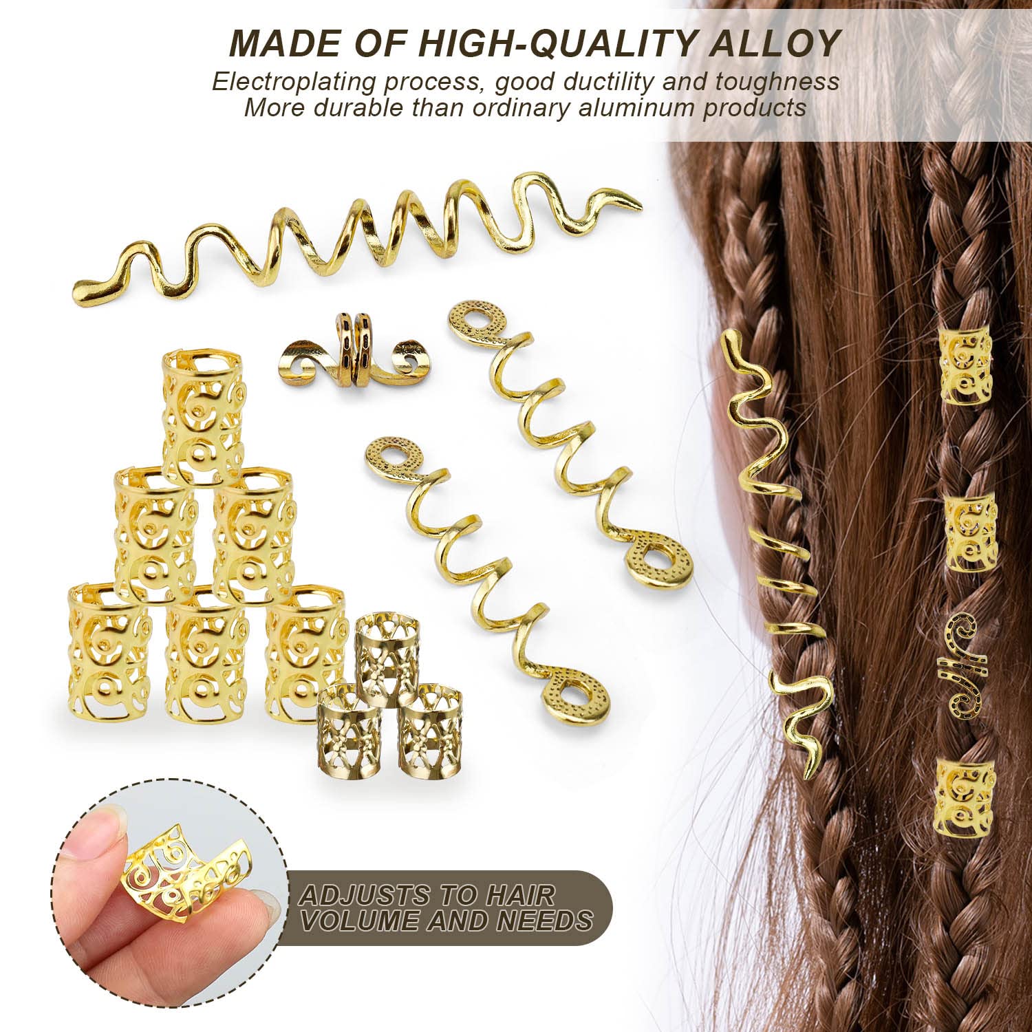 ✨Gioielli alla moda: gli anelli per capelli aggiungono qualcosa di speciale ai tuoi capelli, li rendono più attraenti, aiutano a mostrare la tua personalità, ti rendono il punto forte tra molte trecce. ✨Fascino trasudante: i gioielli Dreadlocks indossati tra i capelli possono migliorare il tuo fascino selvaggio, farti risaltare e distinguerti dalla massa. ✨Materiale di alta qualità: gli accessori per capelli sono realizzati in lega di alta qualità, processo di galvanica, buona duttilità e tenacità, più durevoli dei normali prodotti in alluminio, non facili da rompere o cambiare colore e possono essere riutilizzati. ✨Facile da usare: le bobine a spirale hanno una superficie liscia, facile da usare e rimuovere, una rotazione per inserire o rimuovere i capelli, può essere regolata in base al volume e alle esigenze dei capelli. ✨Ampie applicazioni: questi accessori per capelli da pirata sono perfetti per festival e feste come feste di compleanno, lauree, bar mitzvah, balli studenteschi, matrimoni, Natale, Halloween e altri festival.