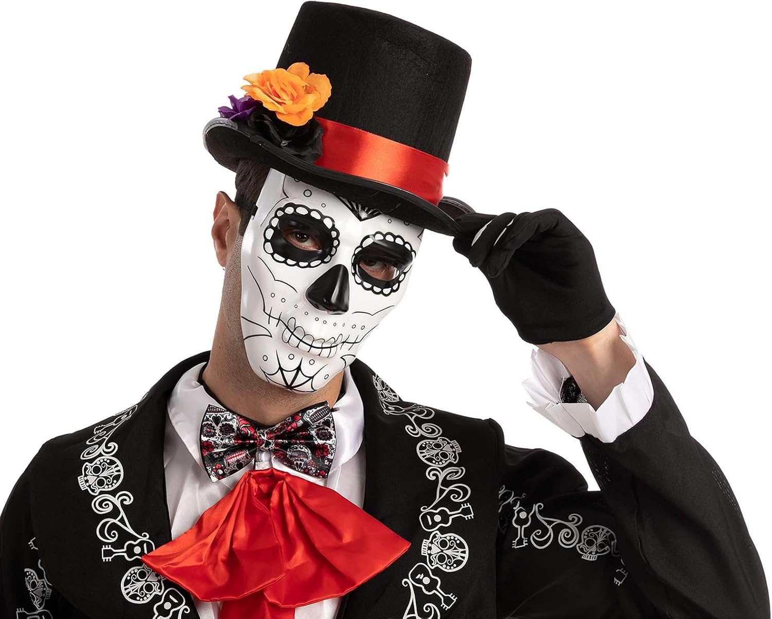 Preparati a spook con il nostro set di accessori per Halloween di alta qualità per uomo Il set include 1 paio di guanti scheletrici e 1 arco vivido e lifelico, con una caratteristica facile da usare. Adatto per molte occasioni, questo set è perfetto per completare il vostro costume di Halloween. Caratteristiche del prodotto: Materiale: poliestere/tessuto non tessuto. Dimensioni del cappello: circa 30 x 25 x 12 cm. Dimensioni dei guanti corti: circa 24 x 9 cm. Dimensioni dei guanti lunghi: circa 35 x 9 cm. Peso: circa 200 g. List: 1* nero tricolore floreale 1 paio di guanti a teschio. 1 x fiocco