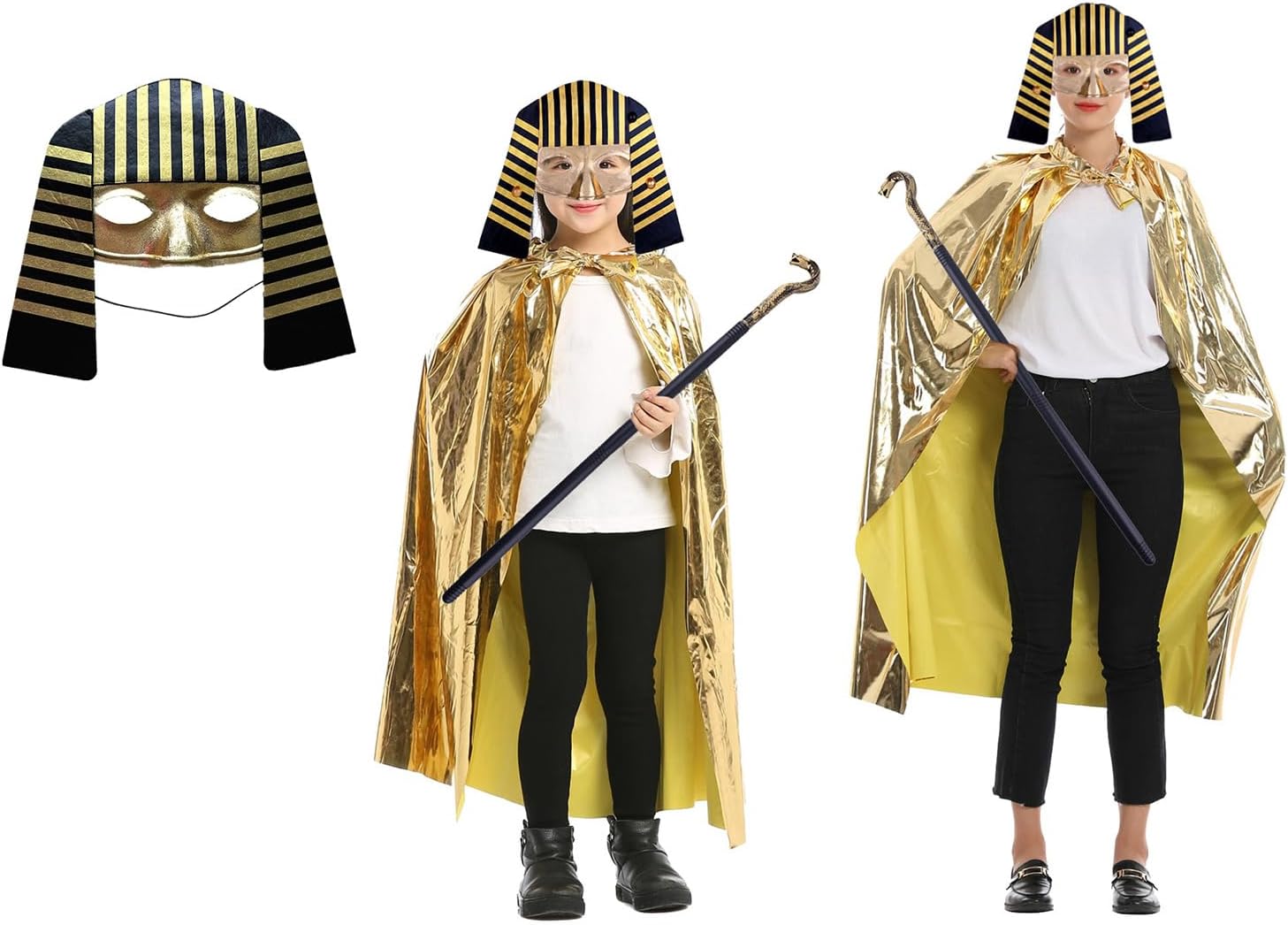 Costume egiziano, accessorio per costume d'oro, maschera egiziana, maschera veneziana, Halloween, cosplay, per bambini e adulti Caratteristiche: Costume egiziano maschera egiziana, Golden Cape, pacchetto diverso contiene cose diverse, si prega di confermare le vostre esigenze prima di ordinare. Applicazioni perfette per feste a tema, compleanni, feste di Natale, Halloween, oggetti di scena fotografici, giorno della carriera, feste di abbigliamento, spettacoli teatrali, giochi di ruolo, ecc. Materiali realizzati con materiali di alta qualità, morbidi, traspiranti, tessuto di alta qualità e costruzione di qualità per un costume confortevole. Regalo meraviglioso, dolce regalo caldo per amici, familiari e te stesso. Mezza maschera viso regolabile con cinturino regolabile. Specifiche: Pacchetto: 01,02,03 La confezione include: 1 set costume egiziano. Nota: Si prega di considerare un margine di errore di 1-2 cm a causa della misurazione manuale. A causa delle differenze tra i diversi monitor, l'immagine potrebbe non riflettere il colore reale dell'articolo.