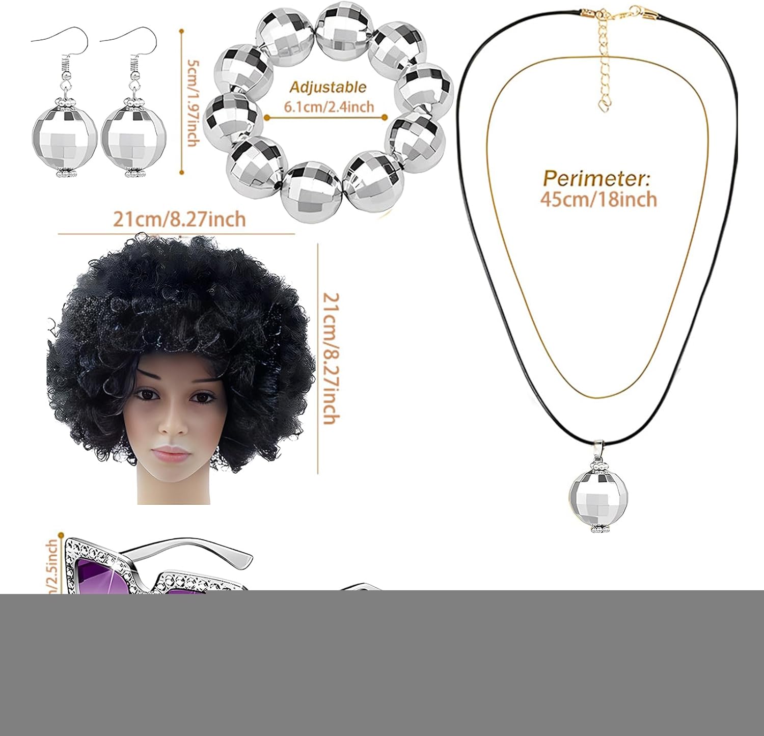 Descrizione prodotto Aggiungi un po' di brillantezza alla tua festa in discoteca con i nostri accessori per costumi da discoteca! Questo set include una splendida collana a sfera da discoteca, perfetta per far brillare i tuoi orecchini sotto la palla da discoteca. La luminosità intensa e la luce intensa ti faranno sentire come una regina della discoteca per tutta la notte. Specifiche: Nome: set di accessori da discoteca da donna anni '70. Materiale: fibra sintetica + PP Dimensioni del prodotto: come da immagine. Peso: circa 230 g Contenuto della confezione: Capelli corti e ricci anni 70 x 1 Orecchini a sfera da discoteca x1 paio Collana a sfera da discoteca x1 Bracciale a sfera da discoteca x1 Occhiali da sole con montatura x1 Nota: 1. A causa delle diverse impostazioni degli schermi e degli effetti della luce, il colore reale dell'articolo potrebbe essere leggermente diverso da quello raffigurato nella foto. Grazie! 2. A causa della misurazione manuale, è possibile una differenza di misurazione di 1-3 cm. Avviso di sicurezza Non applicabile