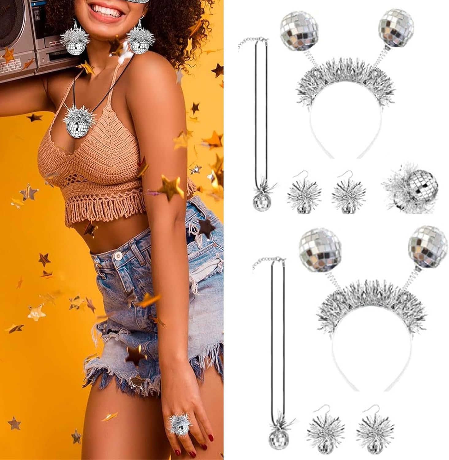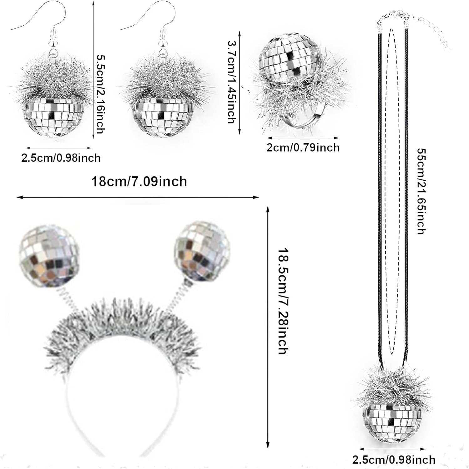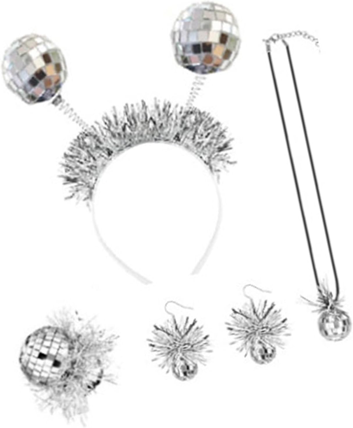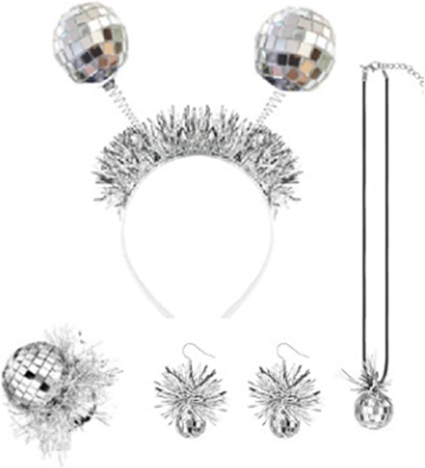 Caratteristiche: I gioielli da donna anni '70 vengono forniti con fascia, collana, paio di orecchini e . Questo gioiello da donna anni '70 soddisfa le tue esigenze di utilizzo. Design a tema anni '70/80, decorato con decorazioni scintillanti, sembra più bello, ti fa distinguere dalla massa. Buona durata, non sbiadisce facilmente e bello nell'aspetto. Ideale per donne anni '70/80 a tema hippies costume, cosplay, Halloween, compleanno, matrimonio. Meraviglioso regalo di vacanza per fidanzata, mamma, sorella, amica per compleanni, Natale, Capodanno. Sorprendi e adoreranno queste decorazioni. Adatto per feste serali, matrimoni, addio al nubilato, feste di compleanno, lauree, San Valentino, celebrazioni, anniversari, club, appuntamenti. Specifiche tecniche: Colore: Argento; Dimensioni della fascia: ca. 18,5 x 18 cm. Dimensioni della collana: ca. 55 x 2,50 cm. Dimensioni orecchini: ca. 5,5 x 2,50 cm. Dimensioni degli anelli: ca. 2 cm. Peso: circa 100 g. Nota: Si prega di considerare un margine di errore di 0-1 cm a causa della misurazione manuale. Assicurati di non avere un problema prima di fare un'offerta. 2. L'immagine potrebbe non rispecchiare il colore reale a causa delle diverse impostazioni dei monitor. La confezione include: Opzione della confezione: Confezione 1: set di 4 collane e fasce per capelli e un paio di orecchini. Pacchetto 2: set di 5 collane e fascia e paio di orecchini.
