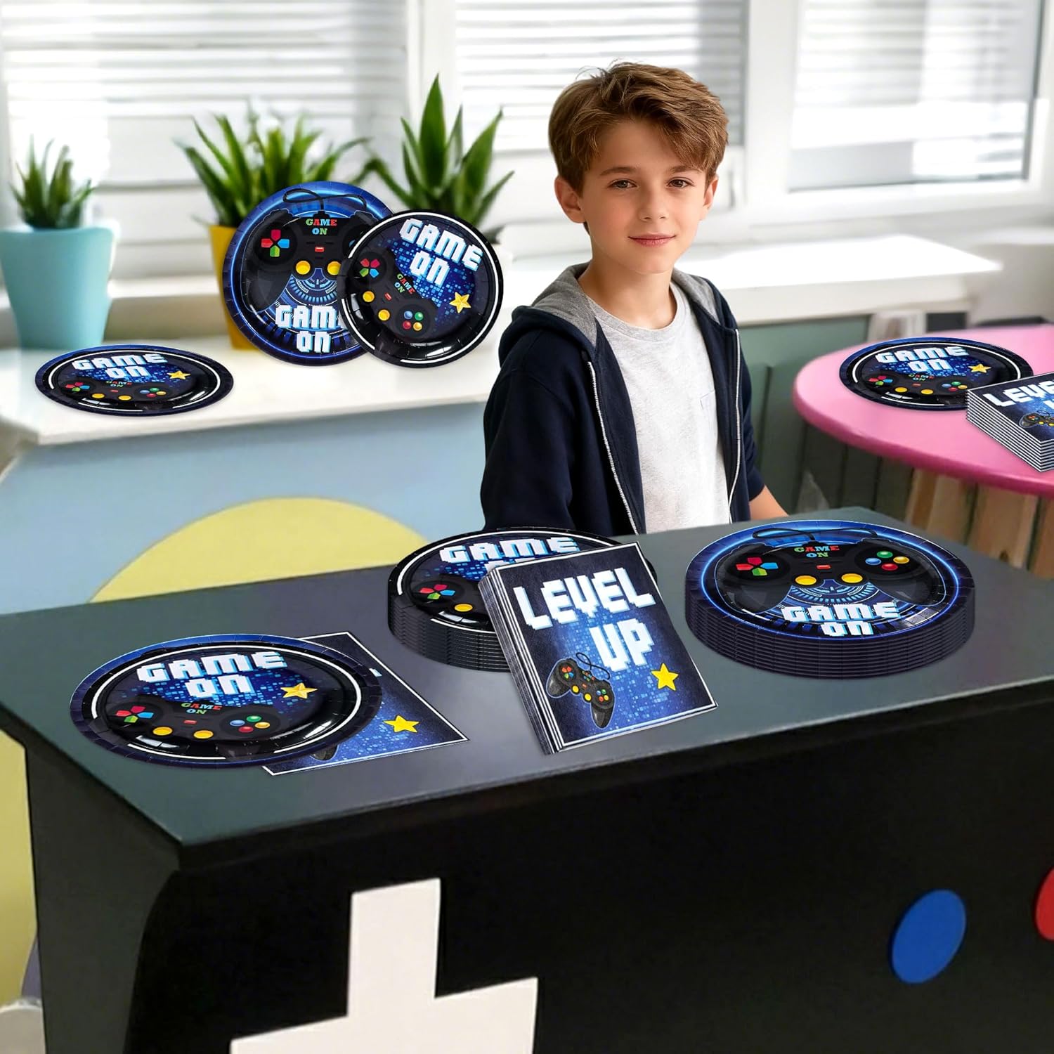 Crea la festa di gioco definitiva con questi set di stoviglie a tema videogiochi progettati per feste di compleanno dei giocatori, serate di videogiochi o serate di giochi retrò per immergere i tuoi ospiti nell'azione. Il set completo da portata contiene 10 piatti festivi per videogiochi da 9 pollici, 10 piatti festivi per videogiochi da 7 pollici e 20 tovaglioli festivi per videogiochi ideali per servire snack mantenendo pulita l'area di gioco Goditi più ore di sessioni di strategia amichevoli o semplicemente di buona compagnia durante le maratone di gioco Goditi più ore di competizione amichevole da sessioni di strategia o semplicemente di buona compagnia durante le maratone di gioco Questo pacchetto include un set di stoviglie da gioco diversificato pronto per migliorare la tua prossima festa di gioco con una configurazione rapida e massima attenzione al divertimento