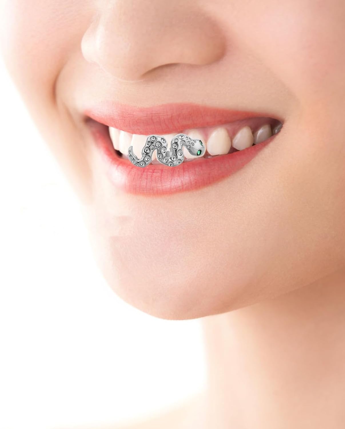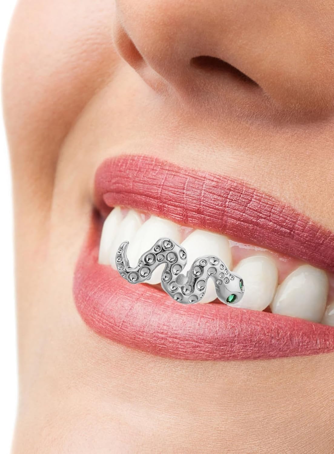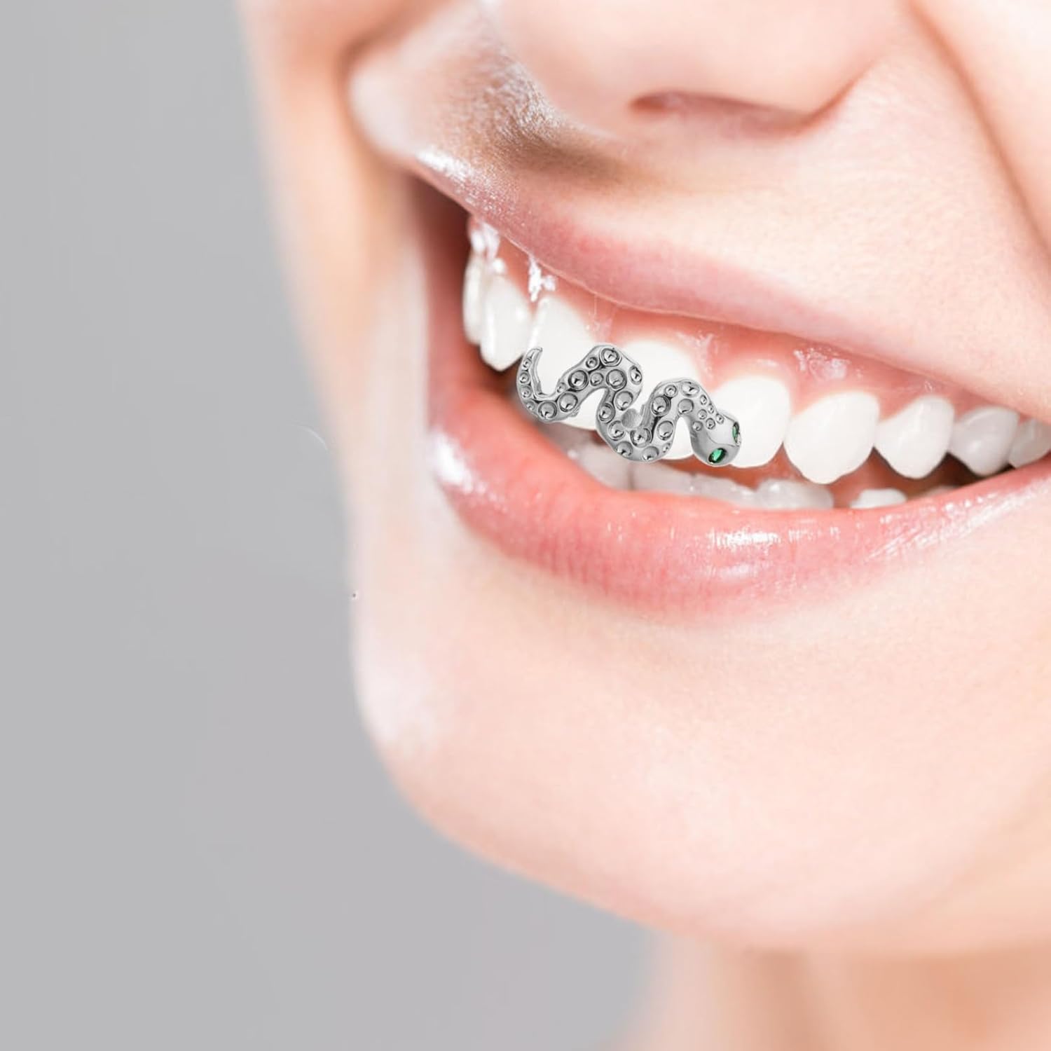 descrizione fai una dichiarazione di moda audace con questo copridente a tema serpente, progettato per imitare l'aspetto di un serpente attorcigliato attorno al tuo dente. il suo design unico e la robusta lavorazione artigianale lo rendono un accessorio ideale per gli appassionati di hip hop, i fan del cosplay e chiunque desideri aggiungere un tocco di drammaticità al proprio outfit. ideale per ogni occasione in cui vuoi distinguerti. caratteristiche - : argento - materiale: rame - dimensioni: 5,50x1,30x0,70 cm/2,16x0,51x0,28 pollici (clip per griglia dentata) - dimensione: 2,50x0,90x0,70 cm/0,98x0,35x0,28 pollici (griglia per i denti) -esclusivo copridenti in metallo: fai una dichiarazione di moda con il nostro copridenti in metallo dal design creativo -stile hip hop: ideale per aggiungere un tocco di stile hip hop al tuo outfit -forma giocosa a serpente: l'affascinante design a serpente aggiunge un elemento divertente e unico al tuo stile -rame di qualità: realizzato in materiale sicuro e comodo materiale in rame per un'usura duratura -design accattivante: il motivo del serpente ti fa risaltare in qualsiasi