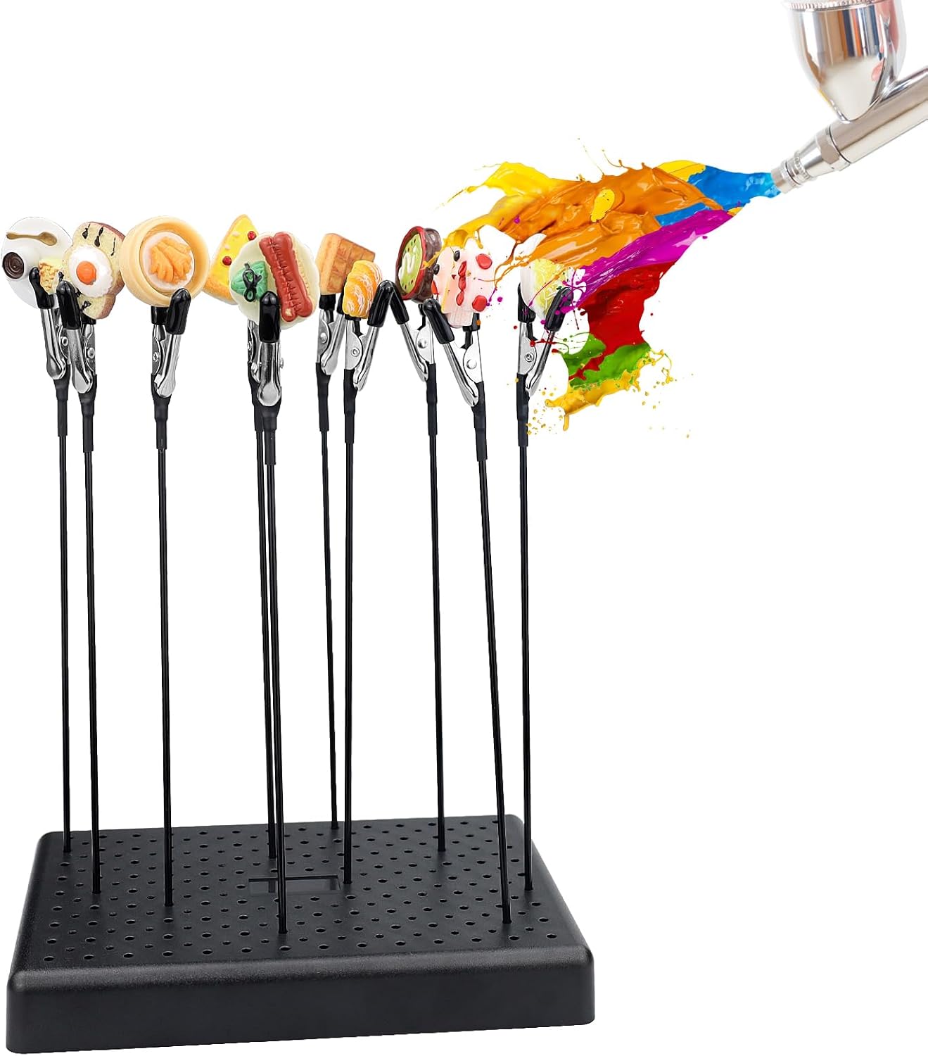 Kit prezioso: questo pacchetto contiene 10 clip a coccodrillo e un supporto per vernice. La lunghezza di ciascuna clip è di 140 mm e la dimensione della base del supporto è di 150 x 100 x 20 mm. Qualità Premium: la base di supporto è realizzata in plastica ABS e la clip colorata è in acciaio per resistenza alla corrosione e lunga durata. Quindi questo kit di verniciatura per modelli può essere utilizzato per sostenere il modello per una migliore spruzzatura e un lavoro professionale più veloce. Design accurato: la base è rimovibile e dotata di cotone perlato e la clip non è facile da staccare. Le clip a coccodrillo sono appositamente progettate in modo che i denti delle clip a coccodrillo non causino danni a piccole parti e possano essere fissati saldamente. Strumento pratico: mantieni le mani pulite e ordinate quando dipingi a mano progetti di modelli. Perfetto per pittori di qualsiasi tipo, puoi utilizzare questo kit di clip a coccodrillo per la verniciatura a spruzzo. Puoi anche posizionare il tuo modello con le 10 clip fornite. Molteplici usi: adatto per modellismo hobbistico, saldatura elettronica, fotografia e fai-da-te. Un ottimo aiuto per la realizzazione di modelli.