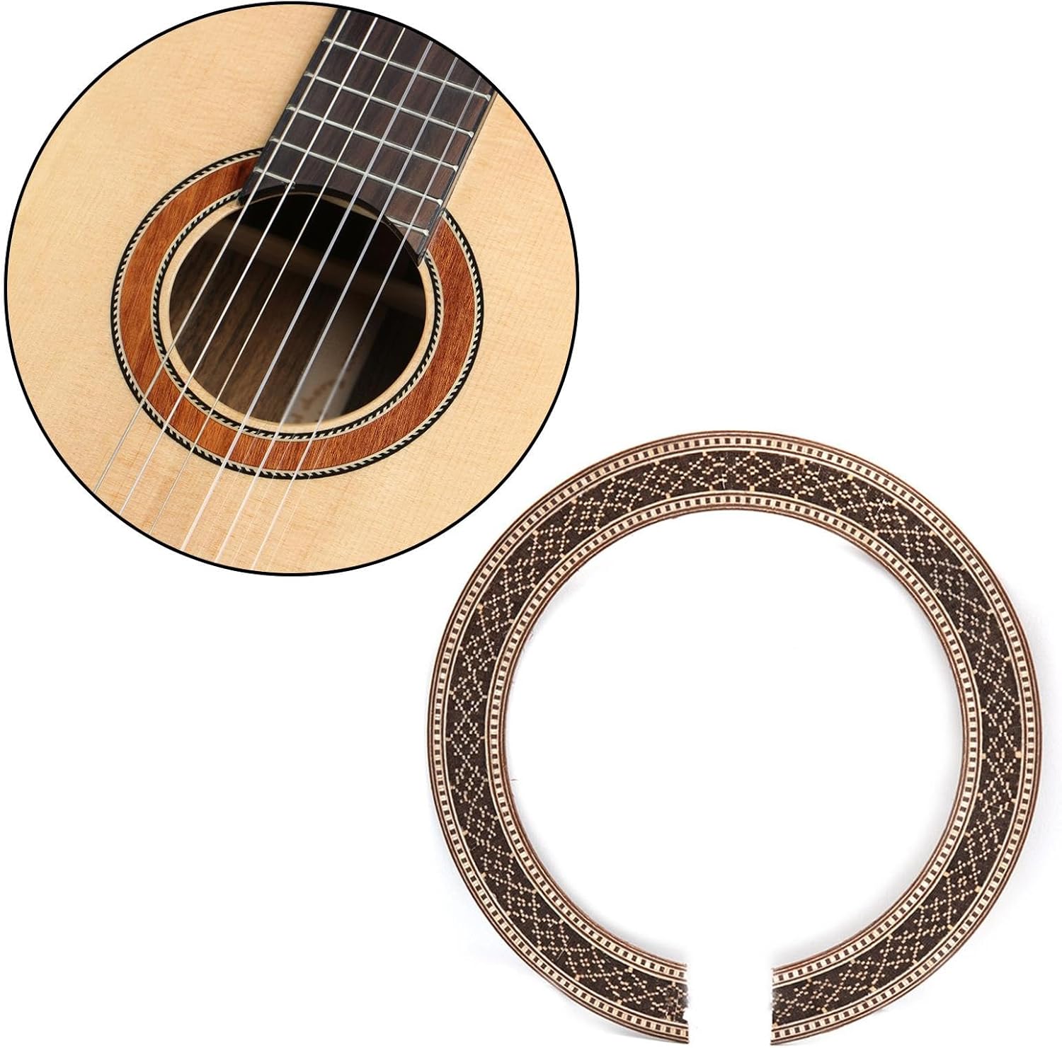 【Decorazione per chitarra】: Questa rosetta per chitarra classica presenta un bellissimo disegno floreale ed è una decorazione che può migliorare l'aspetto della tua chitarra. 【Durabilità】 Questo adesivo per buca sonora per chitarra è realizzato in legno robusto per garantire durata e longevità