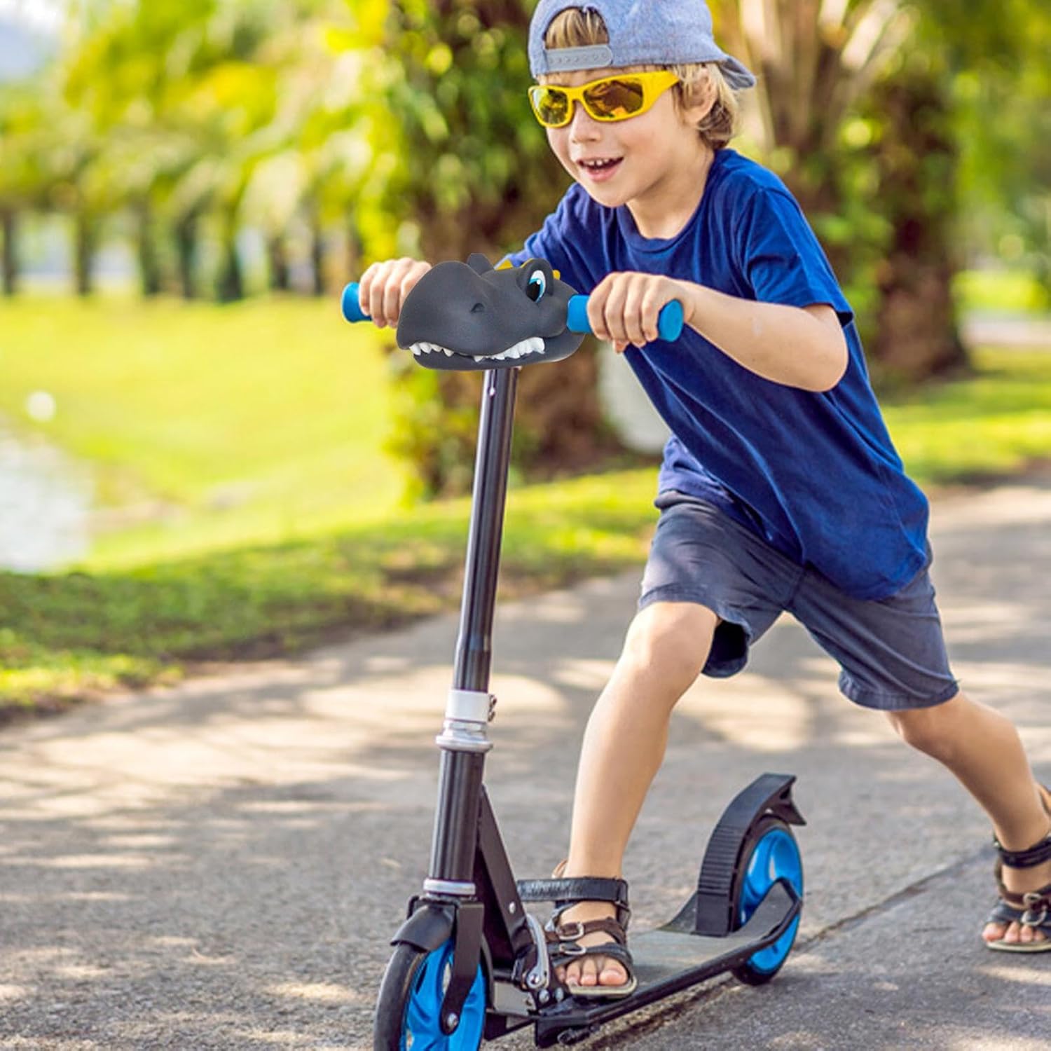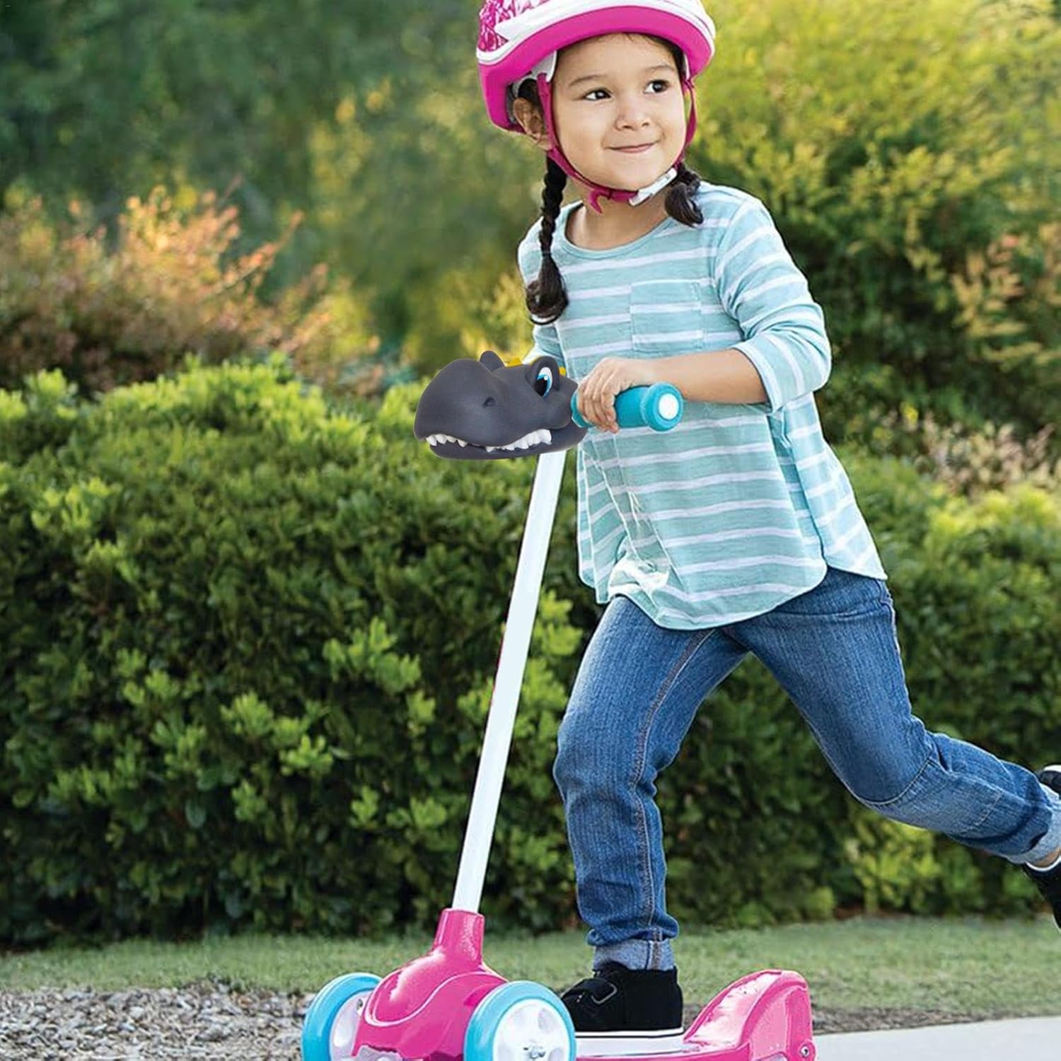 Compatibilità versatile: migliora lo scooter dal design a forma di T di tuo figlio con i nostri accessori versatili. Sono perfetti per tutte le strutture a T e permettono ai tuoi bambini di divertirsi e amare ancora di più il gioco all'aria aperta e la pratica dello sport. Installazione senza soluzione di continuità: abbellisci lo scooter di tuo figlio con i nostri accessori facili da installare con un meccanismo a forma di T integrato. Prima dell'installazione, ammorbidire la testa del dinosauro con acqua calda o un asciugacapelli in modo che possa essere fissata facilmente. Protezione avanzata: con i nostri accessori per scooter per bambini, puoi aspettarti una sicurezza avanzata per il tuo bambino. Il robusto materiale siliconico è prodotto con alta precisione e garantisce un utilizzo affidabile e a lungo termine. Questo materiale di alta qualità protegge il tuo bambino anche dai graffi. Funzione di sicurezza migliorata: questo accessorio per scooter può essere facilmente collegato a vari giocattoli per bambini come scooter, auto da passeggio e biciclette, rendendoli più affascinanti e attraenti. Promuovi momenti gioiosi: con i nostri accessori per scooter per bambini, puoi creare ricordi preziosi mentre vai in bicicletta con la tua famiglia. Per e ragazze di tutte le età.