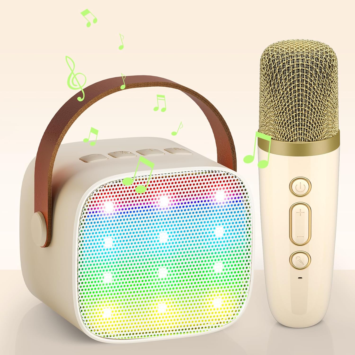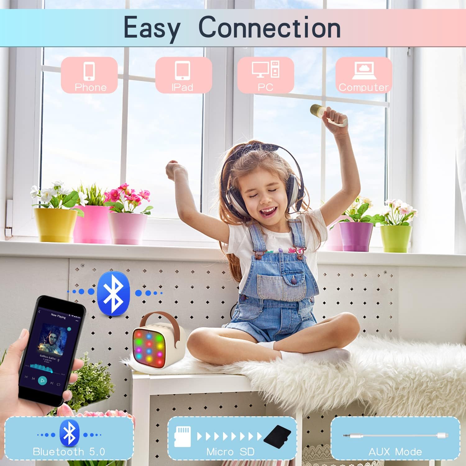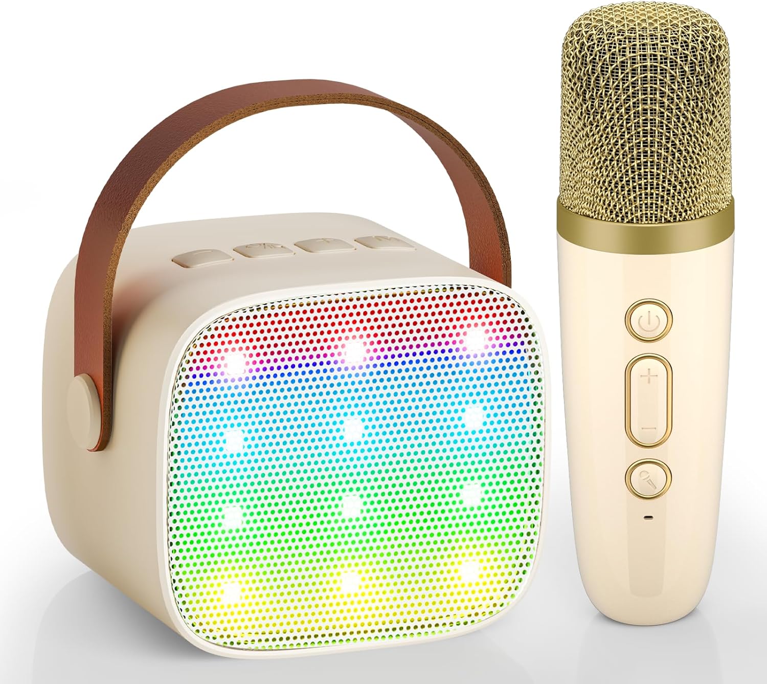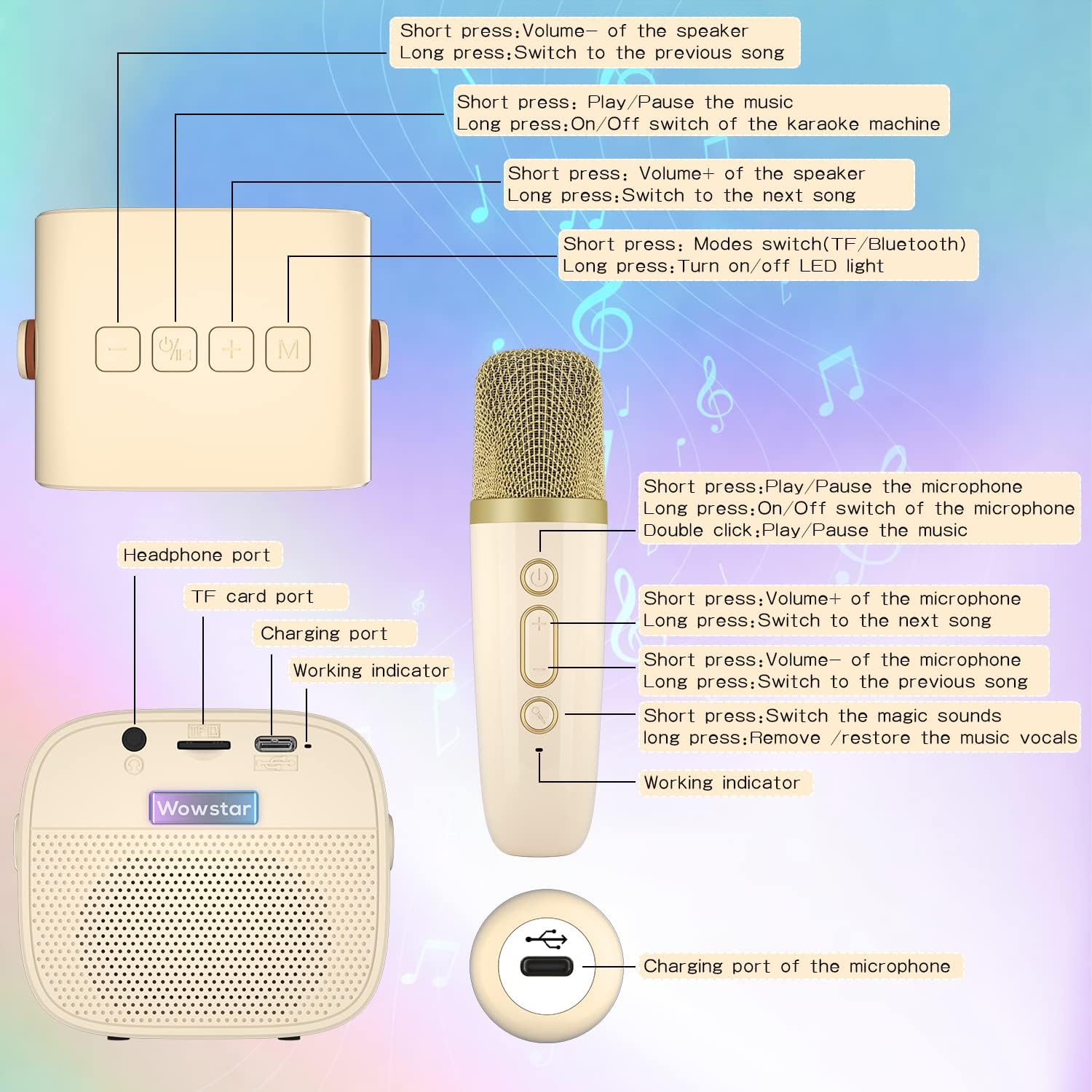 Macchina per karaoke Bluetooth con microfono: la macchina per karaoke Bluetooth con microfono può regolare separatamente il volume della voce umana/effetto eco/musica. Supporta Bluetooth 5.0 compatibile con smartphone Android iOS, PC, laptop e altre app musicali, la connessione è veloce e stabile. Il microfono wireless si collega automaticamente all'altoparlante quando viene acceso, con una portata fino a 32 piedi. Supporta la memoria TF con brani MP3. Altoparlante karaoke portatile: l'altoparlante karaoke portatile con dimensioni leggere 6,95 x 9,34 x 2,55 cm, peso solo 455 g, facilmente sollevabile dai bambini per portarlo ovunque. E con un suono potente di alta qualità, così tu e i tuoi bambini potrete godervi un meraviglioso ambiente sonoro KTV dal vivo. E luci LED dinamiche che ravvivano la riproduzione, ideali per karaoke, feste, riunioni, attività all'aperto. Canta, esercitati a cantare, suona, ascolta canzoni quando vuoi. Mini macchina per karaoke a 4 modalità: la mini macchina per karaoke ha 4 tipi di voci magiche, aspetto carino, facile da usare, divertente e interessante per i bambini. La macchina per karaoke è dotata di un potente driver audio e di un avanzato processore di segnale digitale che rende il suono più chiaro ed evita fastidiosi feedback del microfono. Le luci a LED battono al ritmo della musica, i bambini adoreranno le luci danzanti che si liberano con il suono. Giocattolo karaoke per bambini: la batteria integrata del karaoke può funzionare per 5-10 ore dopo essere stata completamente carica. Goditi il divertimento del karaoke senza interruzioni. Perfetto per compleanni, Natale, feste e altre attività all'aperto. Questa macchina per karaoke può essere utilizzata come sistema karaoke, lettore musicale, altoparlante per microfono, ecc. (Puoi anche utilizzare l'altoparlante senza microfono) Regali perfetti per i bambini: questa macchina per karaoke è un giocattolo indispensabile per l'intrattenimento familiare, perfetto per feste, compleanni e incoraggia tutti a partecipare. Il suo affascinante design a LED e il colore preferito dai bambini, un regalo perfetto per i giovani cantanti appassionati di canto, adatto a partire dai 3 anni. 4, 5, 6, 7, 8, 9, 10, 11, 12 anni, ragazze, ragazzi, adolescenti e bambini piccoli. Offriamo una garanzia di 1 anno e un diritto di restituzione di 30 giorni. Nota: per regolare l'eco, fare prima doppio clic sul pulsante del microfono (con l'icona del microfono) per passare alla modalità riverbero, quindi premere il pulsante + per regolare liberamente il volume del riverbero/eco. (Nota: le testine del microfono troppo vicine all'altoparlante producono un suono acuto e strano che è un feedback sonoro diviso, quindi evitare le testine del microfono troppo vicine agli altoparlanti).