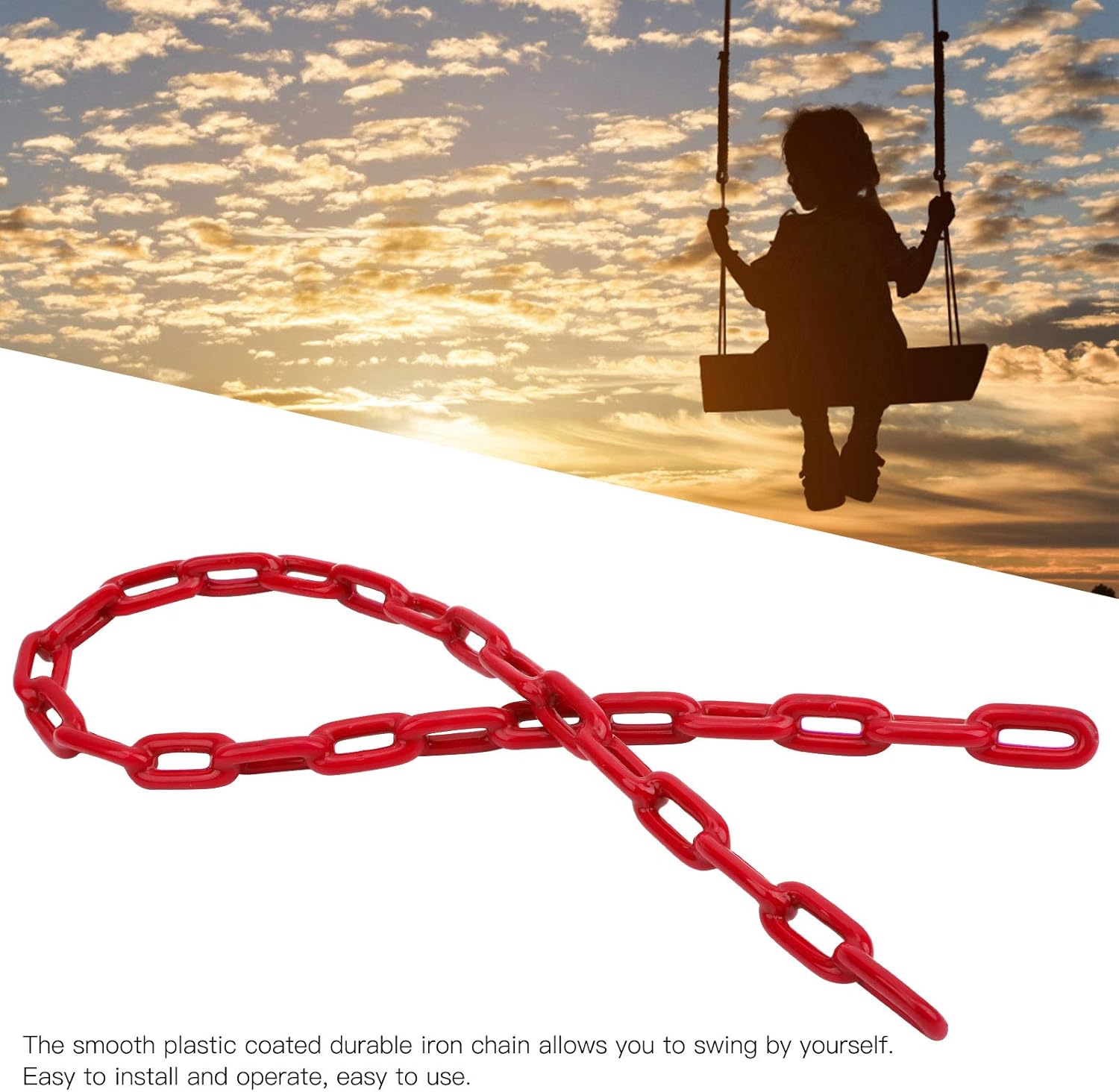 Realizzato con materiali di alta qualità, il che lo rende forte e resistente e ha una lunga durata. La catena è, ad alta resistenza, usura, cuscinetti fermi. La catena in metallo durevole a poppa liscia in plastica consente all'oscillazione di oscillare da sola. Facile per l'installazione e il funzionamento, comodo da usare, pesante, adatto per l'oscillazione dei bambini. Bella fattura e design, un buon sostituto per catene usurate, danneggiate o vecchie.