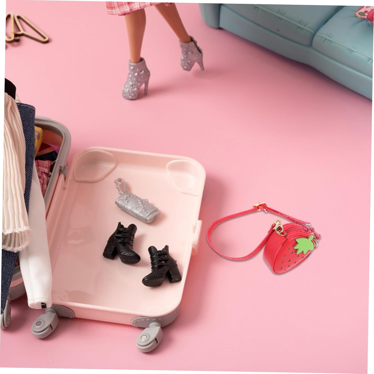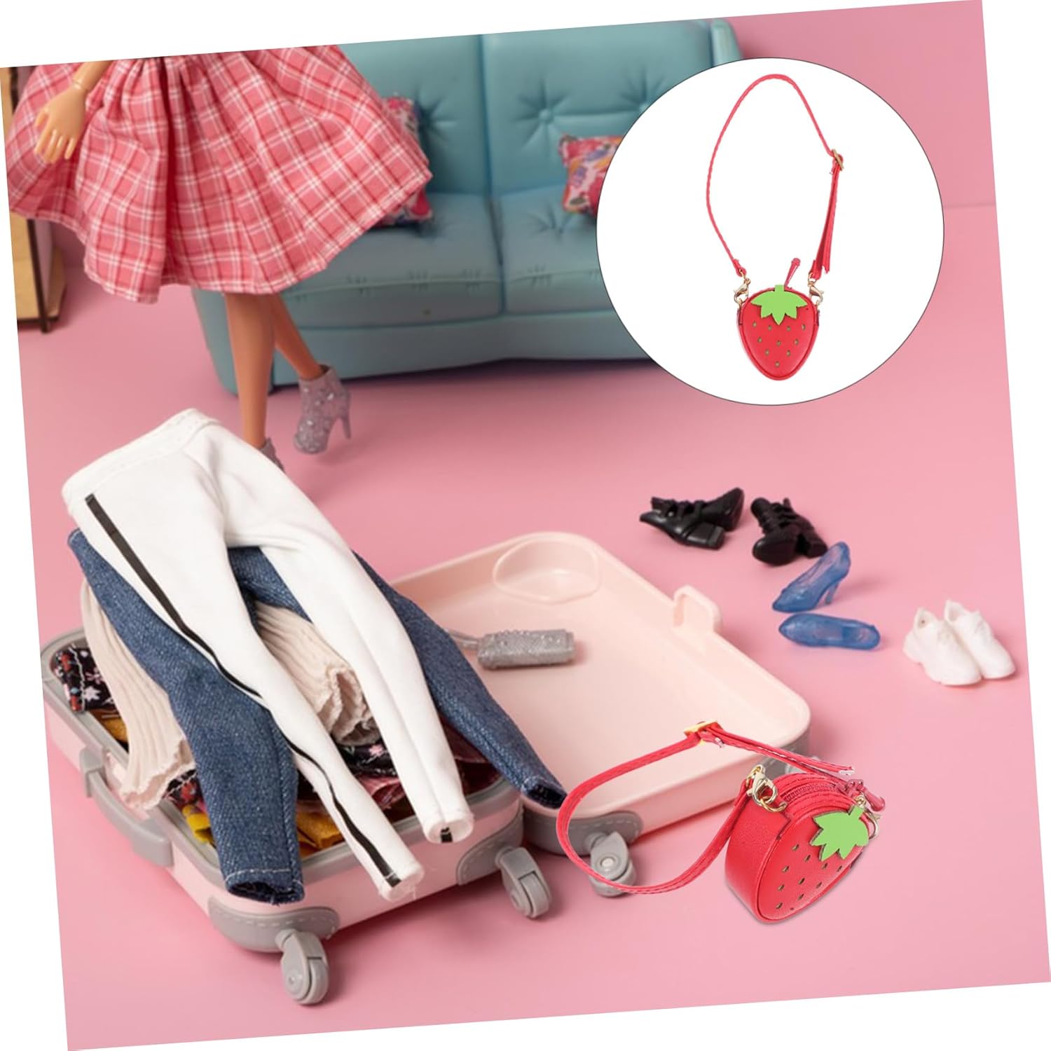 Affascinante borsa per fragole: migliora lo stile della tua bambola con questa adorabile borsetta a tema fragola, è per qualsiasi outfit, mini borsa per frutta per bambole, borse per vestiti per bambole Materiali in pu durevoli: realizzata in pu resistente, questa borsa è costruita per resistere all'uso regolare, borsa a forma di fragola in miniatura, borsetta per bambola Facile da maneggiare: il design a tracolla garantisce una facile maneggevolezza e aggiunge un tocco di tendenza agli accessori della tua bambola, al portamonete per bambole, agli accessori di abbigliamento per bambole Tracolla regolabile: la lunghezza della tracolla è regolabile, rendendola adatta per bambole in scala 1/12, 1/8 e 1/6, accessori moda per bambole, mini borsa a tracolla per bambole Costruzione durevole: realizzata in pu, questa borsa è costruita per durare e resistere al gioco quotidiano, alle bambole e alla borsa per bambole in miniatura