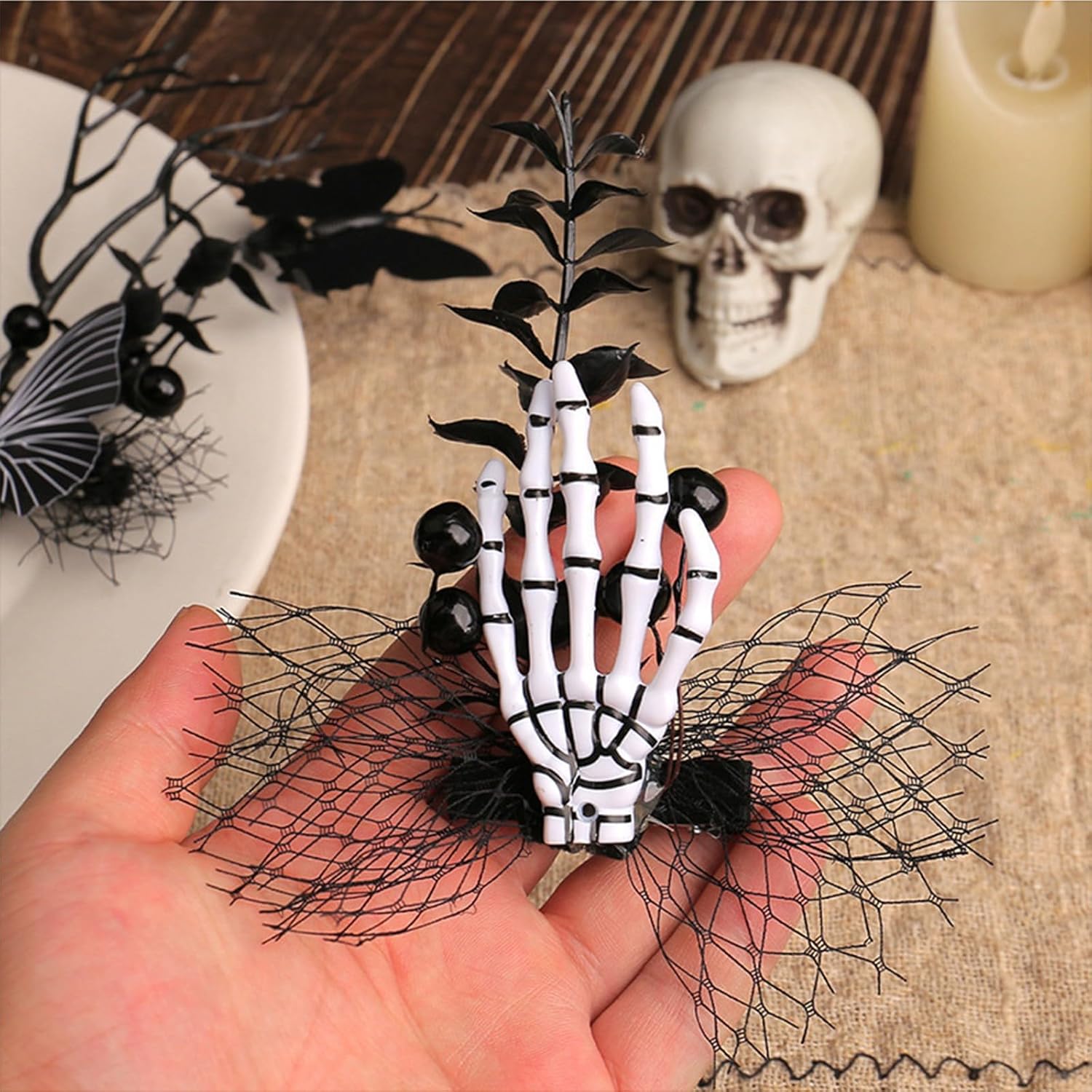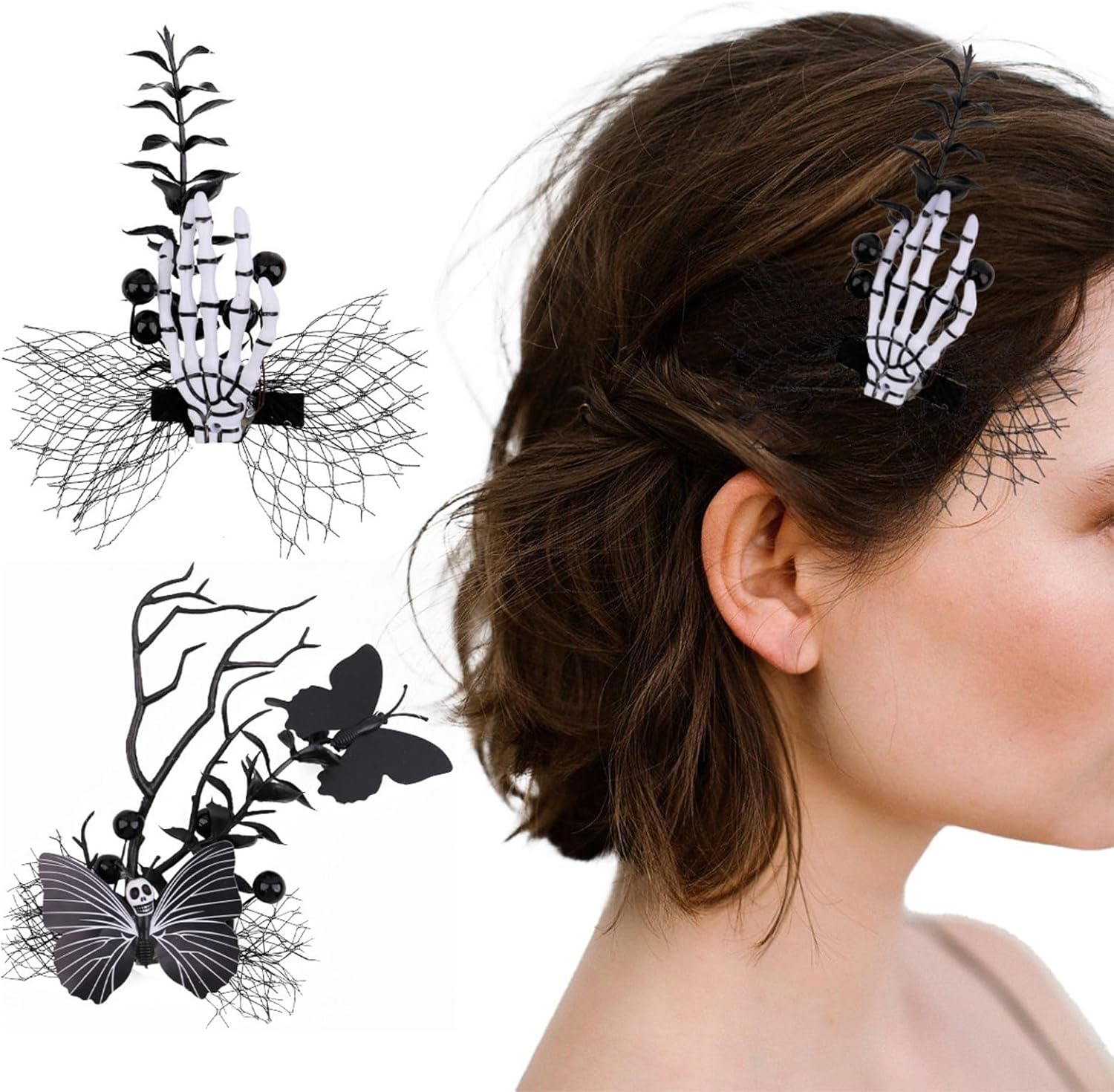 Accessorio per capelli con artiglio del teschio con rose nere e artificiali per feste a tema costumi cosplay Caratteristiche: Ottieni un'acconciatura divertente con nostro copricapo con artiglio scheletrico. Realizzato in stoffa, questo copricapo è colore scuro. Perfetto per bambini e ragazze tutte le età che vogliono mettere in risalto loro look Halloween o aggiungere colore loro outfit per un'occasione speciale. Adatto varietà occasioni come matrimoni, balli, feste o anche giornata informale nostro copricapo è adatto a donne, ragazze e bambini che amano accessori per capelli alla Specifiche Componente: tessuto Taglia 1: 12x16 cm/4,72x6,29 pollici Taglia 2: 0,10x15 cm/3,94x5,90 pollici Quantità: 2 La confezione include: 2 forcine per Halloween Nota: 1.Si prega consentire errori 1-2 cm dovuti alla misurazione manuale, notare che non ti dispiace prima ordinare. 2.A causa delle differenze tra i diversi monitor, l'immagine potrebbe non riflettere colore reale.