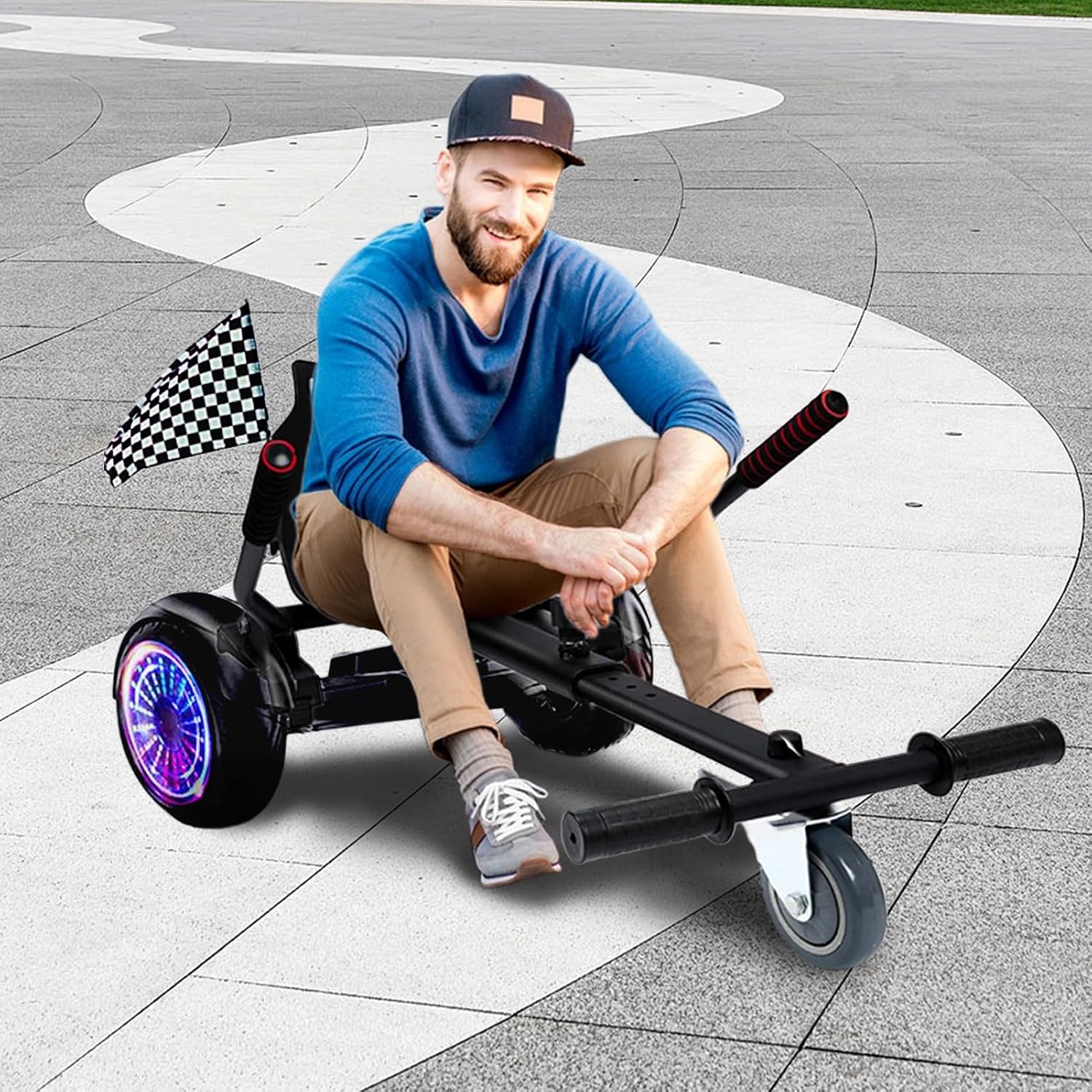 Promuovi il coordinamento: sperimenta la gioia del movimento con il nostro sedile Hoverboard: progettato per incoraggiare la coordinazione del corpo, promuovere lo sviluppo e migliorare la capacità motoria, incoraggiando allo stesso tempo la percezione spaziale per trovare la tua felicità e soddisfazione. Sicurezza assicurata: Massimizza la tua esperienza di sicurezza con il nostro sedile Hoverboard che fornisce un controllo migliorato e riduce il rischio di scivolamento accidentale attraverso le maniglie antiscivolo e i cuscinetti per i piedi. Versatilità regolabile: il nostro sedile Hoverboard offre una guida regolabile con il suo design regolabile. Godetevi la flessibilità di regolare la distanza tra il sedile e la maniglia da 79 a 99 cm. Comfort eccellente: con un design grande e confortevole della seduta e un'imbottitura in spugna ad alta elasticità, puoi stare comodo durante i lunghi viaggi con il nostro sedile Hoverboard, superando le tue aspettative di comfort e qualità. Maggiore durata: realizzato in materiale in lega eccellente, questo sedile Hoverboard vanta un'eccellente durata per un uso prolungato, fornendo un supporto forte e resistente che garantisce una maggiore soddisfazione.